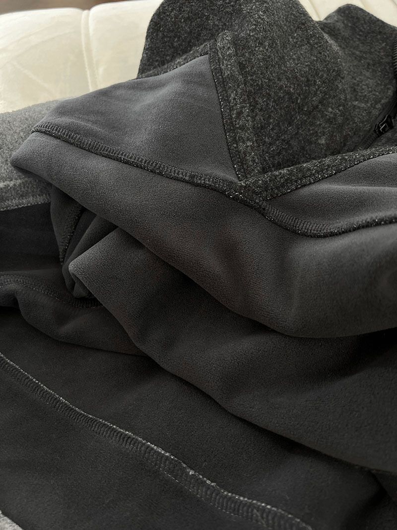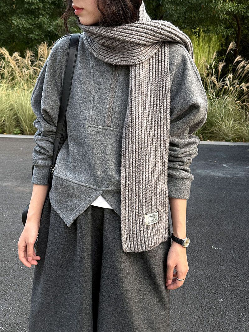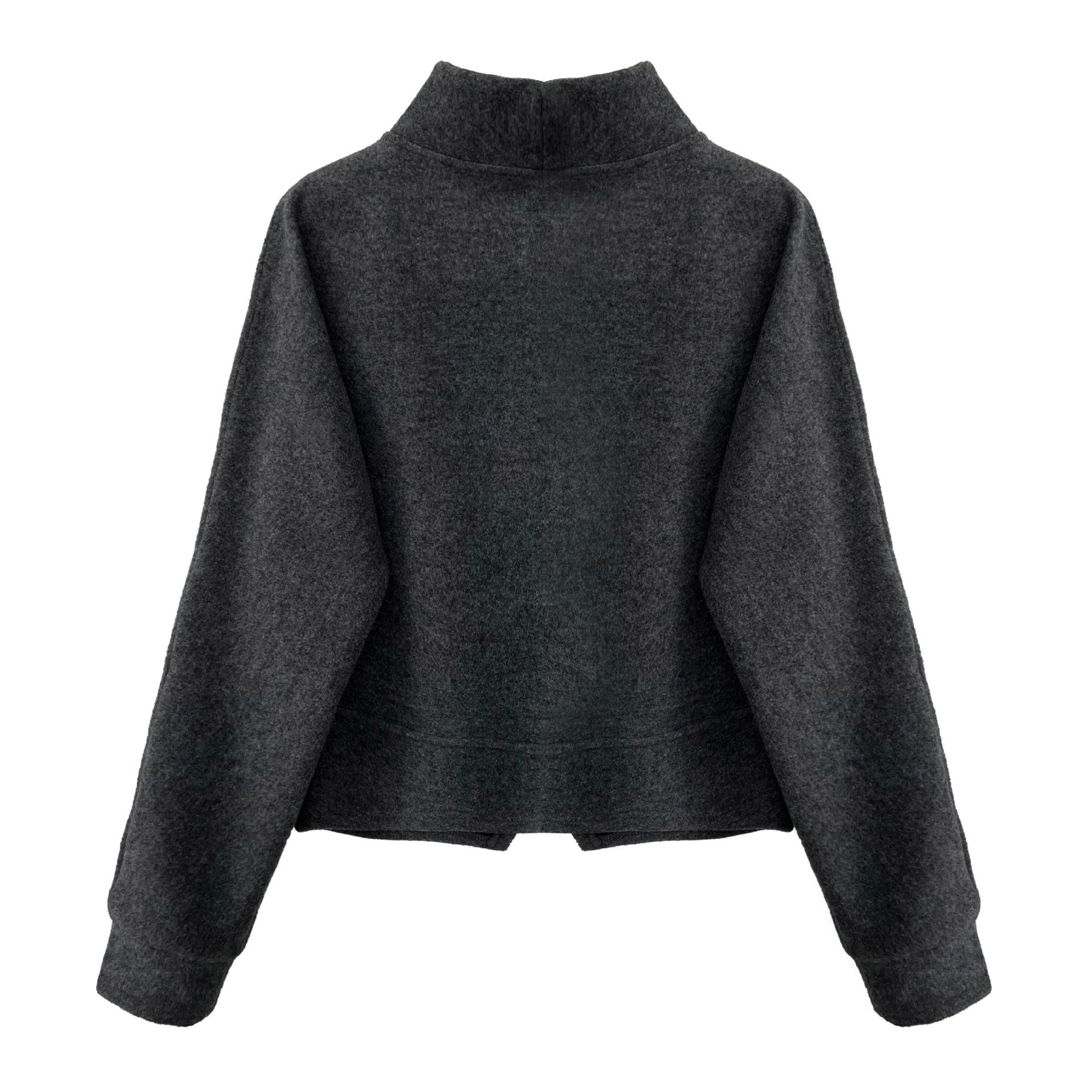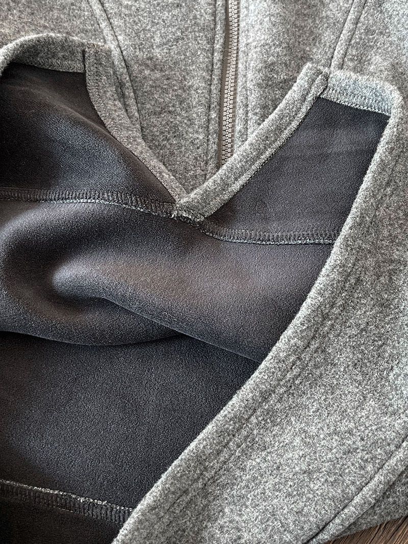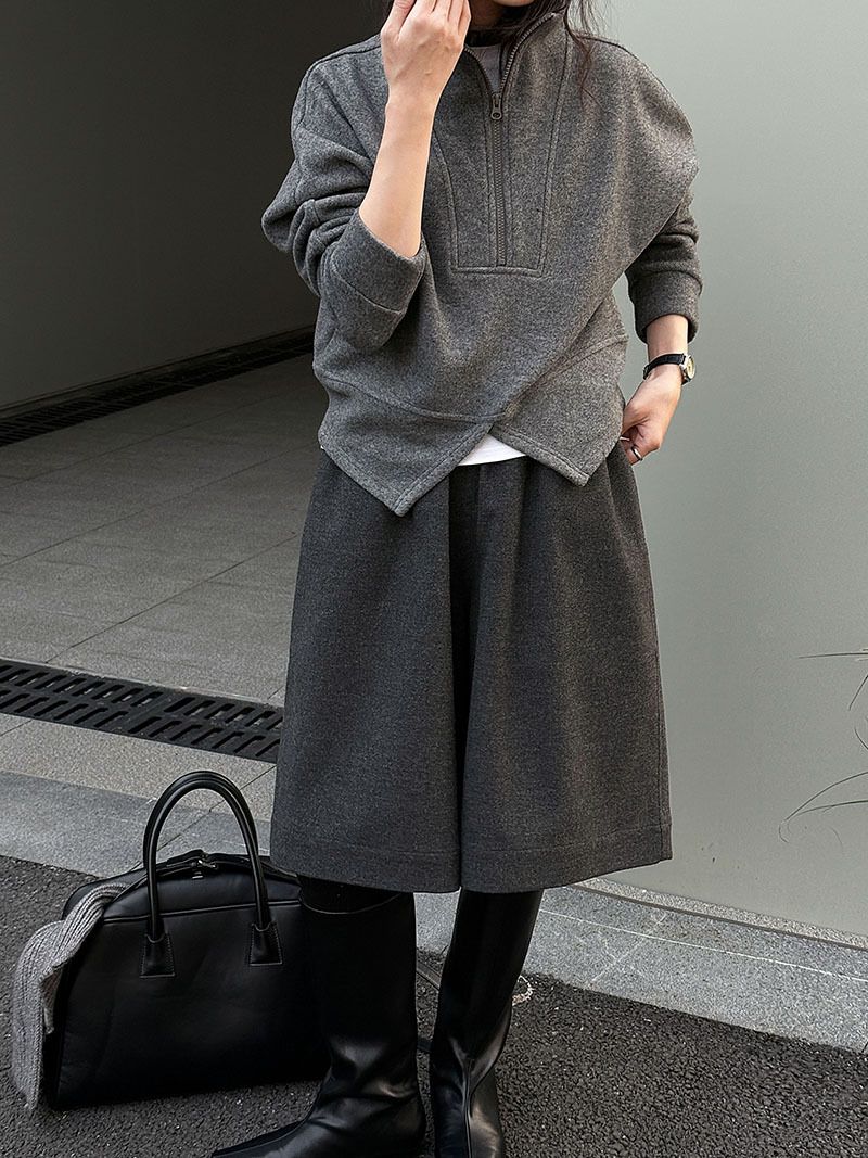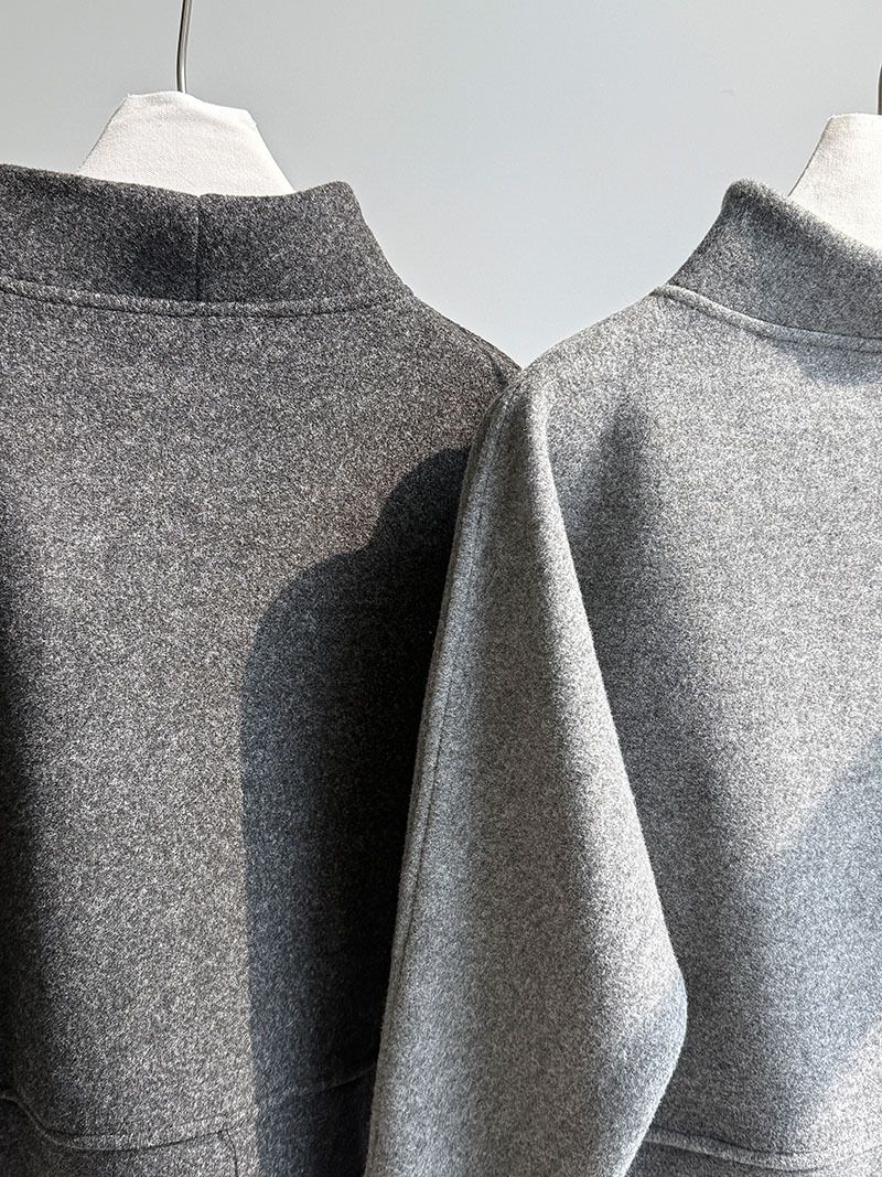 兩種尺寸/厚磅毛呢面料/內毛絨/半開襟拉鍊領/V領/正面開衩/三角切口/連肩袖/寬鬆短版 - 休閒居家簡約百搭素面拉鍊立領上衣長袖上衣內刷毛上衣寬鬆大尺碼上衣短版上衣多尺寸ML灰色深灰色
