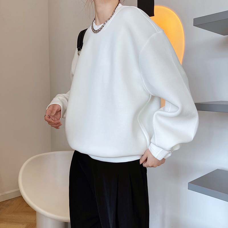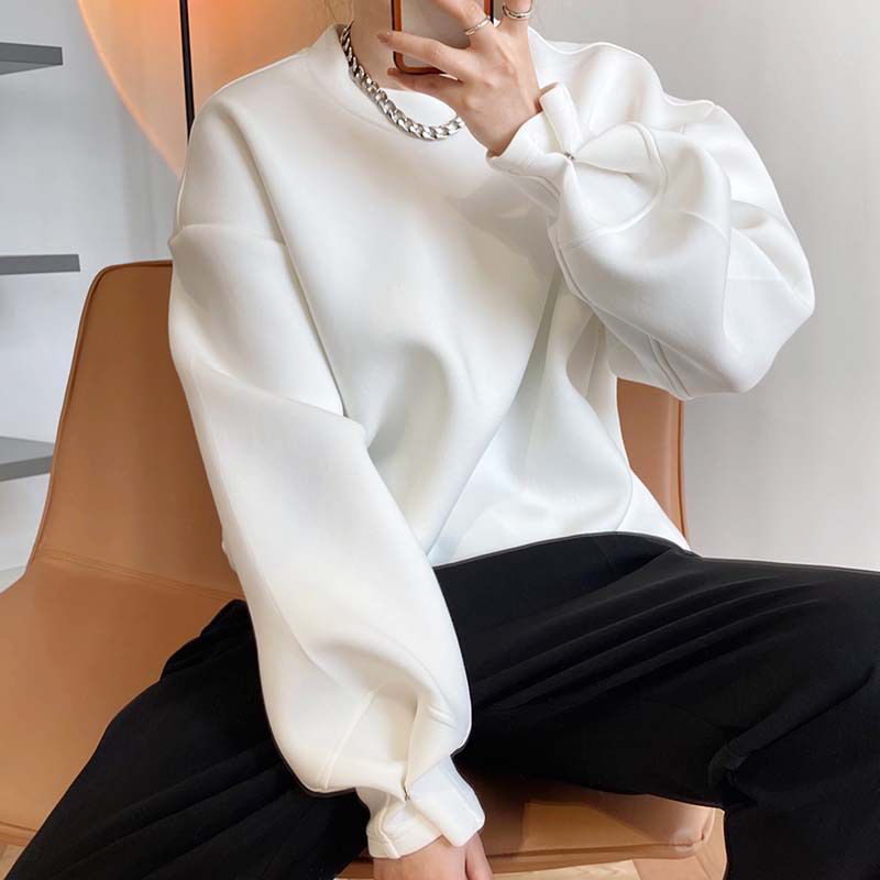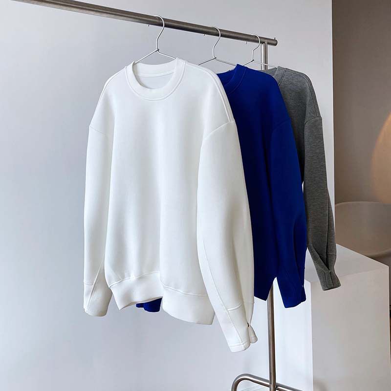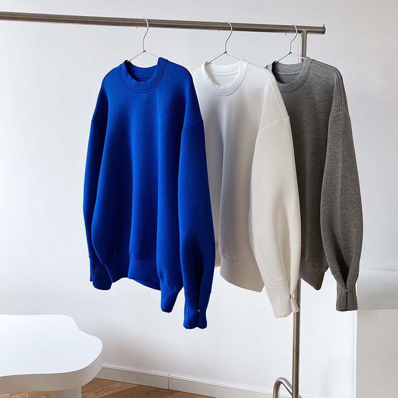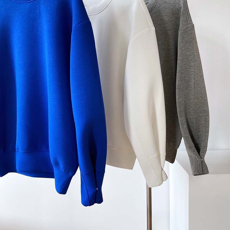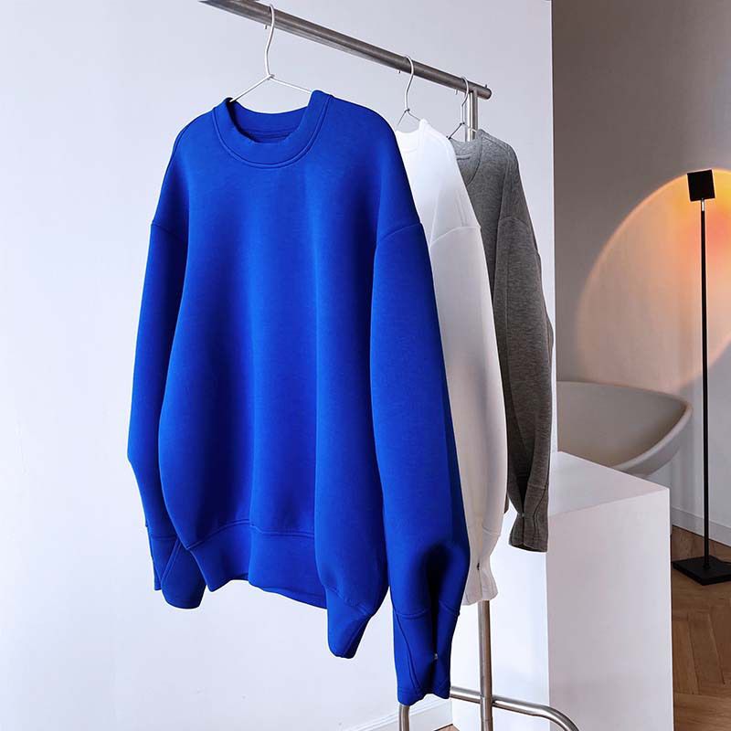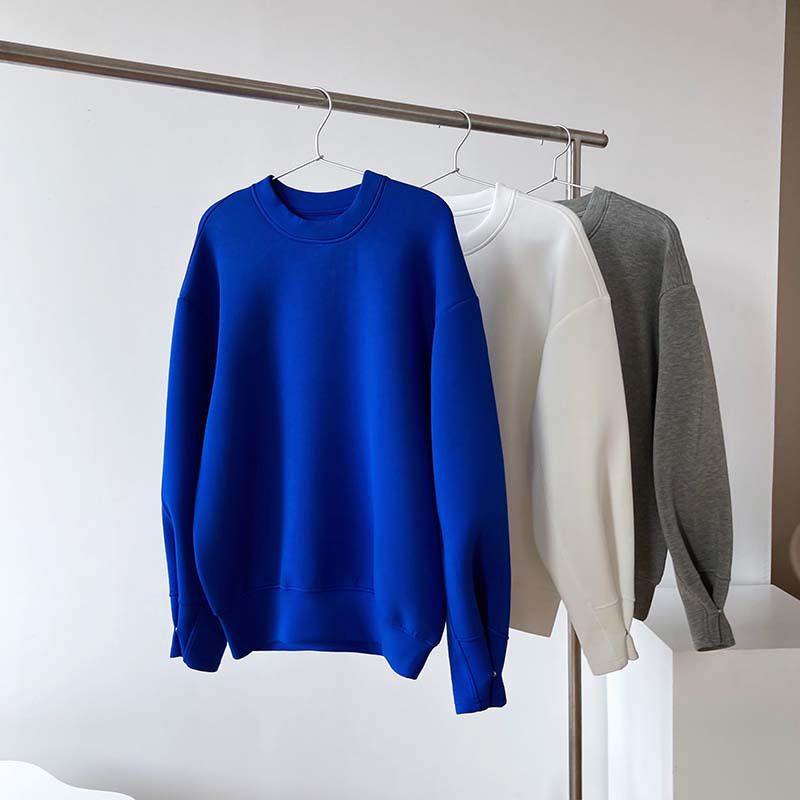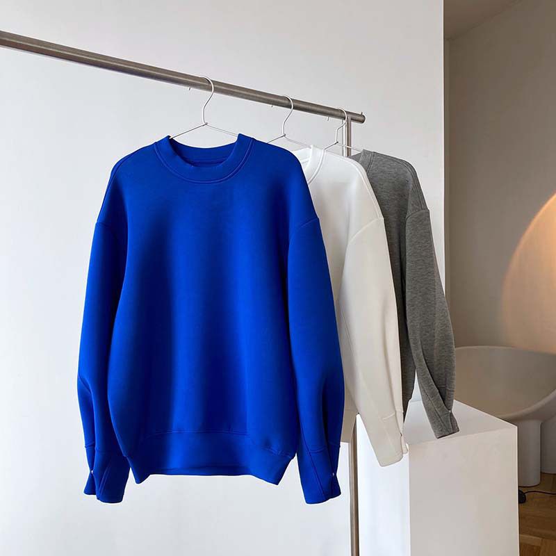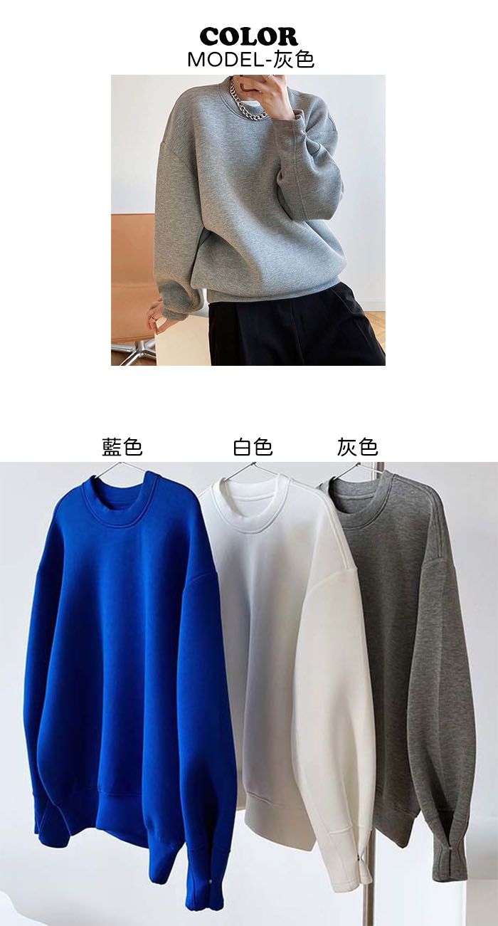 兩種尺寸/手袖鈕釦抓褶/空氣感大學T/抗皺面料/寬鬆長版/圓領 - 休閒居家簡約百搭素面抓褶袖釦大學T長袖上衣寬鬆大尺碼上衣長版上衣多尺寸ML白色藍色灰色