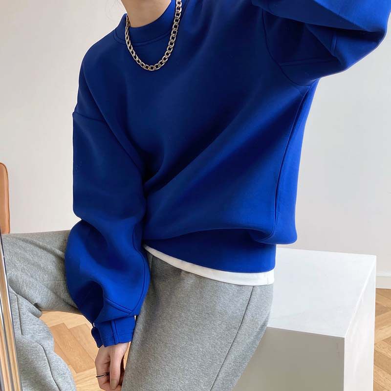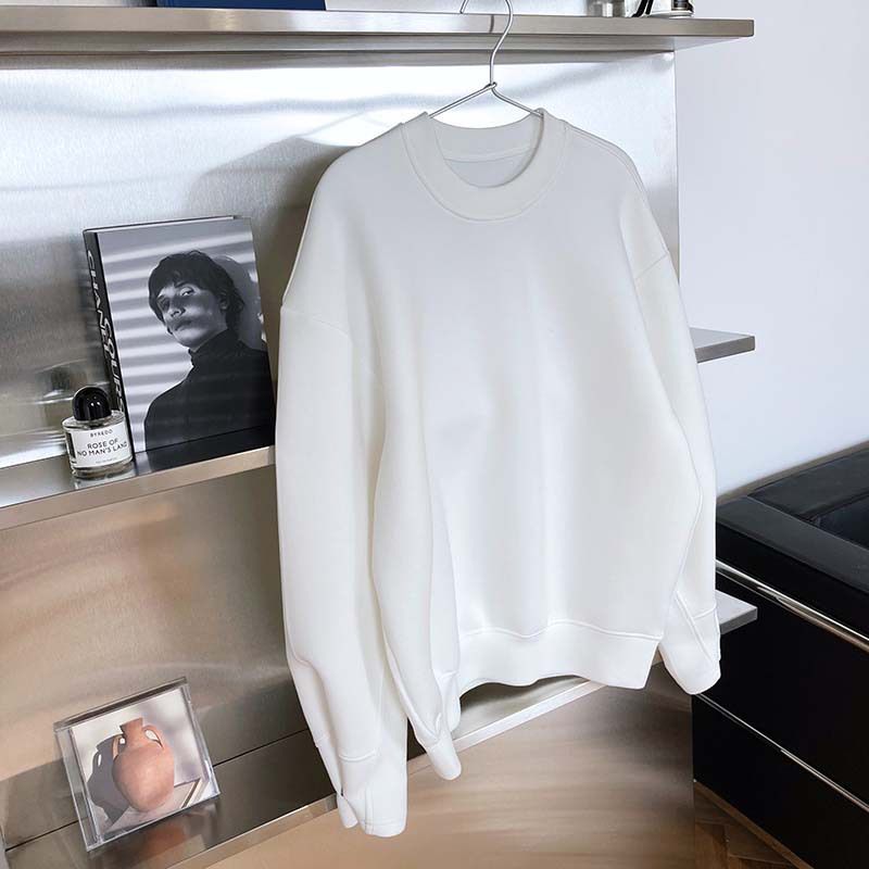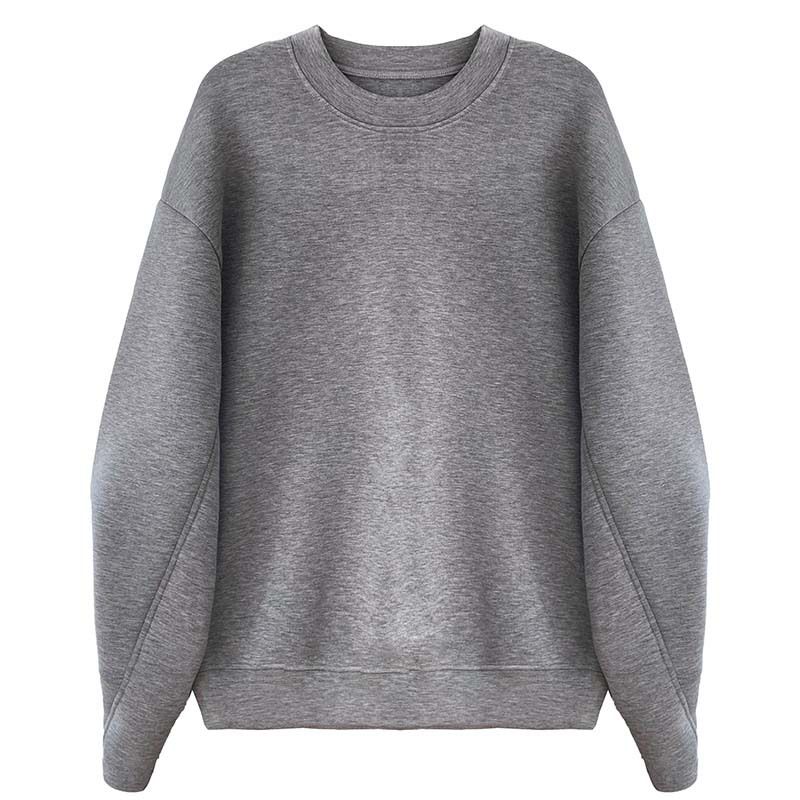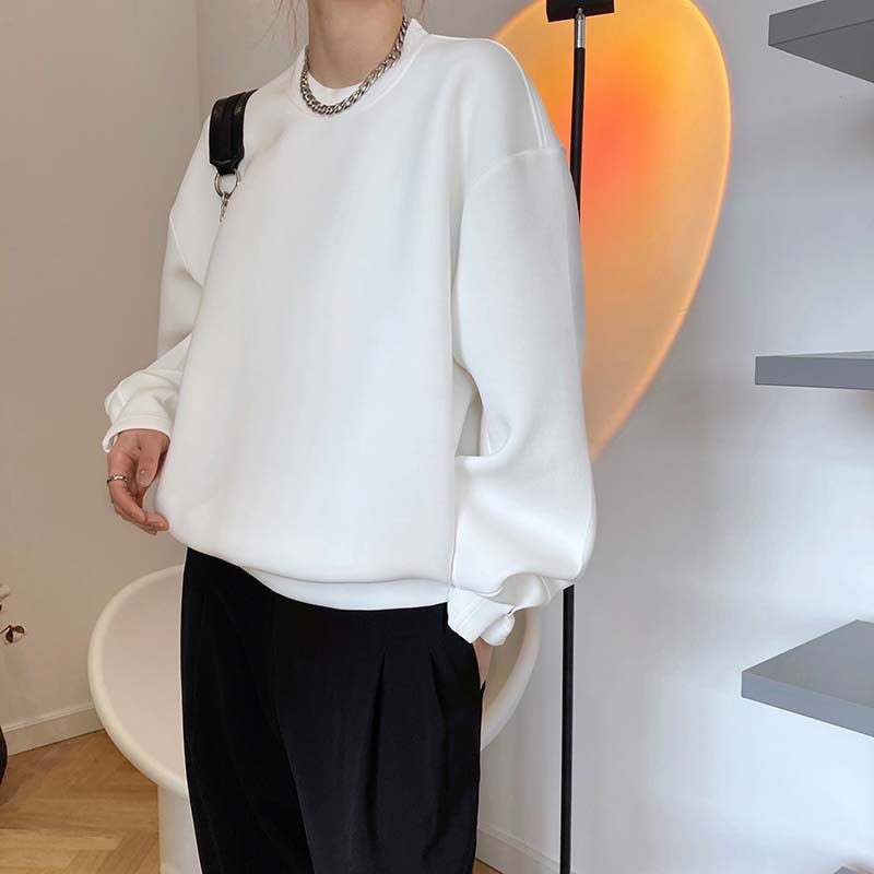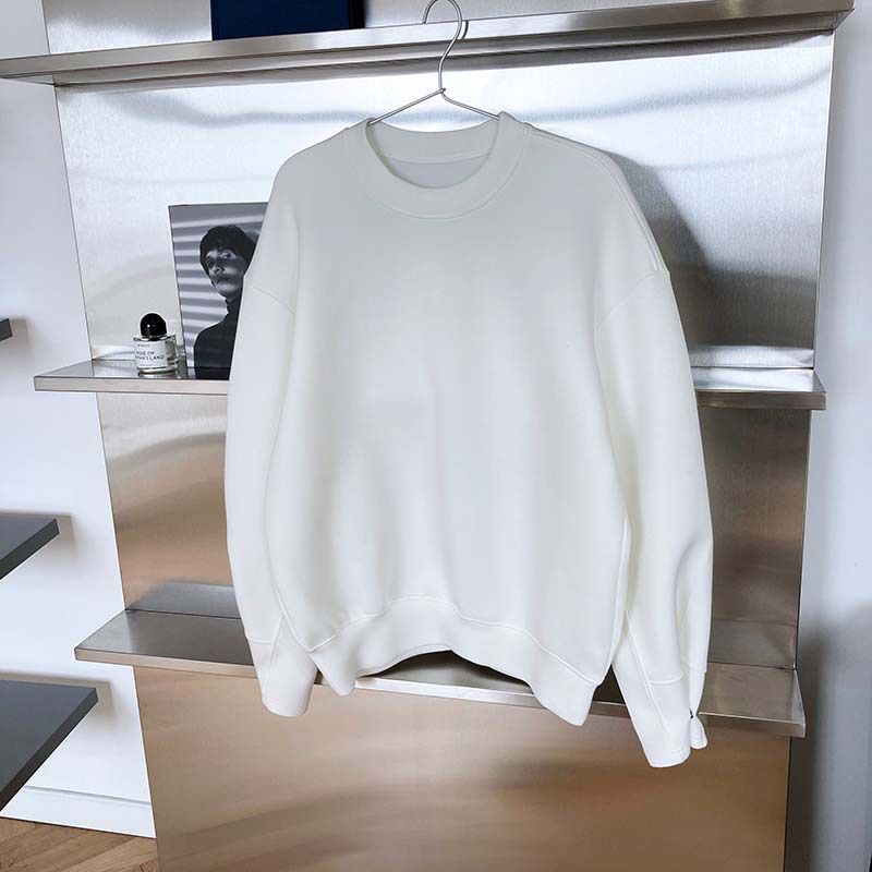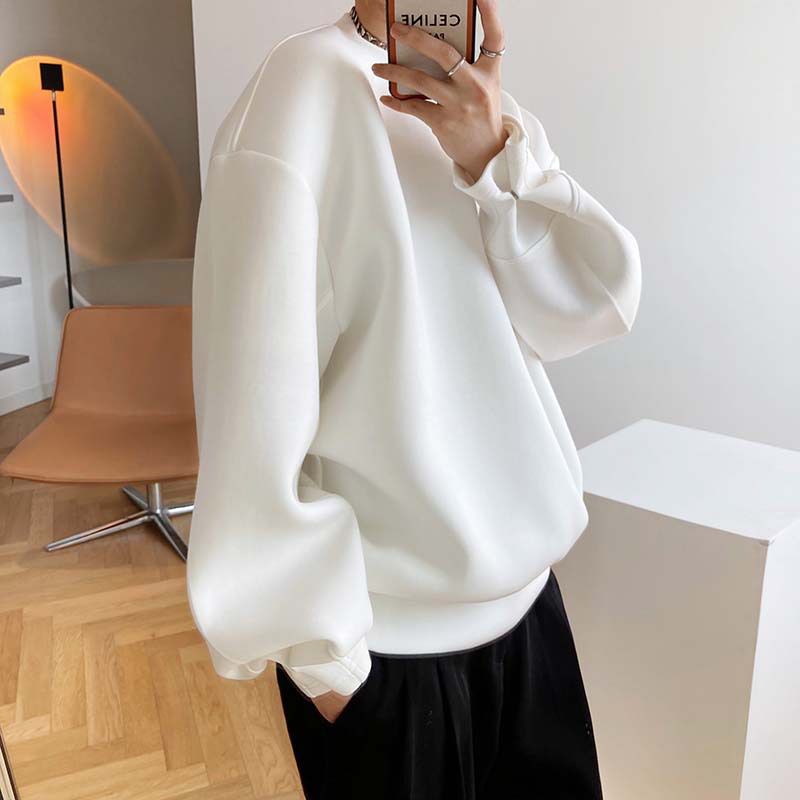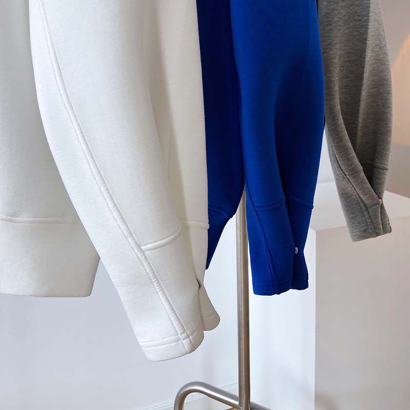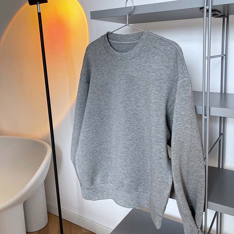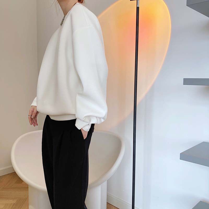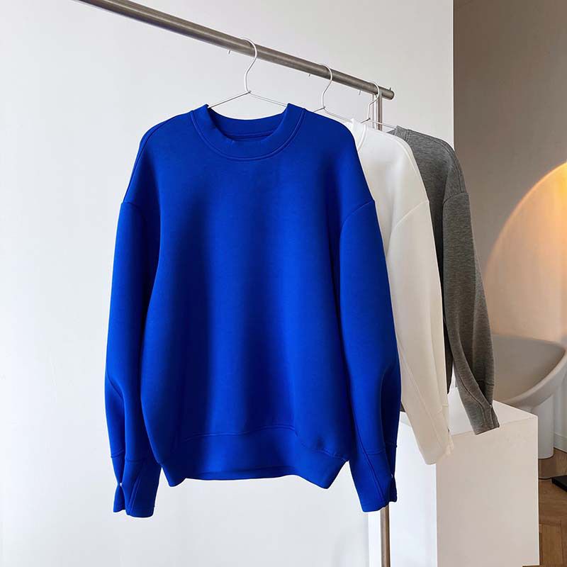 兩種尺寸/手袖鈕釦抓褶/空氣感大學T/抗皺面料/寬鬆長版/圓領 - 休閒居家簡約百搭素面抓褶袖釦大學T長袖上衣寬鬆大尺碼上衣長版上衣多尺寸ML白色藍色灰色
