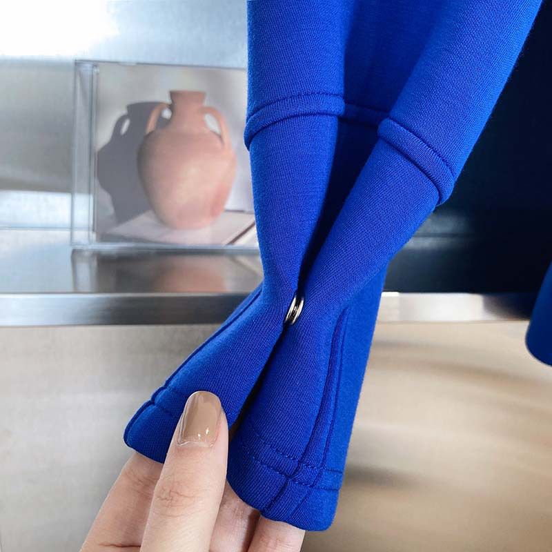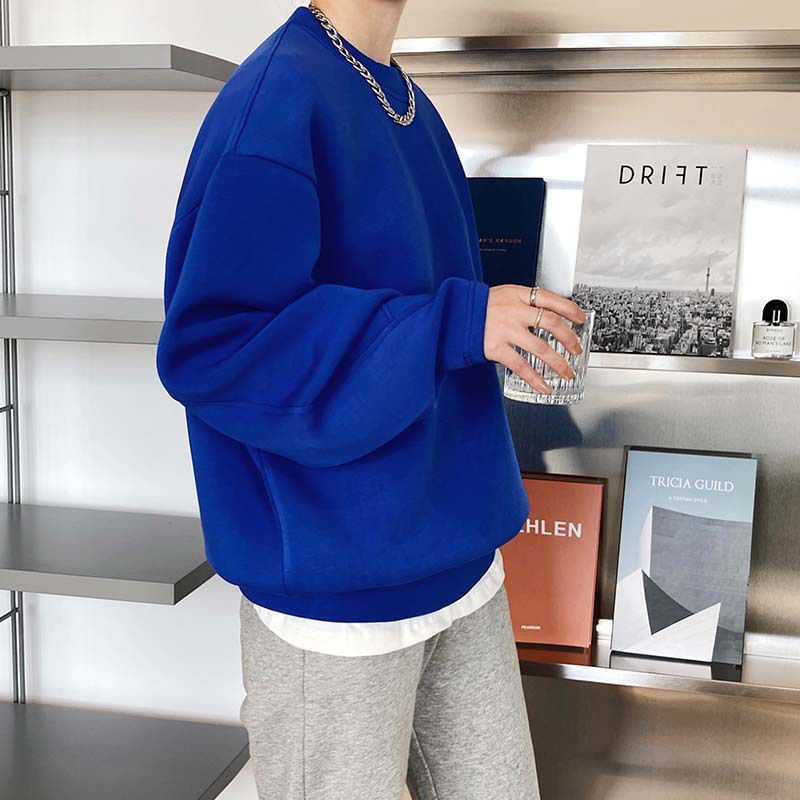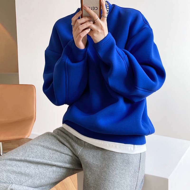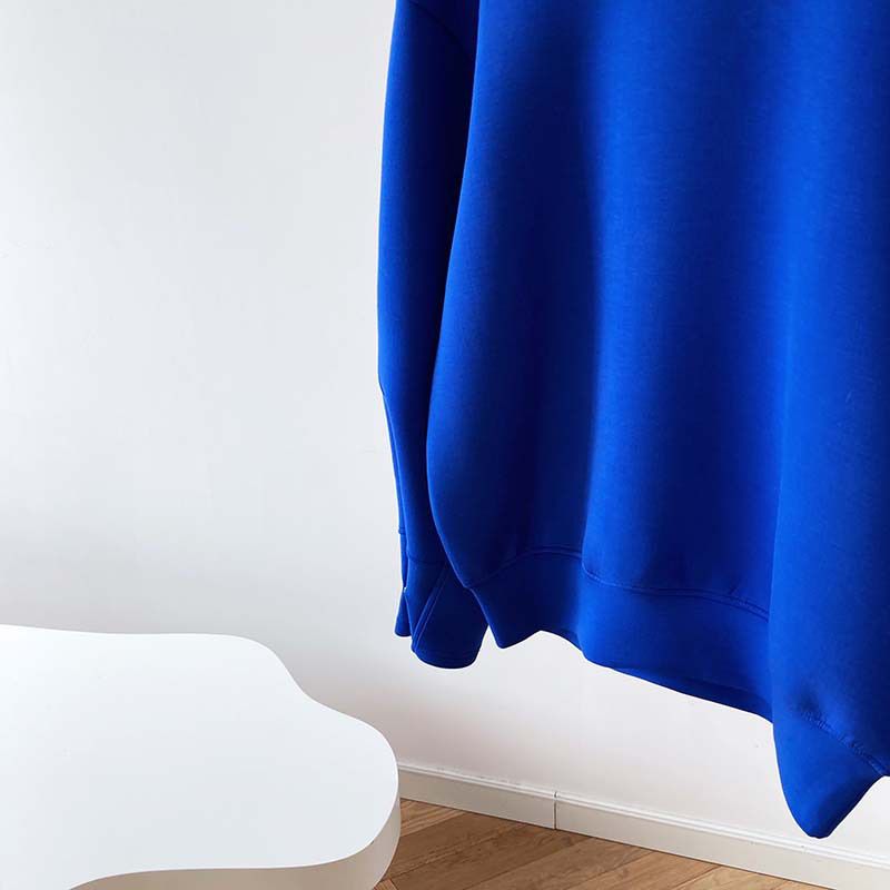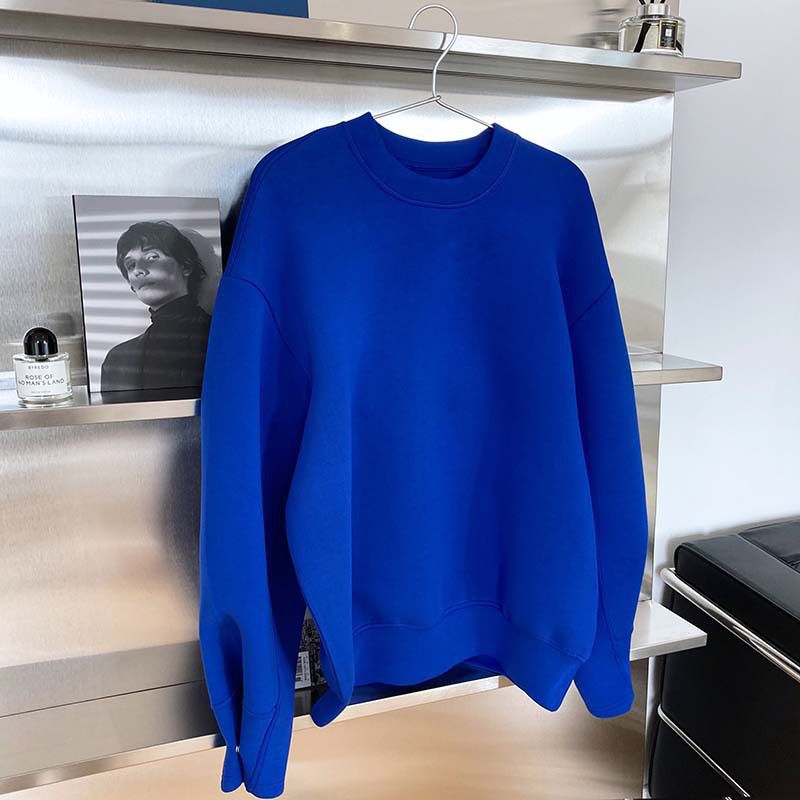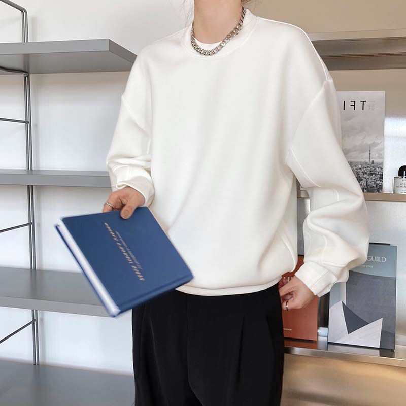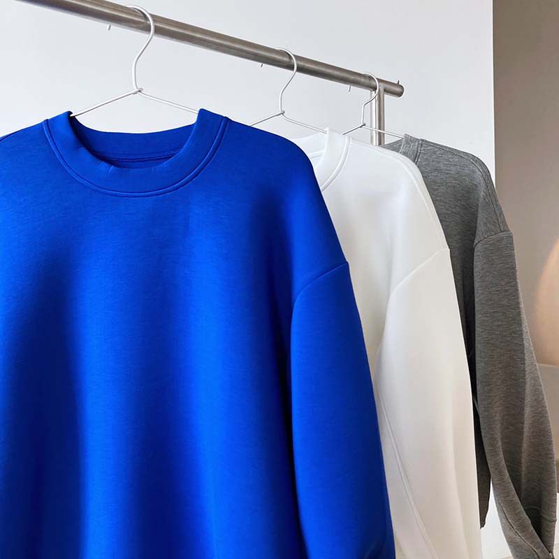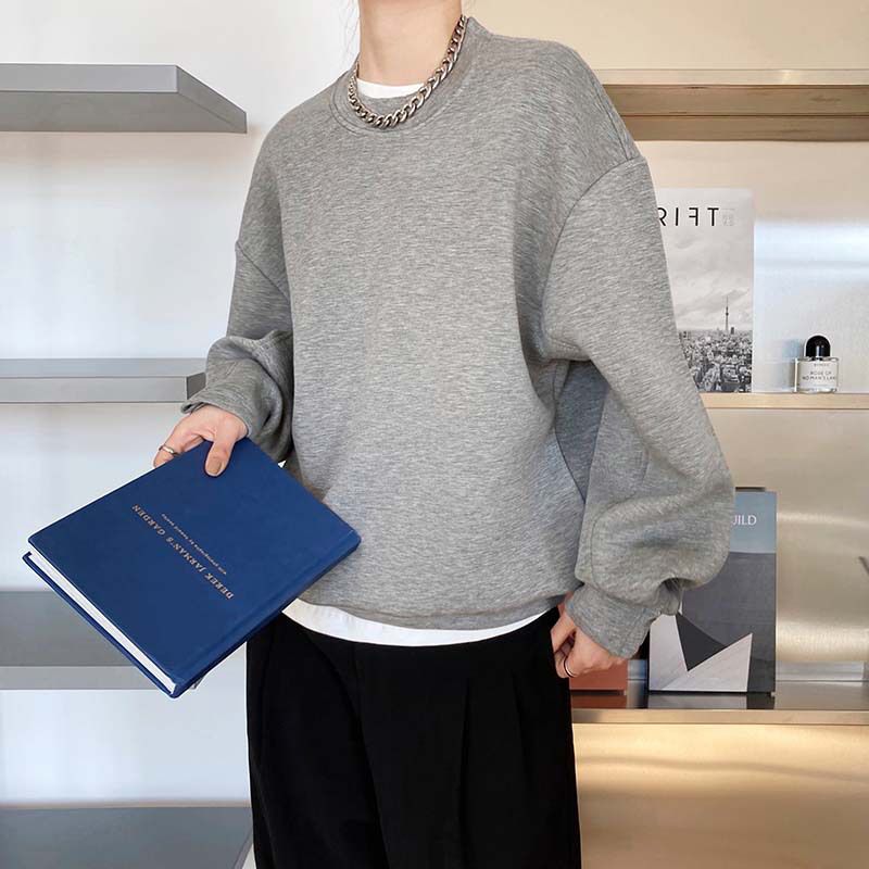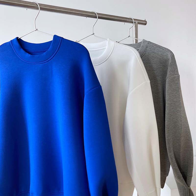 兩種尺寸/手袖鈕釦抓褶/空氣感大學T/抗皺面料/寬鬆長版/圓領 - 休閒居家簡約百搭素面抓褶袖釦大學T長袖上衣寬鬆大尺碼上衣長版上衣多尺寸ML白色藍色灰色