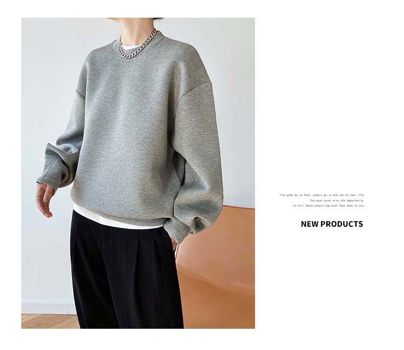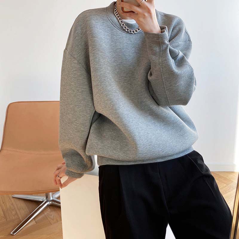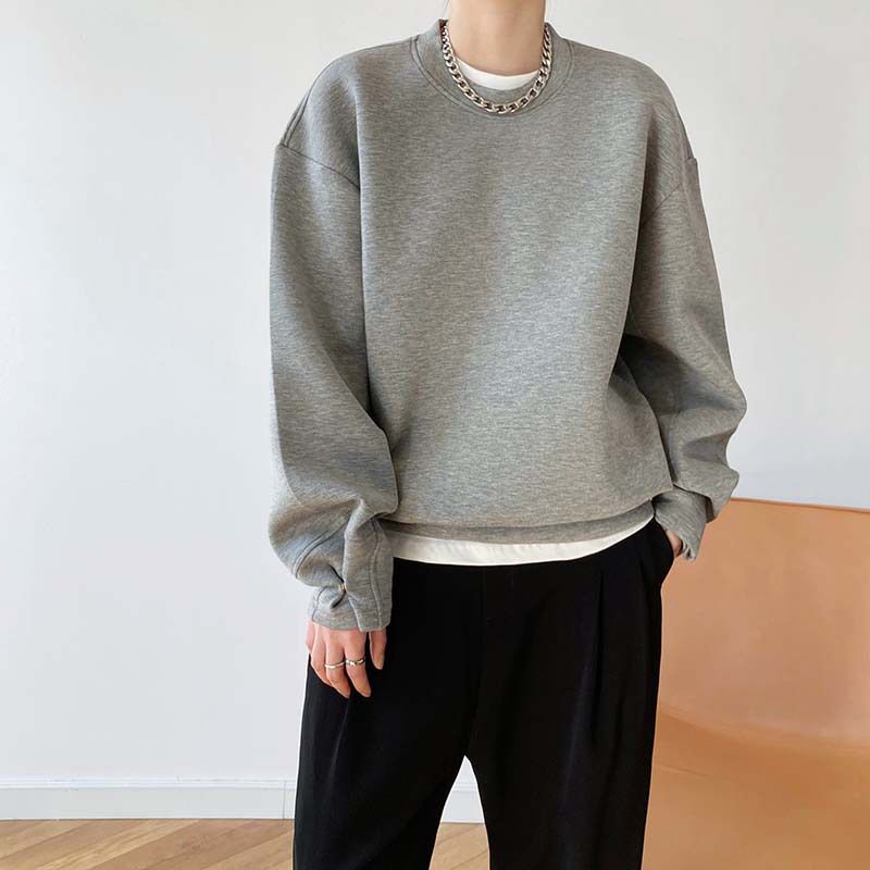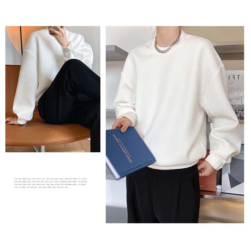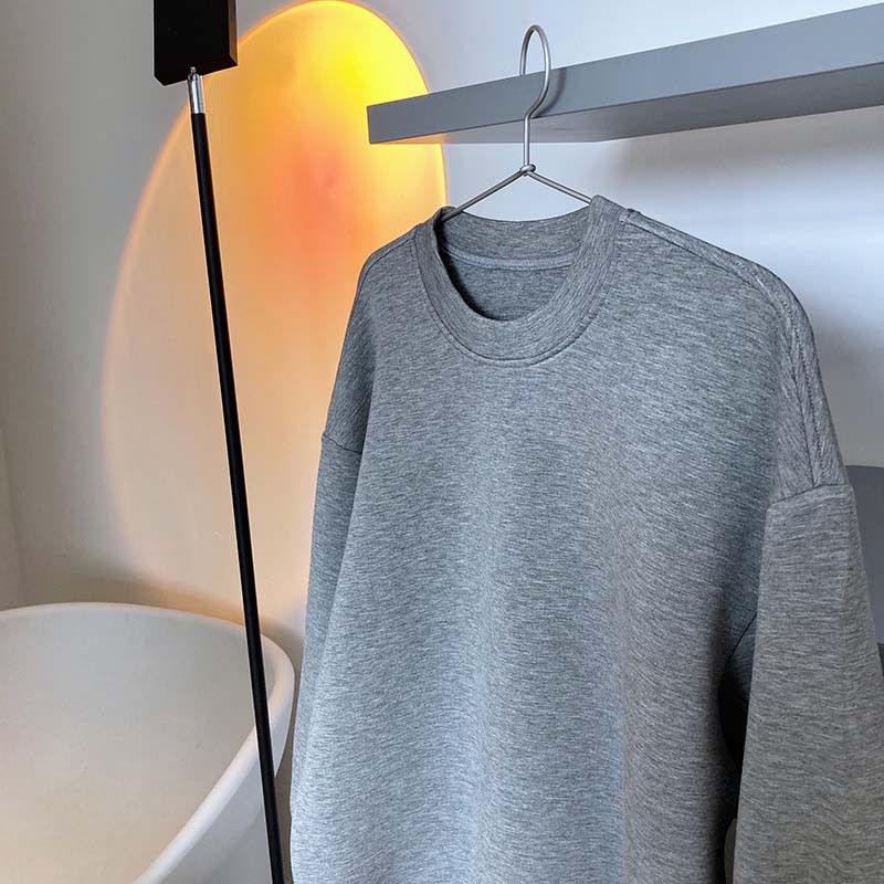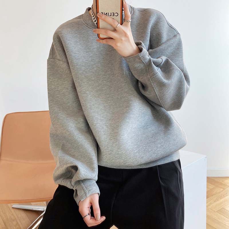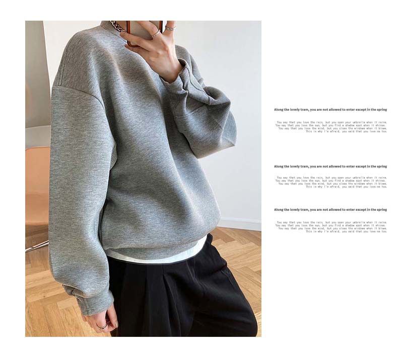 【C60062】品牌 抓褶袖釦大學T-抗皺素面寬鬆長版圓領長袖上衣★★