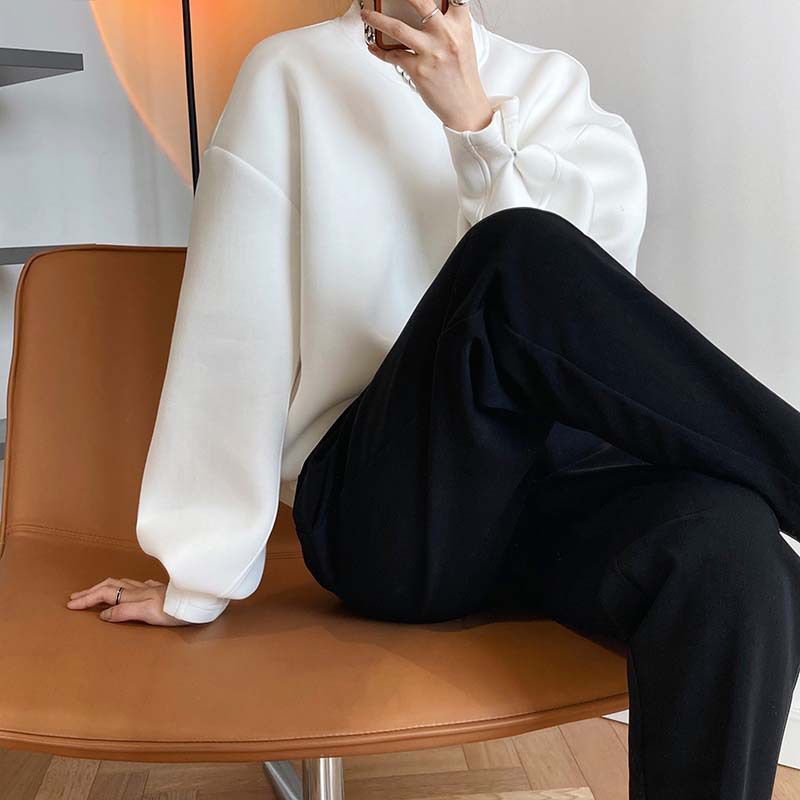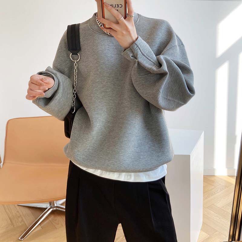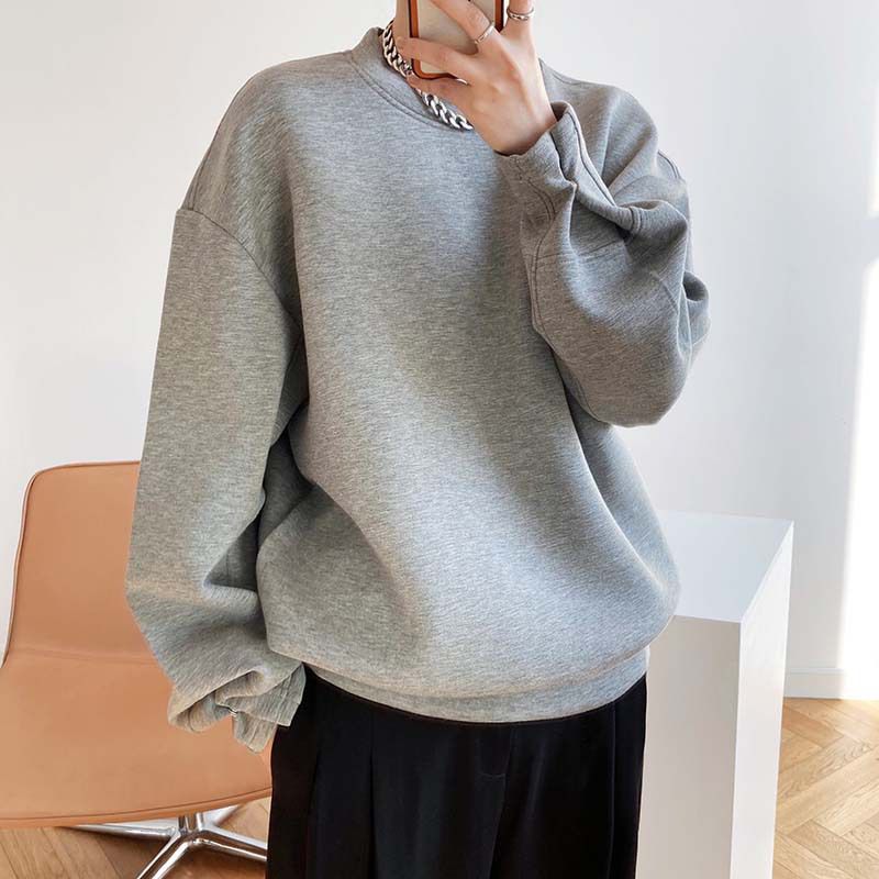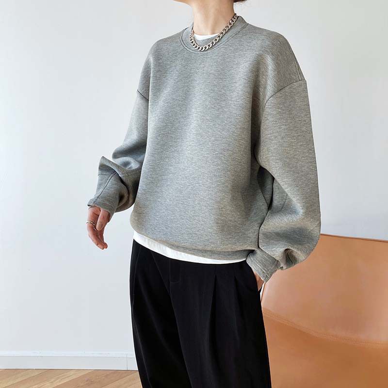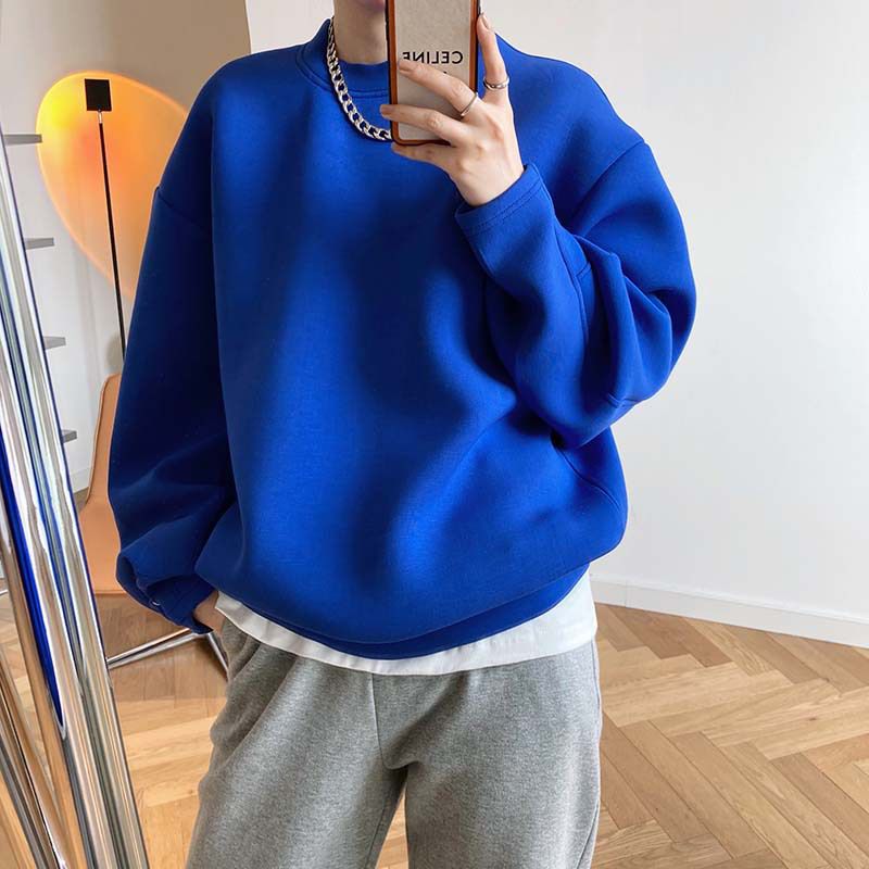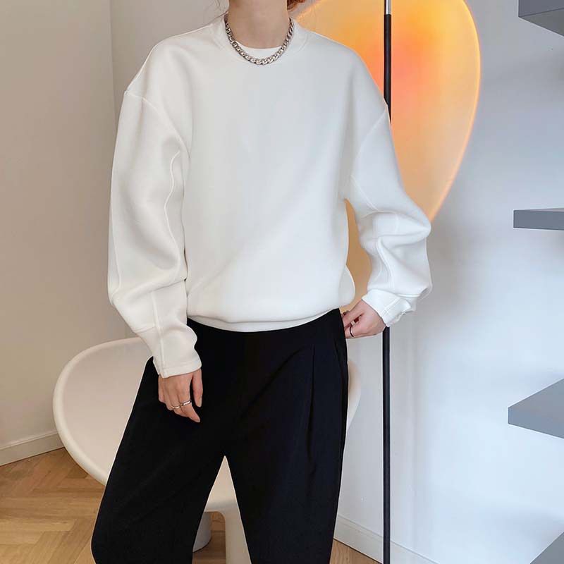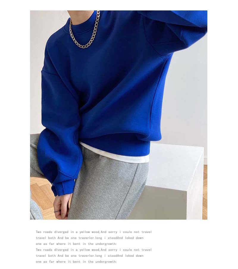 【C60062】品牌 抓褶袖釦大學T-抗皺素面寬鬆長版圓領長袖上衣★★