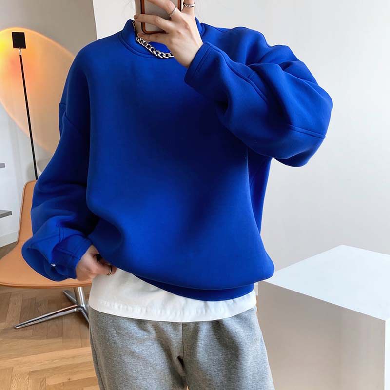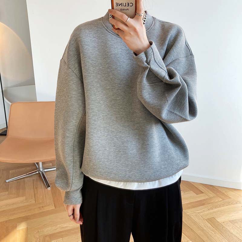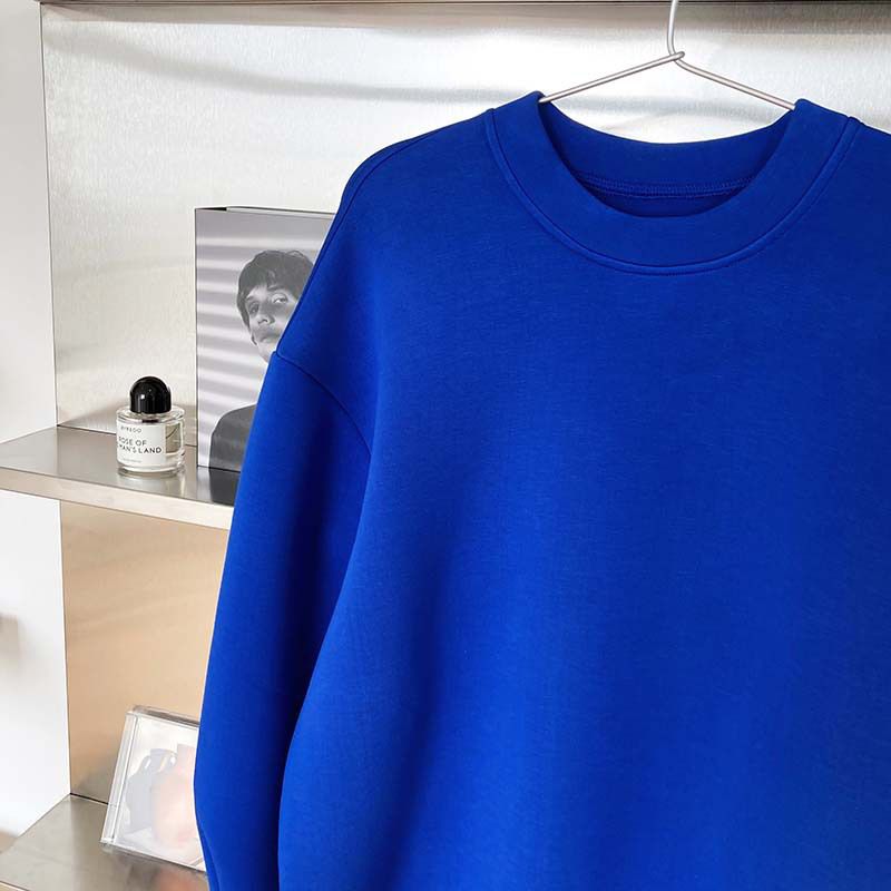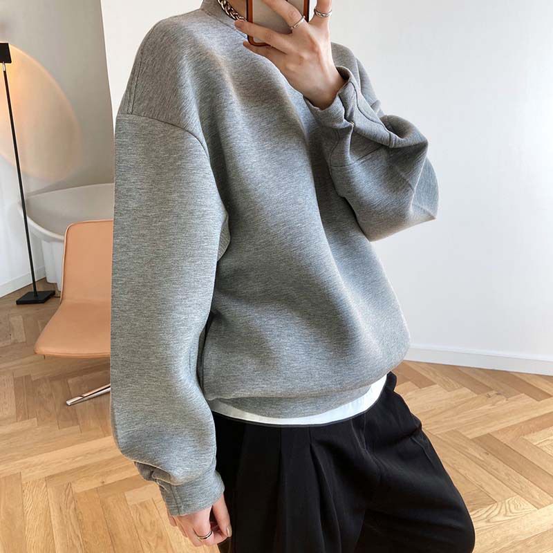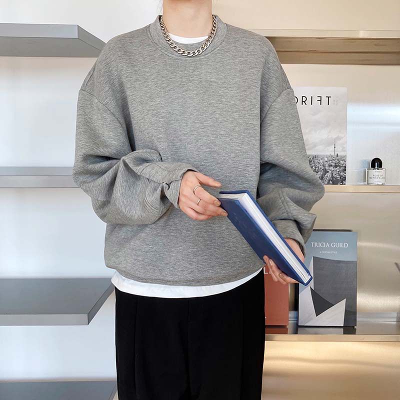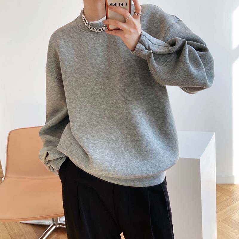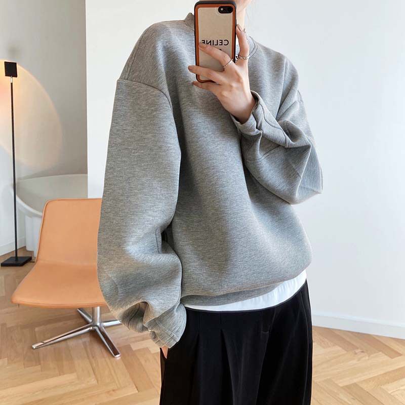 【C60062】品牌 抓褶袖釦大學T-抗皺素面寬鬆長版圓領長袖上衣★★