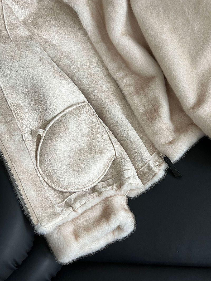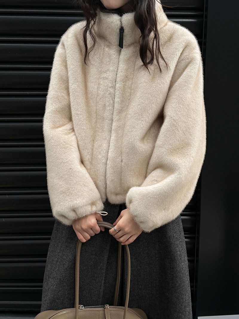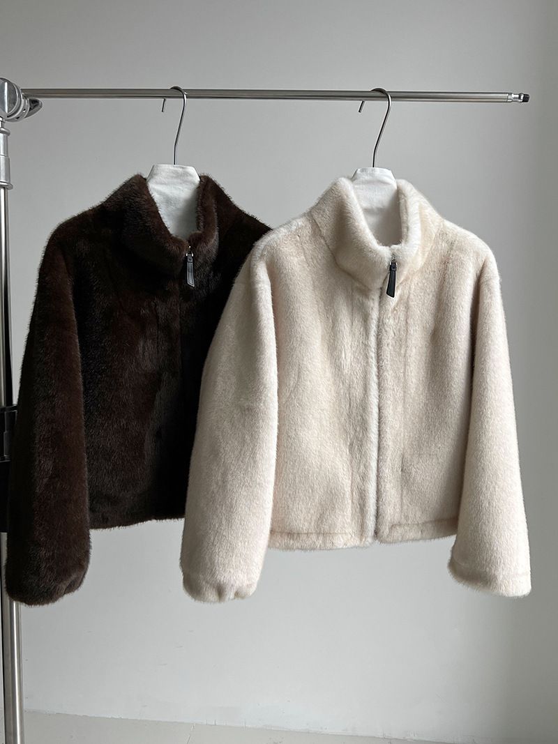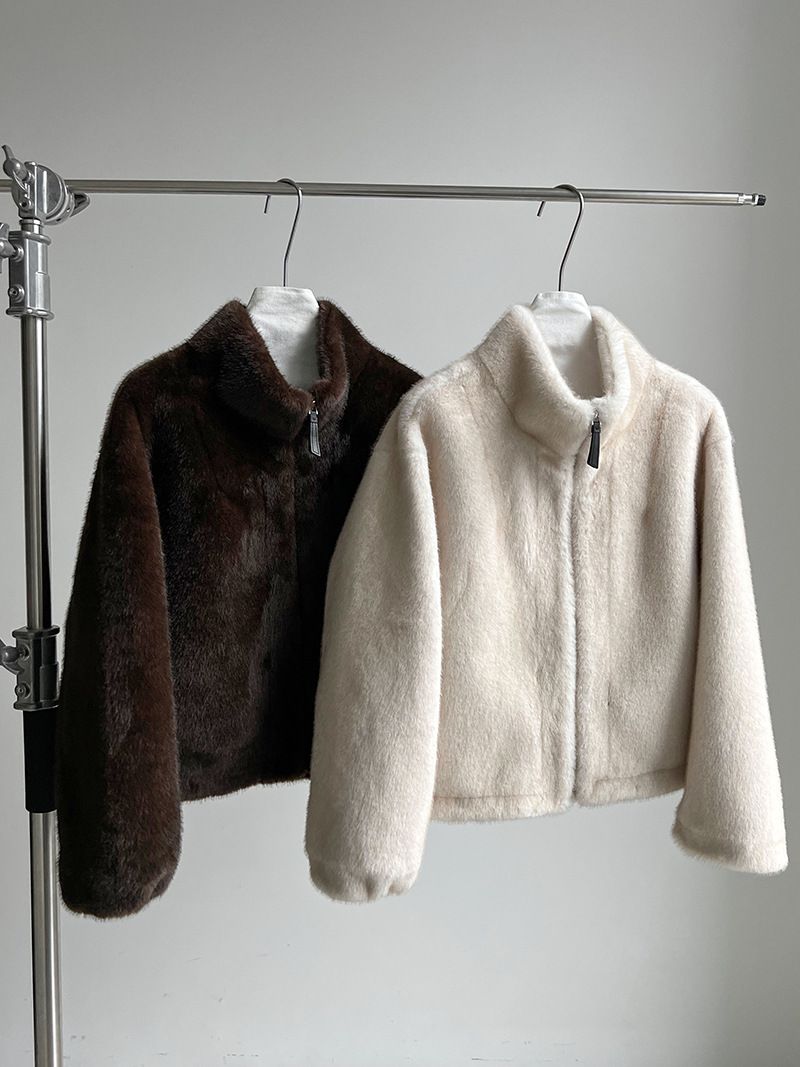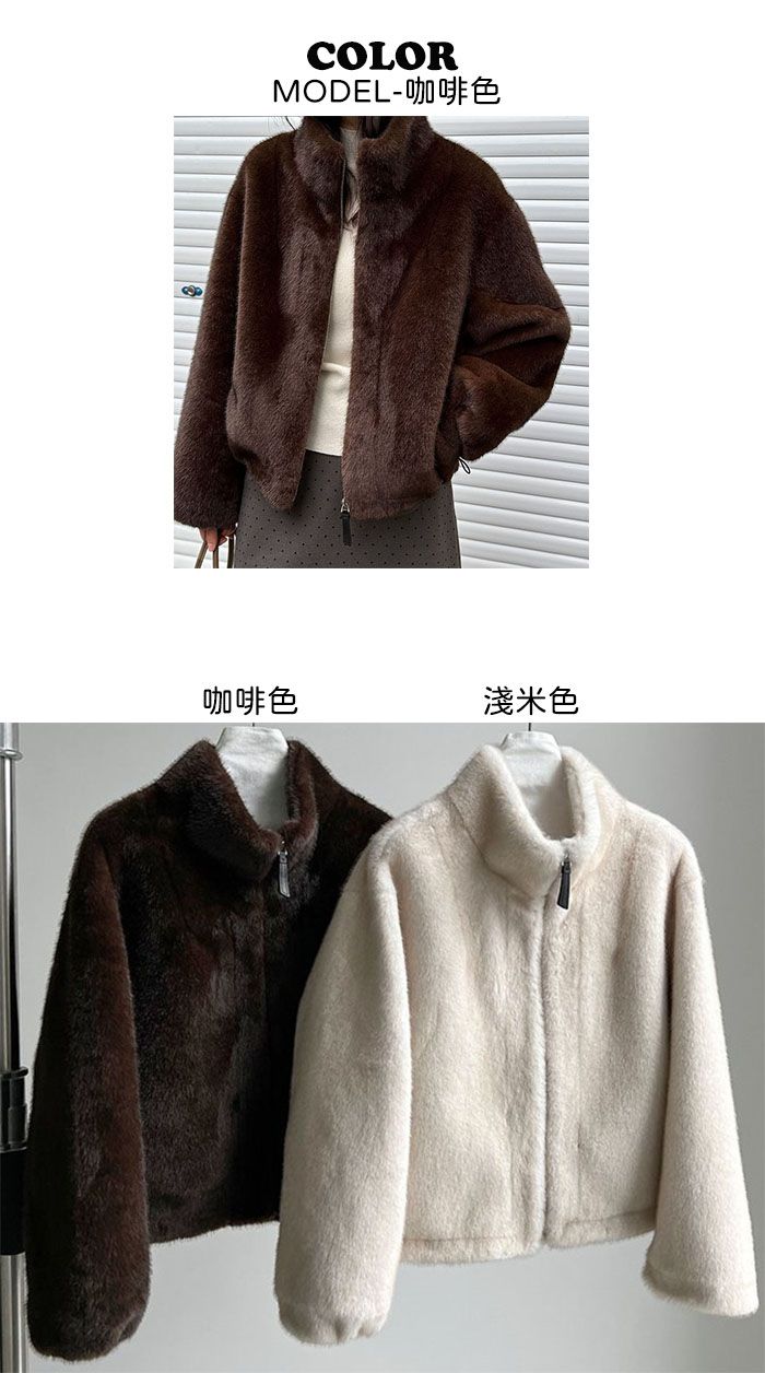 兩種尺寸/抽繩束口袖/抽繩收腰/毛毛外套/內麂皮/雙口袋/立領.高領/拉鍊外套 - 休閒婚禮簡約百搭素面束袖水貂毛外套拉鍊立領素面雙口袋長袖收腰夾克外套長袖外套刷毛外套多尺寸ML淺米色咖啡色