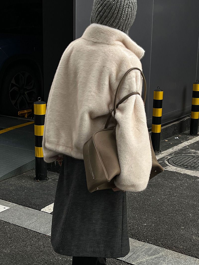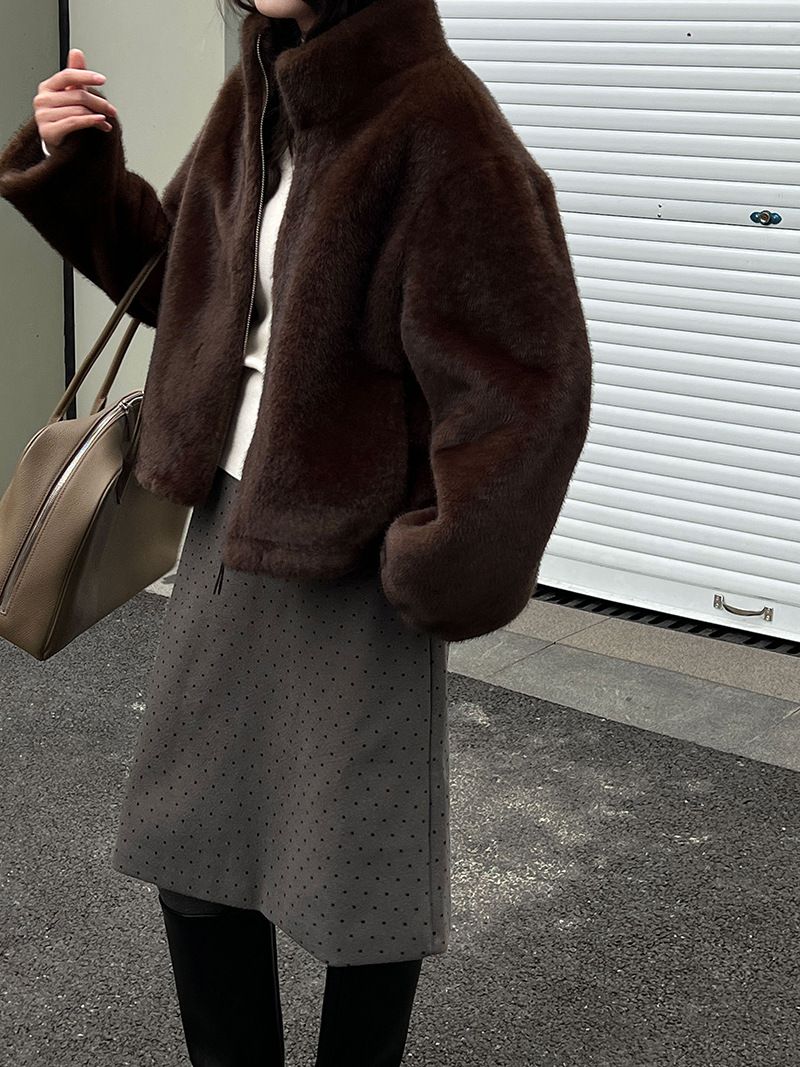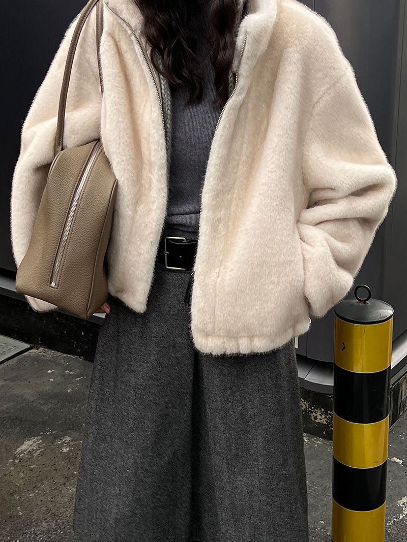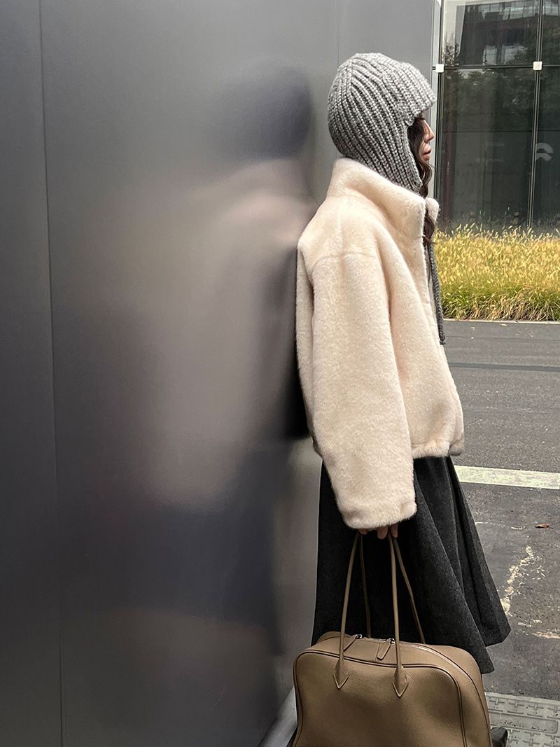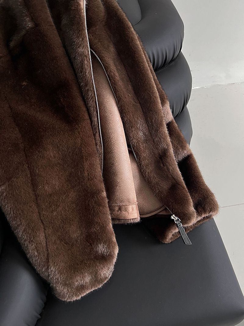 兩種尺寸/抽繩束口袖/抽繩收腰/毛毛外套/內麂皮/雙口袋/立領.高領/拉鍊外套 - 休閒婚禮簡約百搭素面束袖水貂毛外套拉鍊立領素面雙口袋長袖收腰夾克外套長袖外套刷毛外套多尺寸ML淺米色咖啡色
