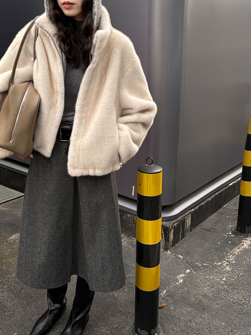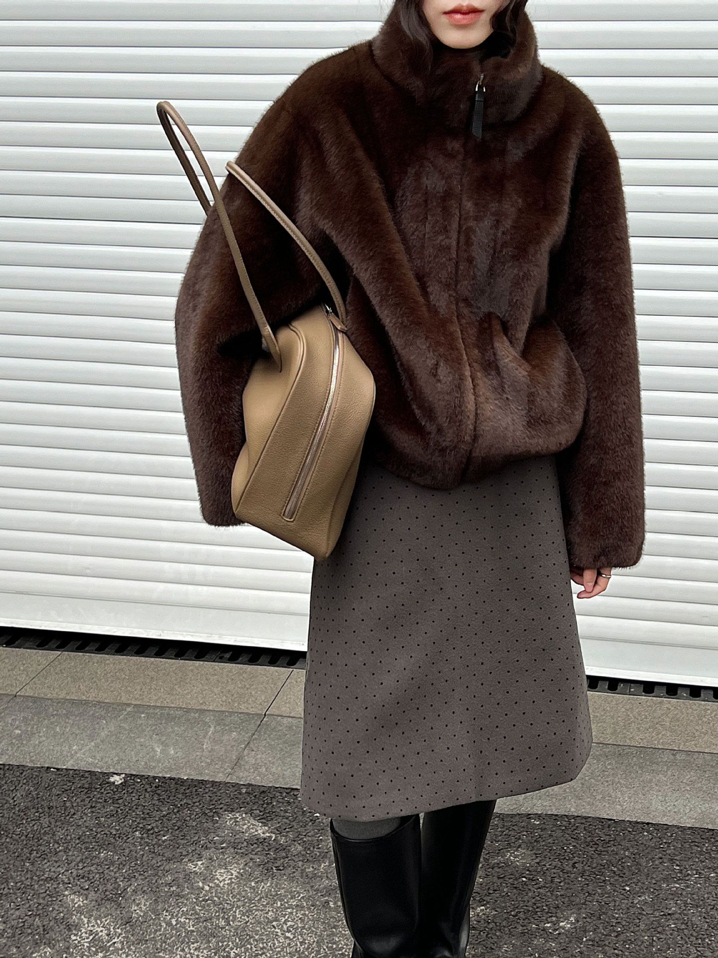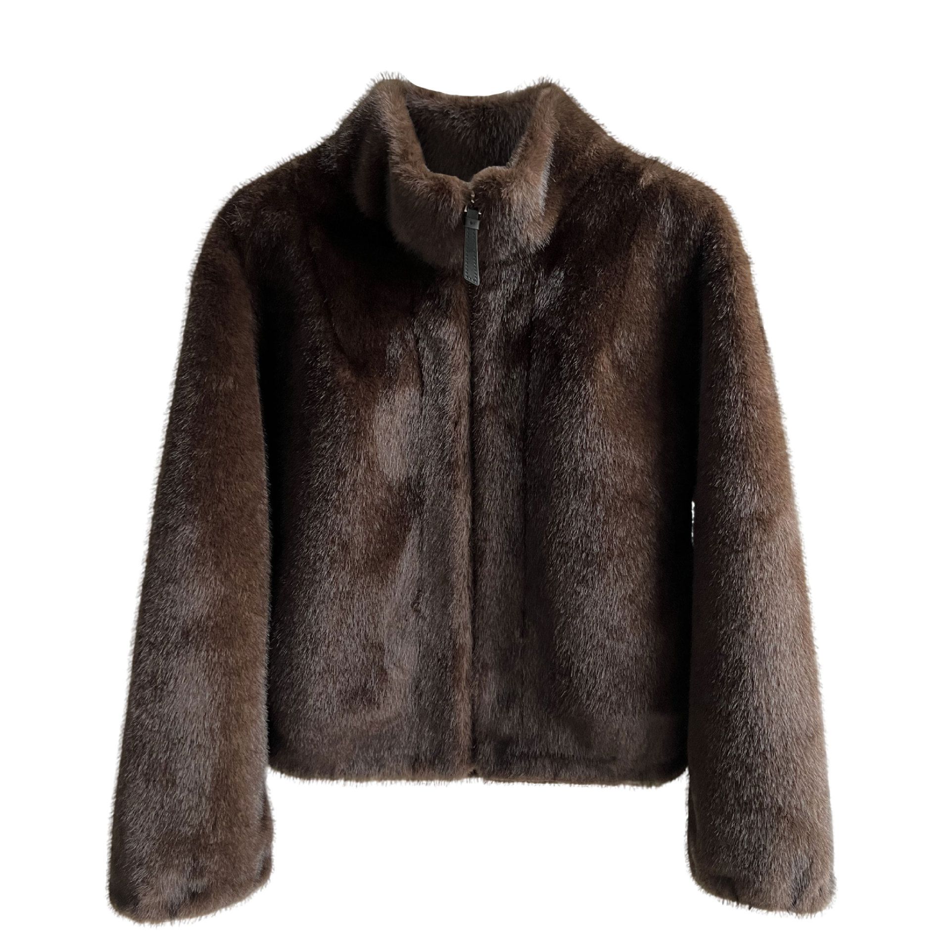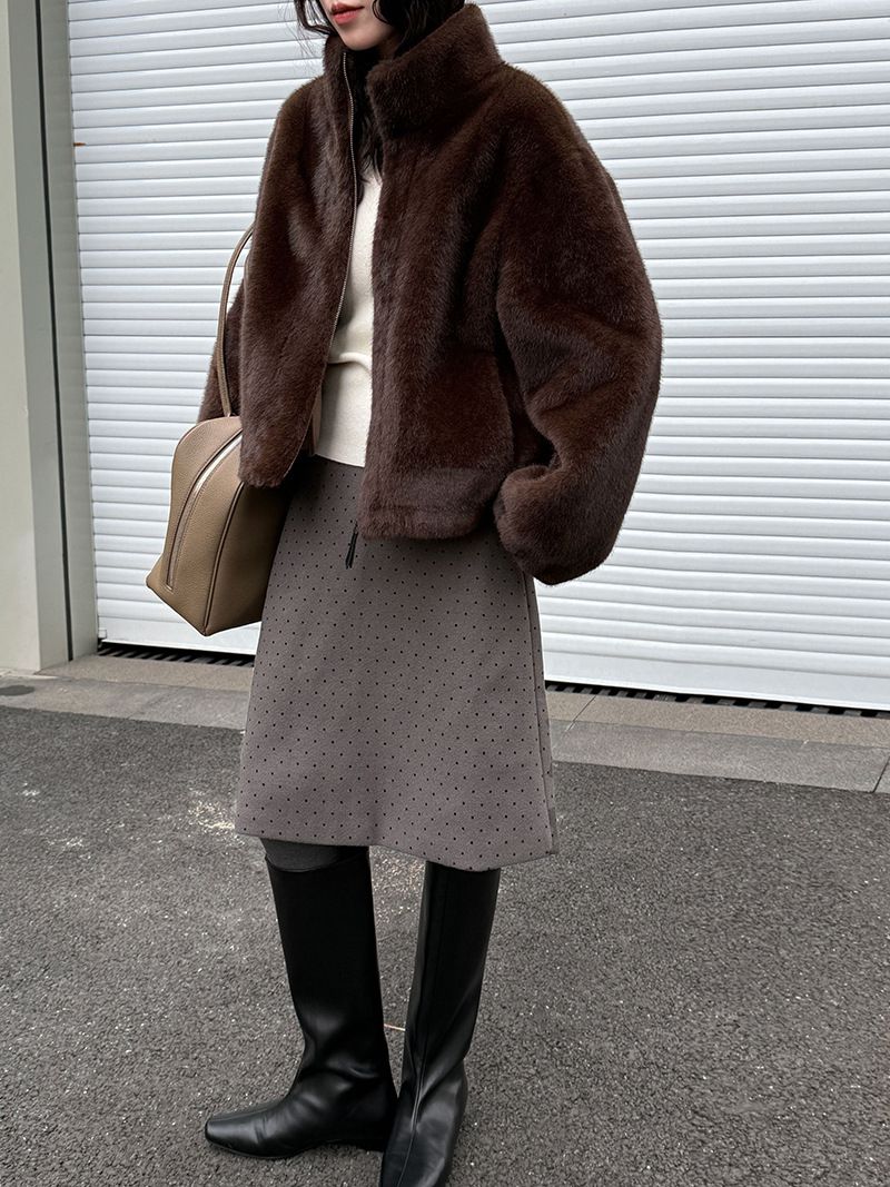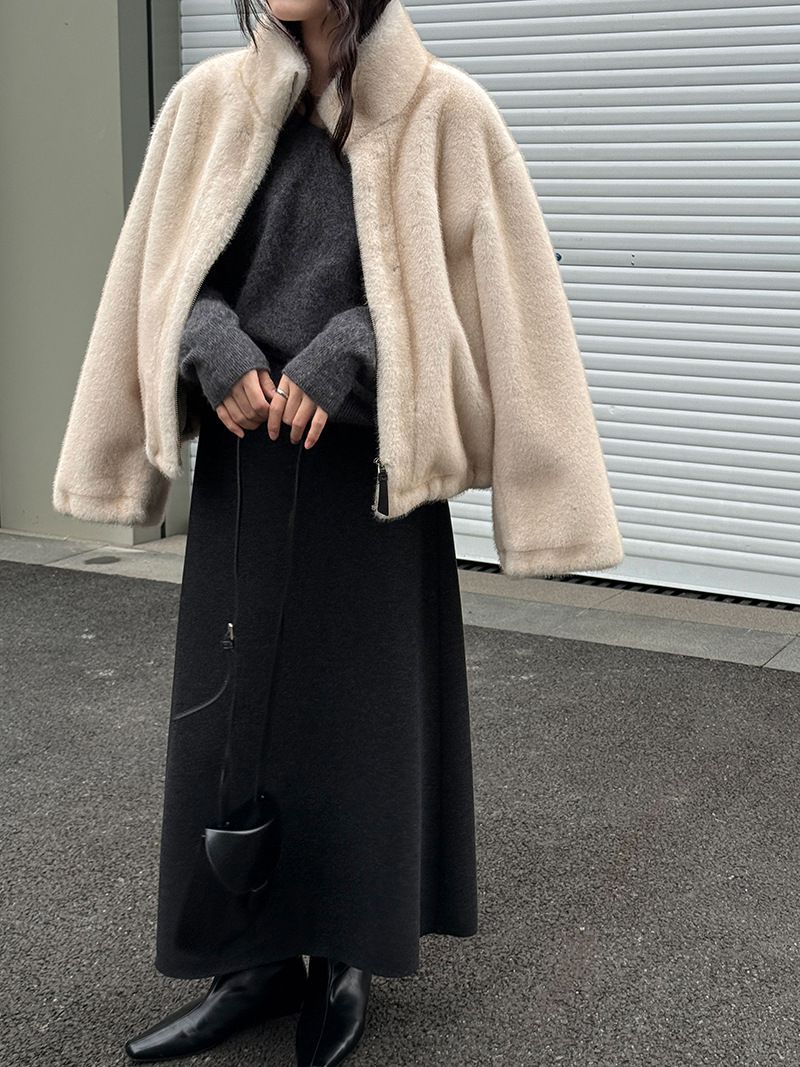 【C60066】品牌 束袖水貂毛外套-拉鍊立領素面雙口袋長袖收腰夾克★★