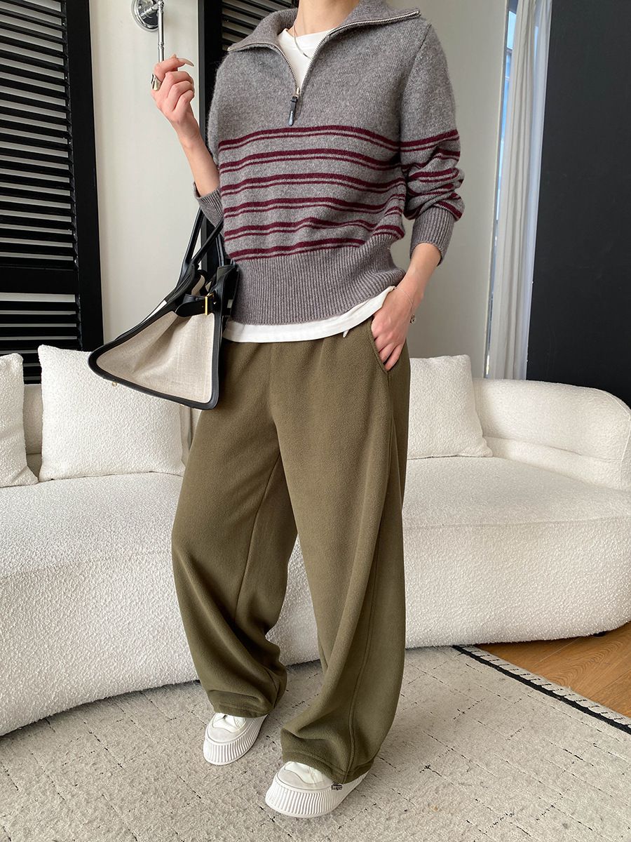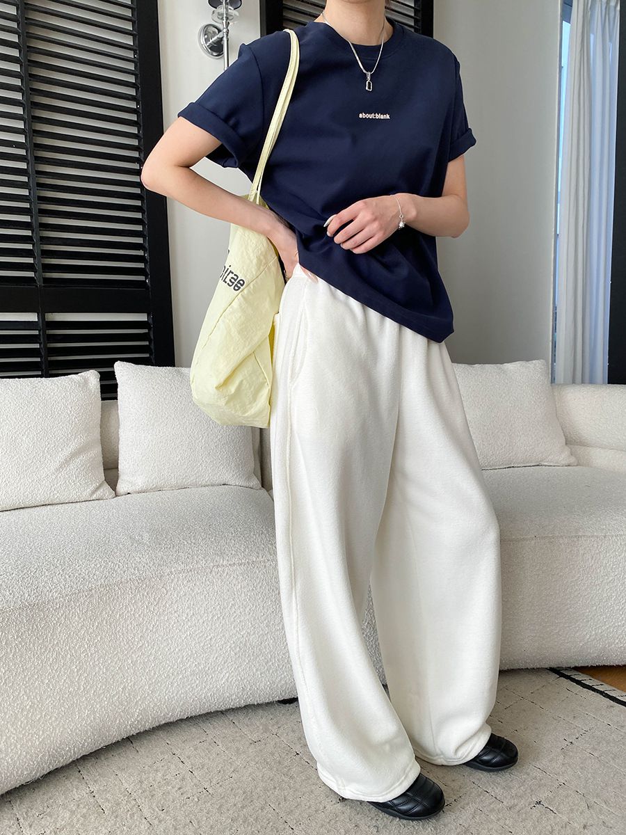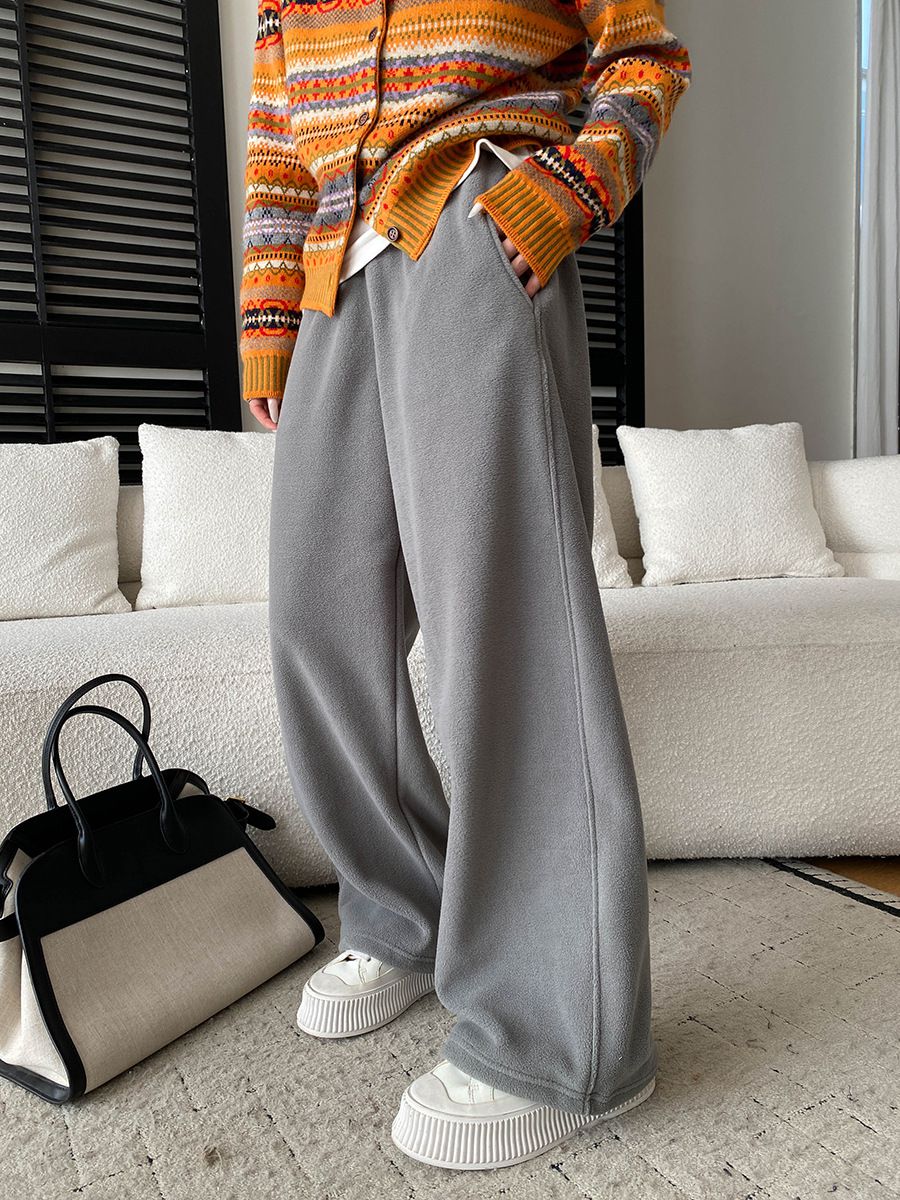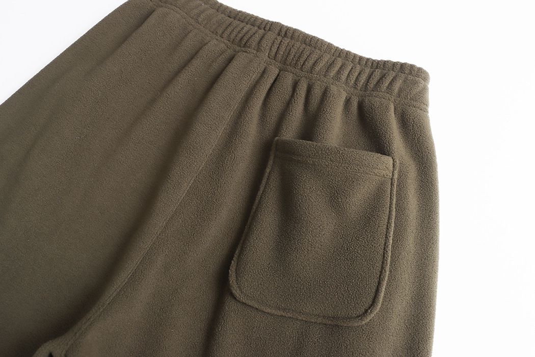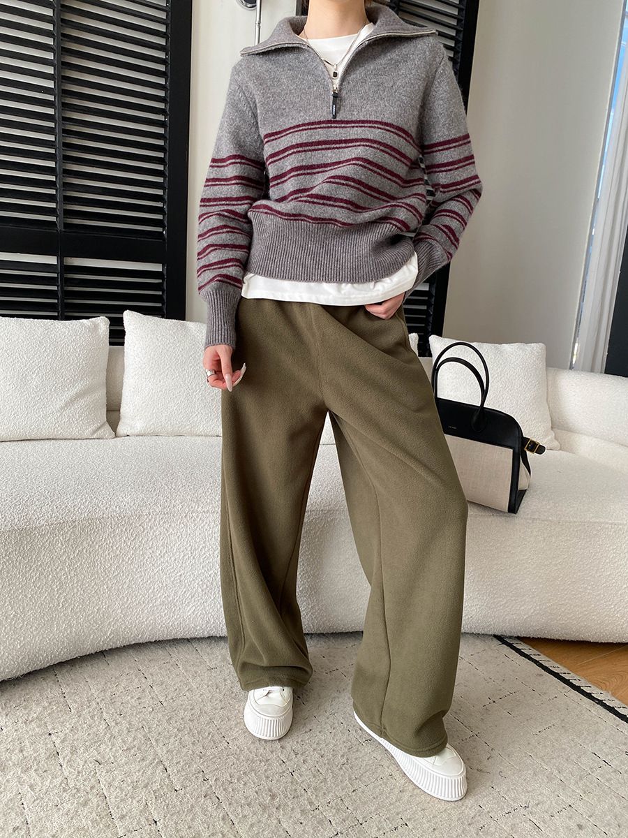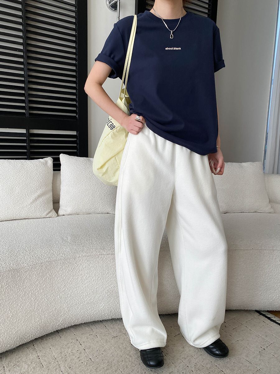 兩種尺寸/厚磅毛呢面料/全腰鬆緊/褲頭腰內抽繩/雙口袋/抽繩束口褲腳 - 休閒居家簡約百搭素面毛呢寬褲束口長褲多尺寸ML奶白色薄荷色紅色灰色軍綠色