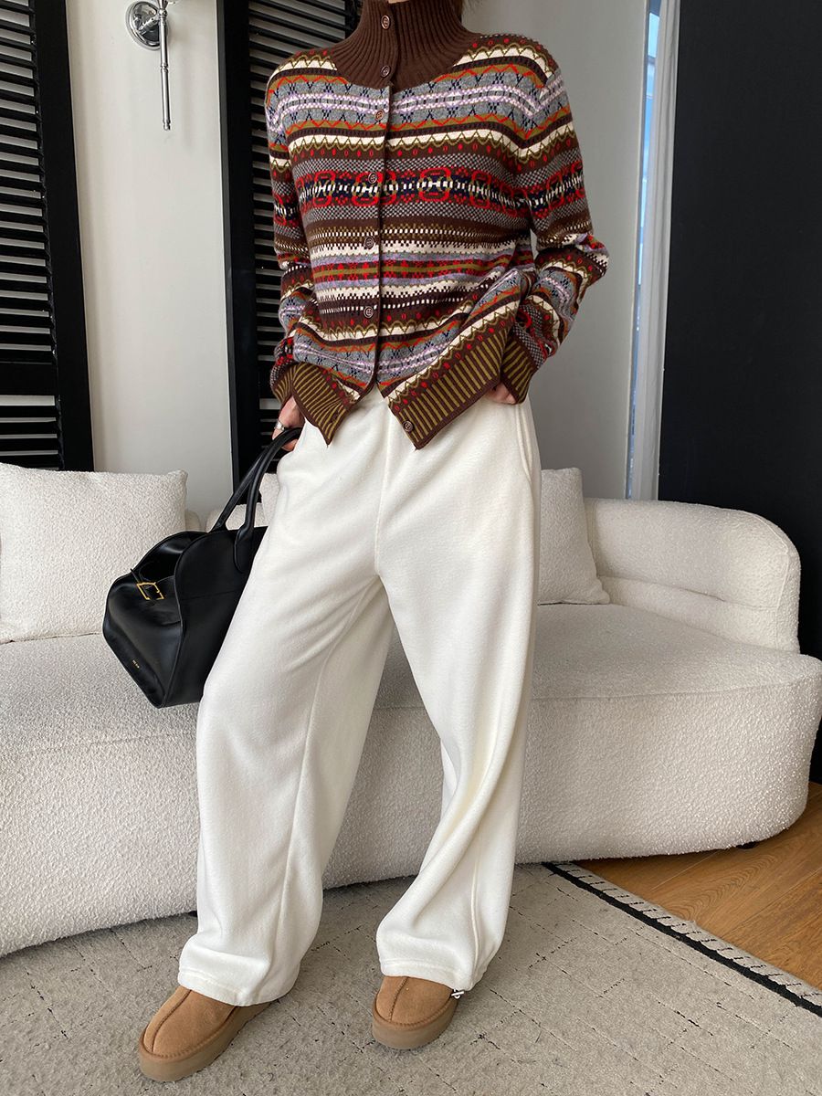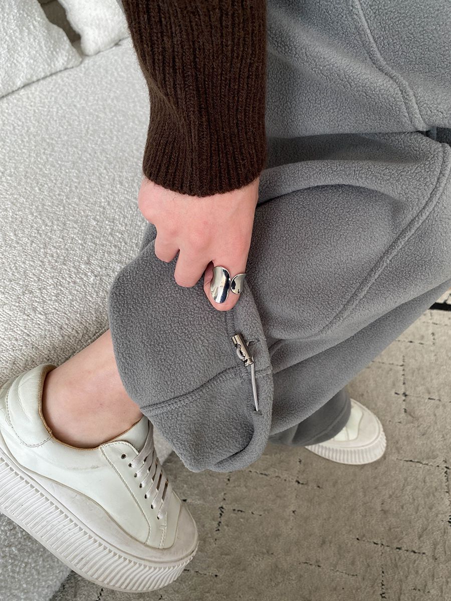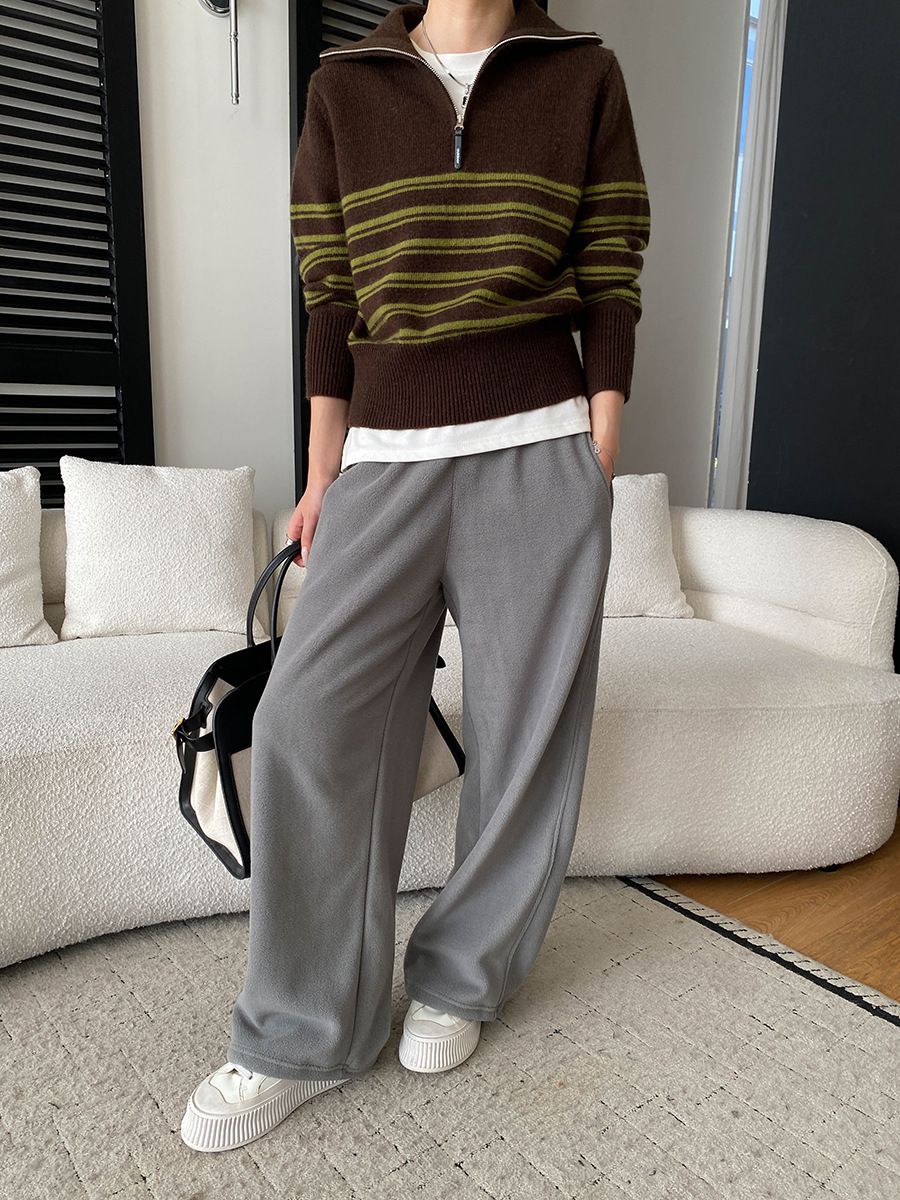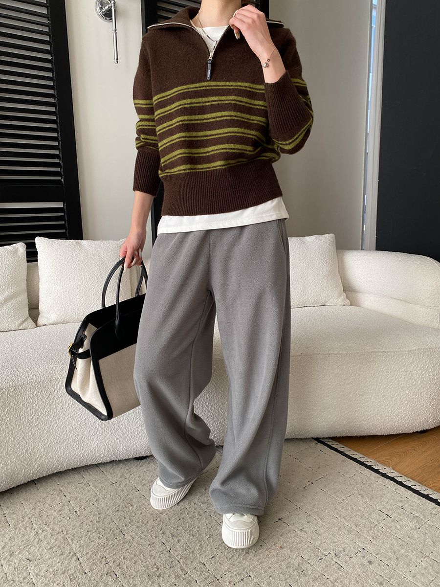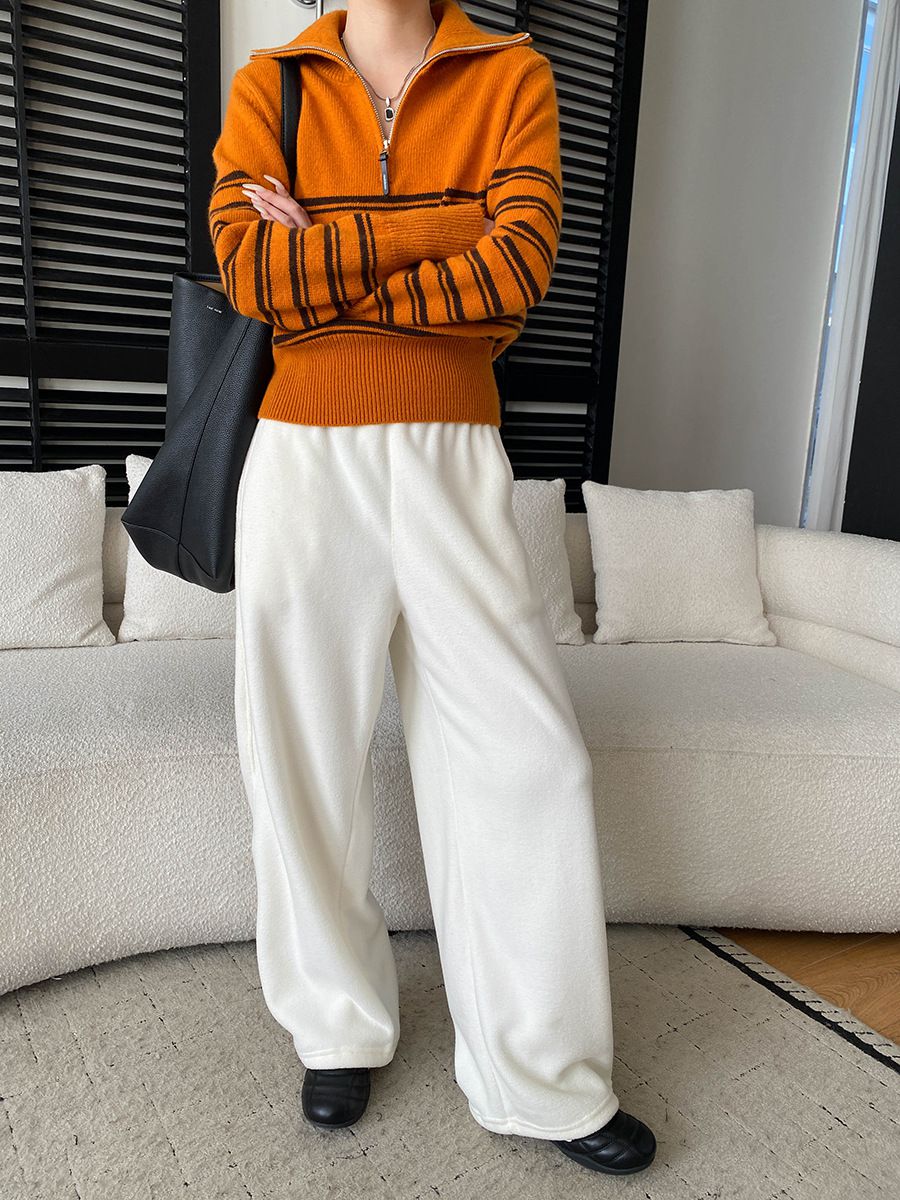 兩種尺寸/厚磅毛呢面料/全腰鬆緊/褲頭腰內抽繩/雙口袋/抽繩束口褲腳 - 休閒居家簡約百搭素面毛呢寬褲束口長褲多尺寸ML奶白色薄荷色紅色灰色軍綠色