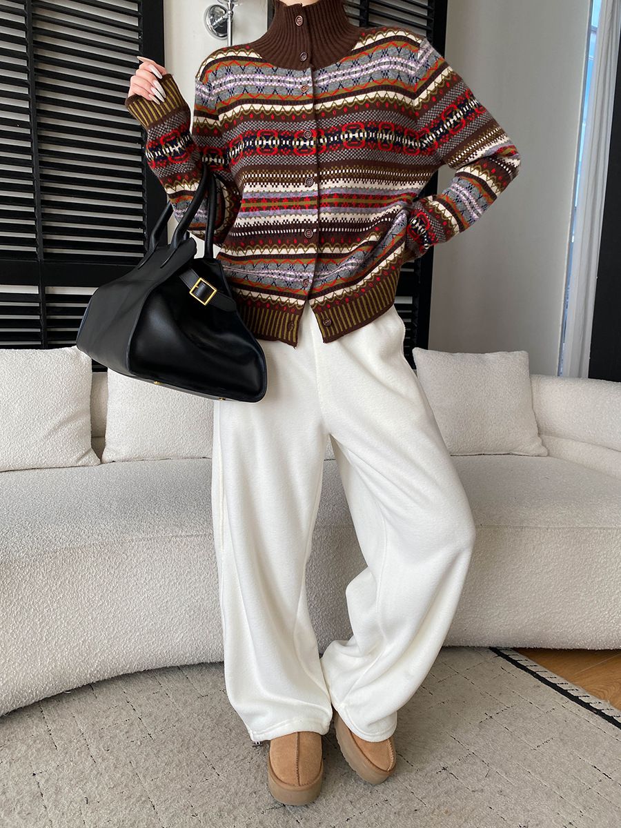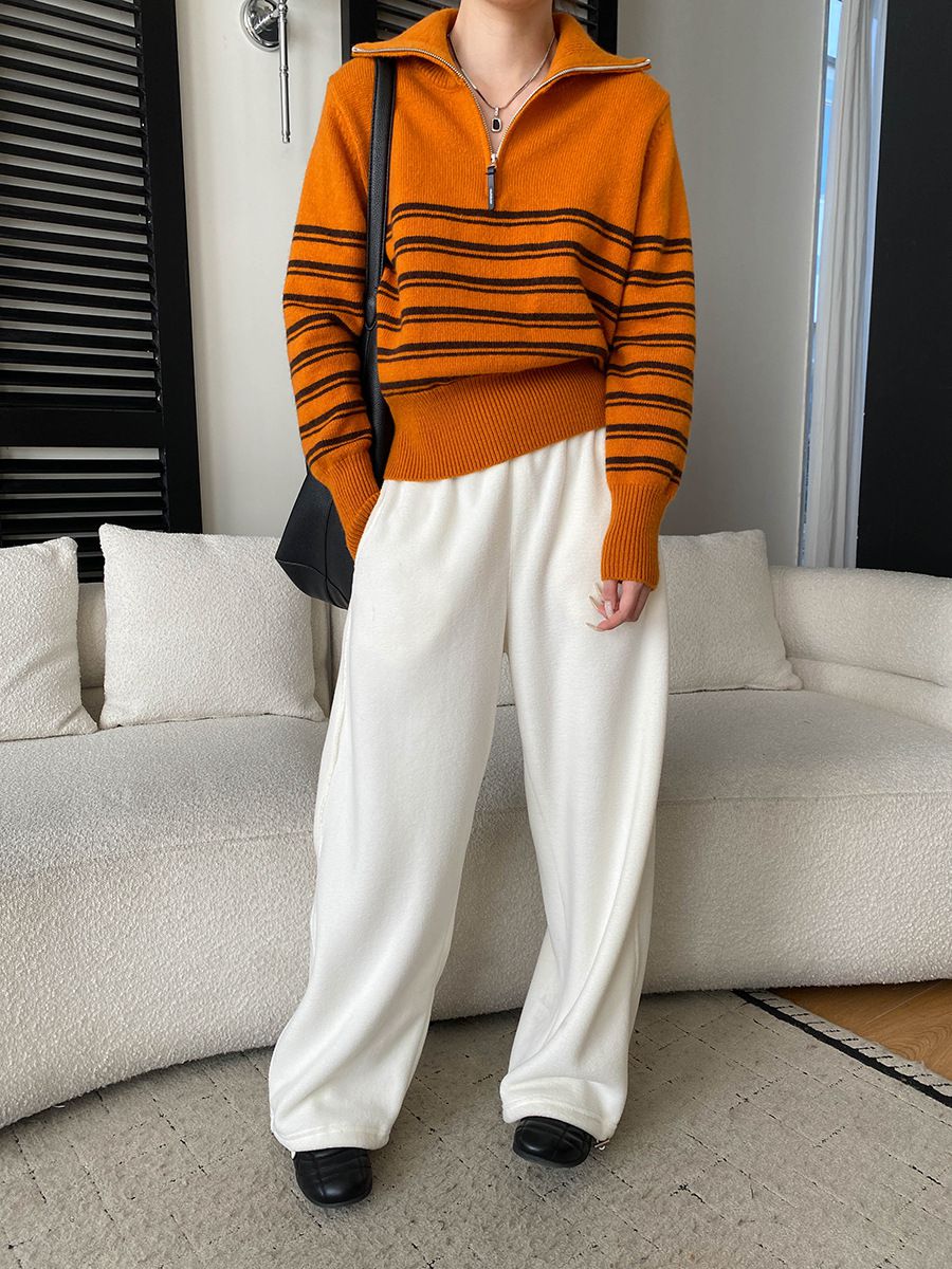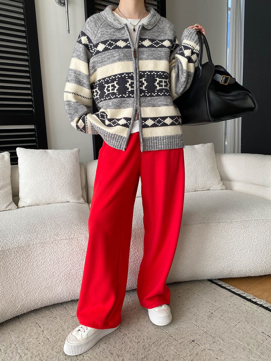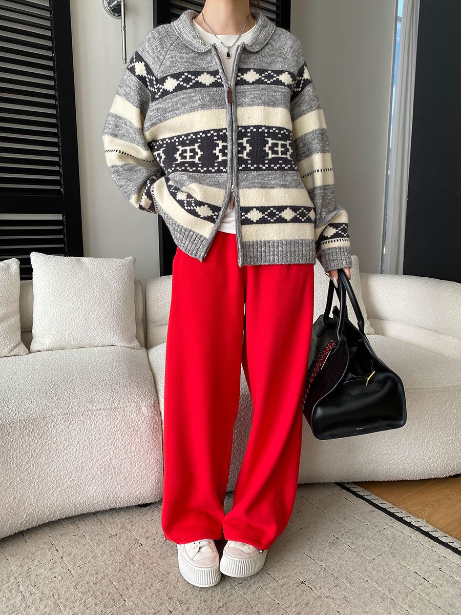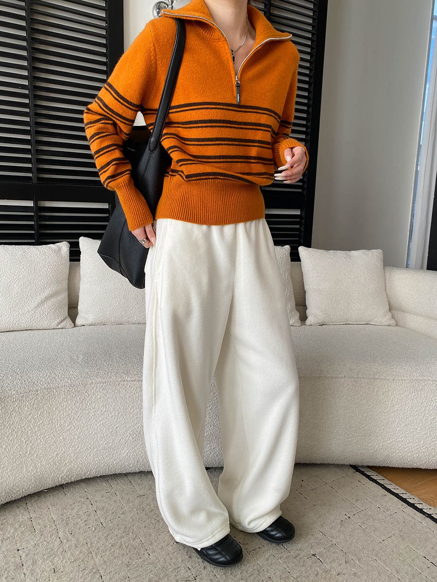 兩種尺寸/厚磅毛呢面料/全腰鬆緊/褲頭腰內抽繩/雙口袋/抽繩束口褲腳 - 休閒居家簡約百搭素面毛呢寬褲束口長褲多尺寸ML奶白色薄荷色紅色灰色軍綠色