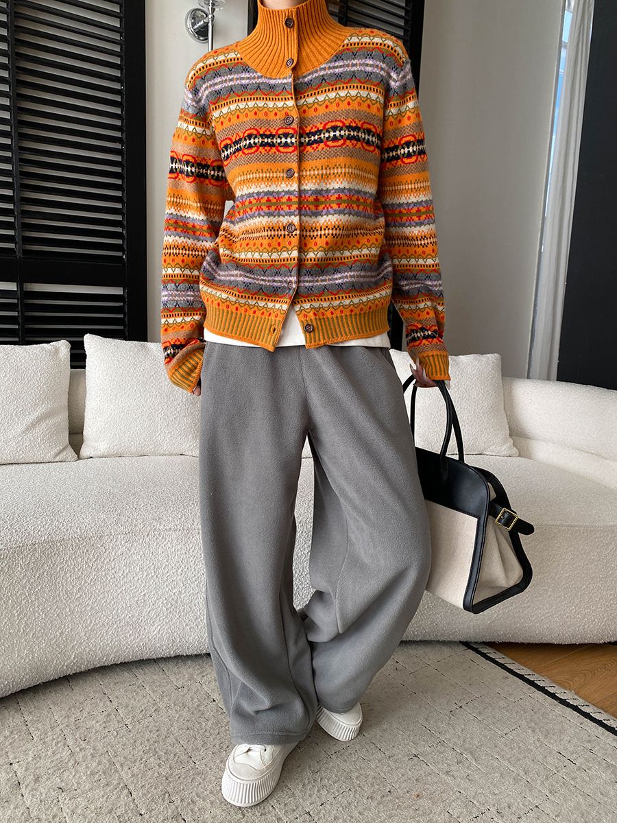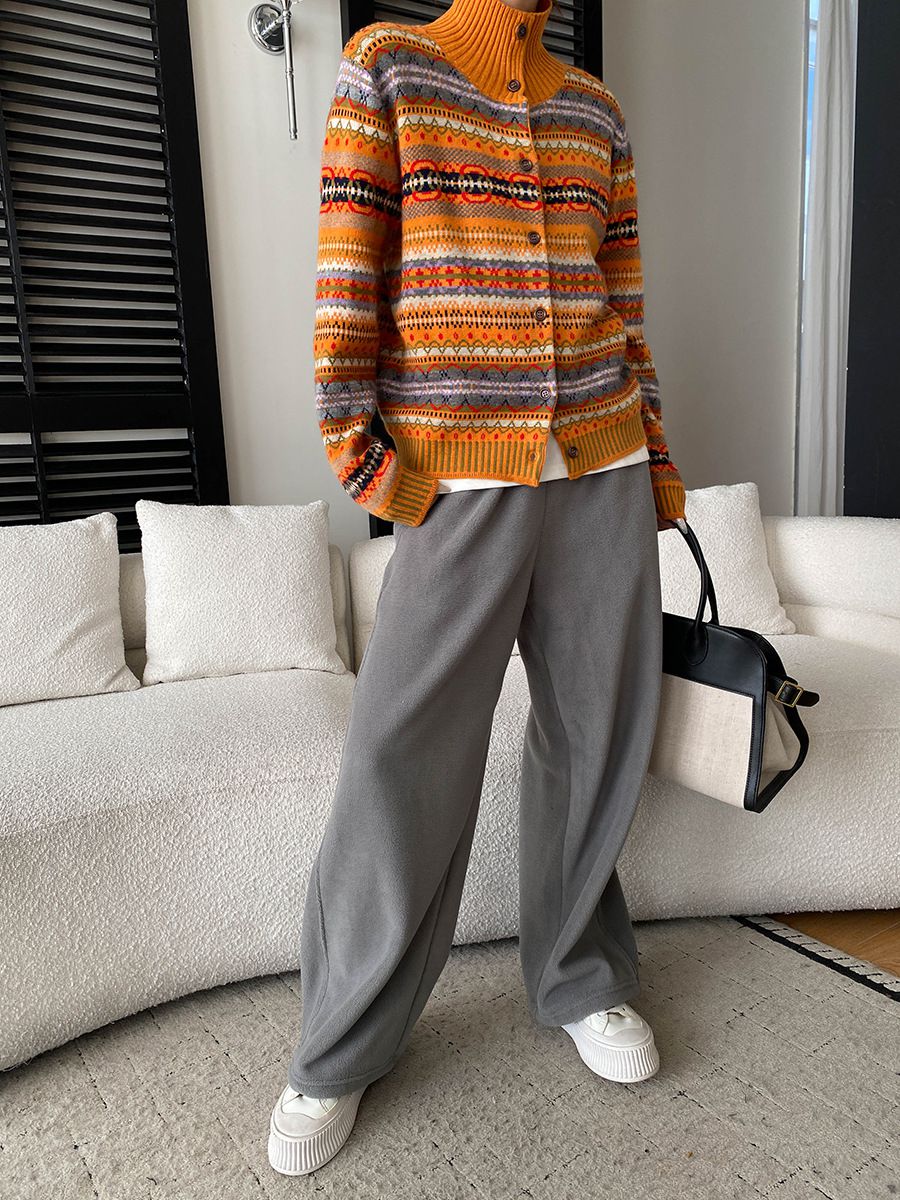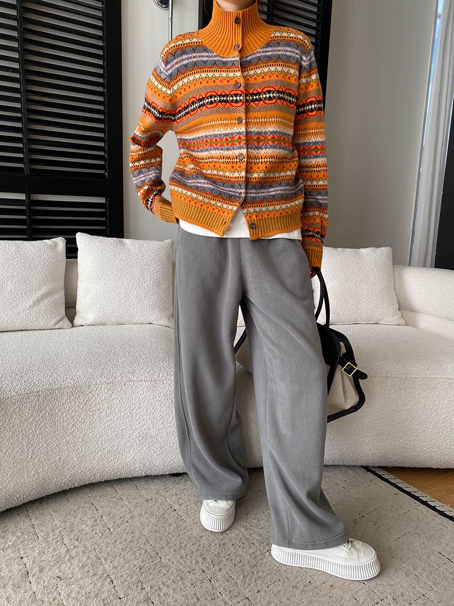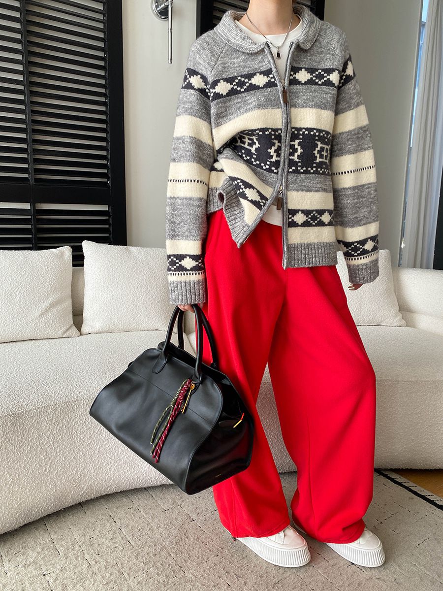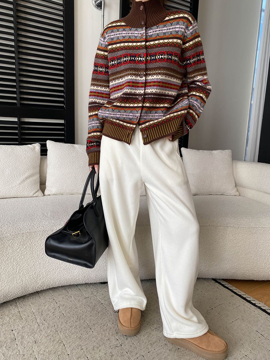 兩種尺寸/厚磅毛呢面料/全腰鬆緊/褲頭腰內抽繩/雙口袋/抽繩束口褲腳 - 休閒居家簡約百搭素面毛呢寬褲束口長褲多尺寸ML奶白色薄荷色紅色灰色軍綠色