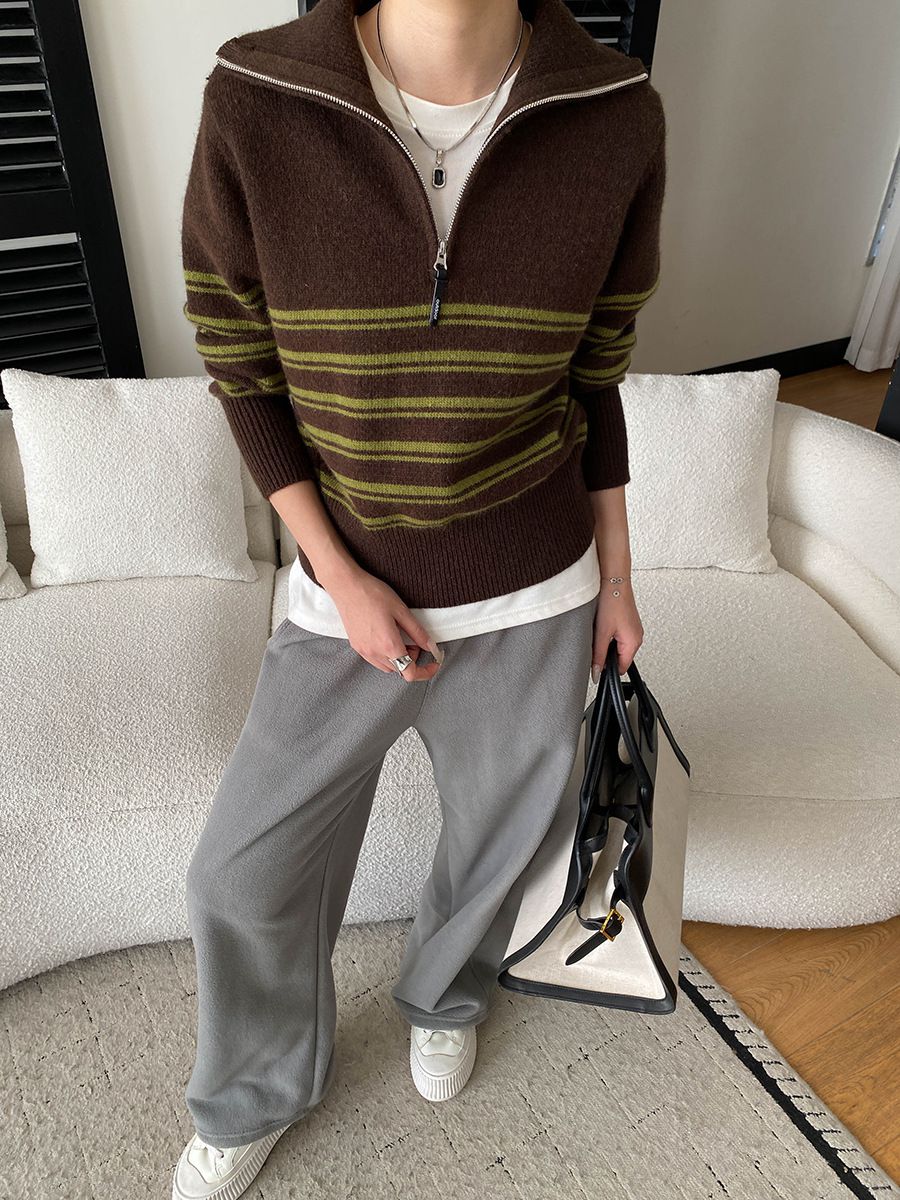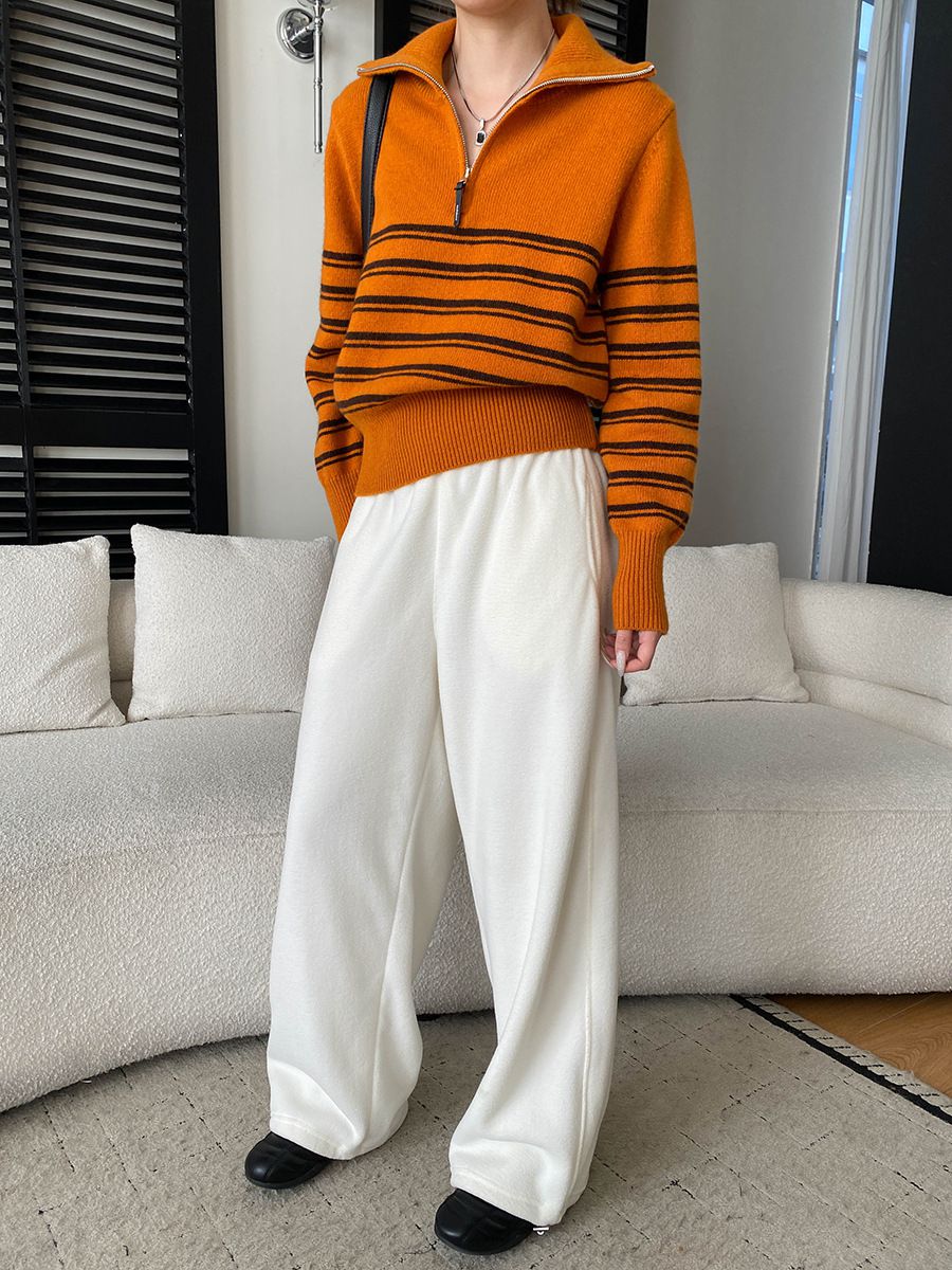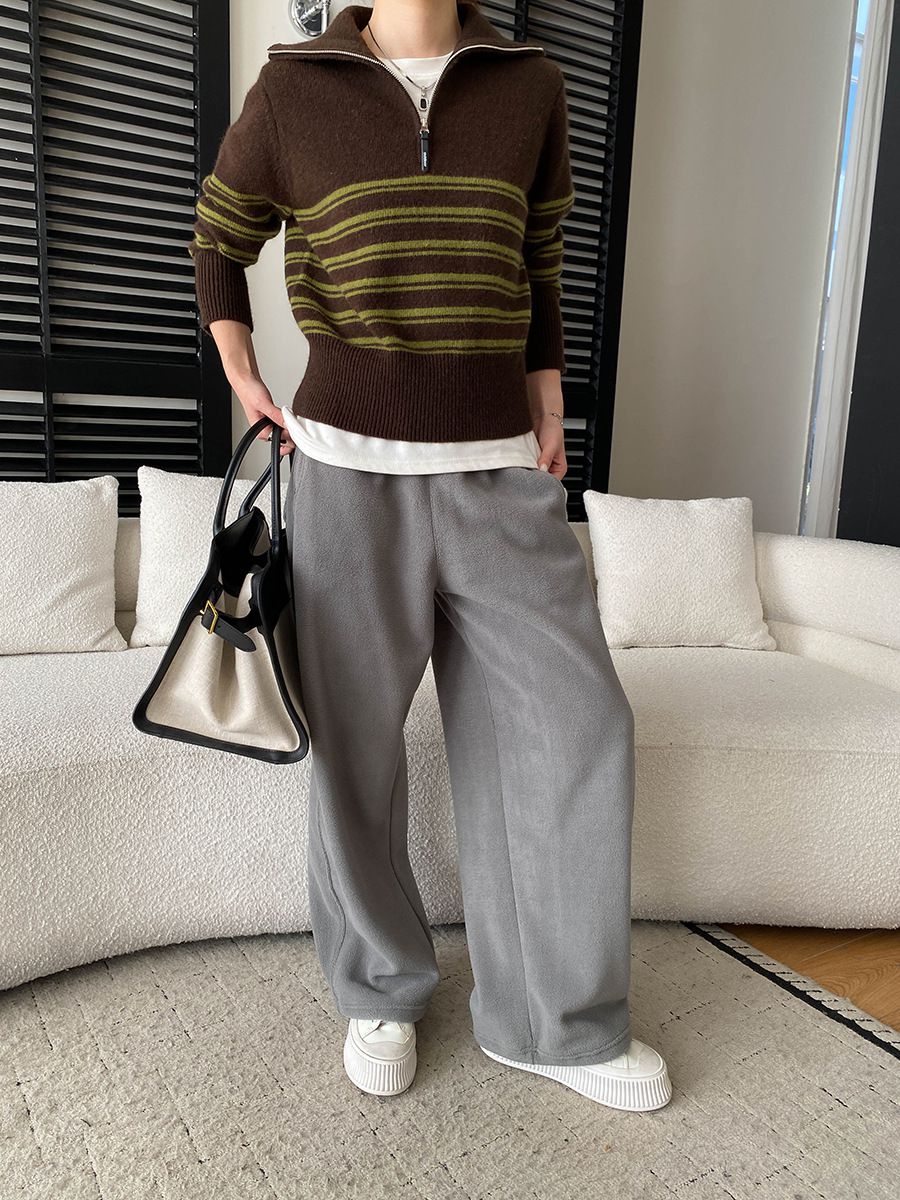 【C60069】品牌 素面毛呢寬褲-褲頭腰內抽繩雙口袋束口褲腳長褲