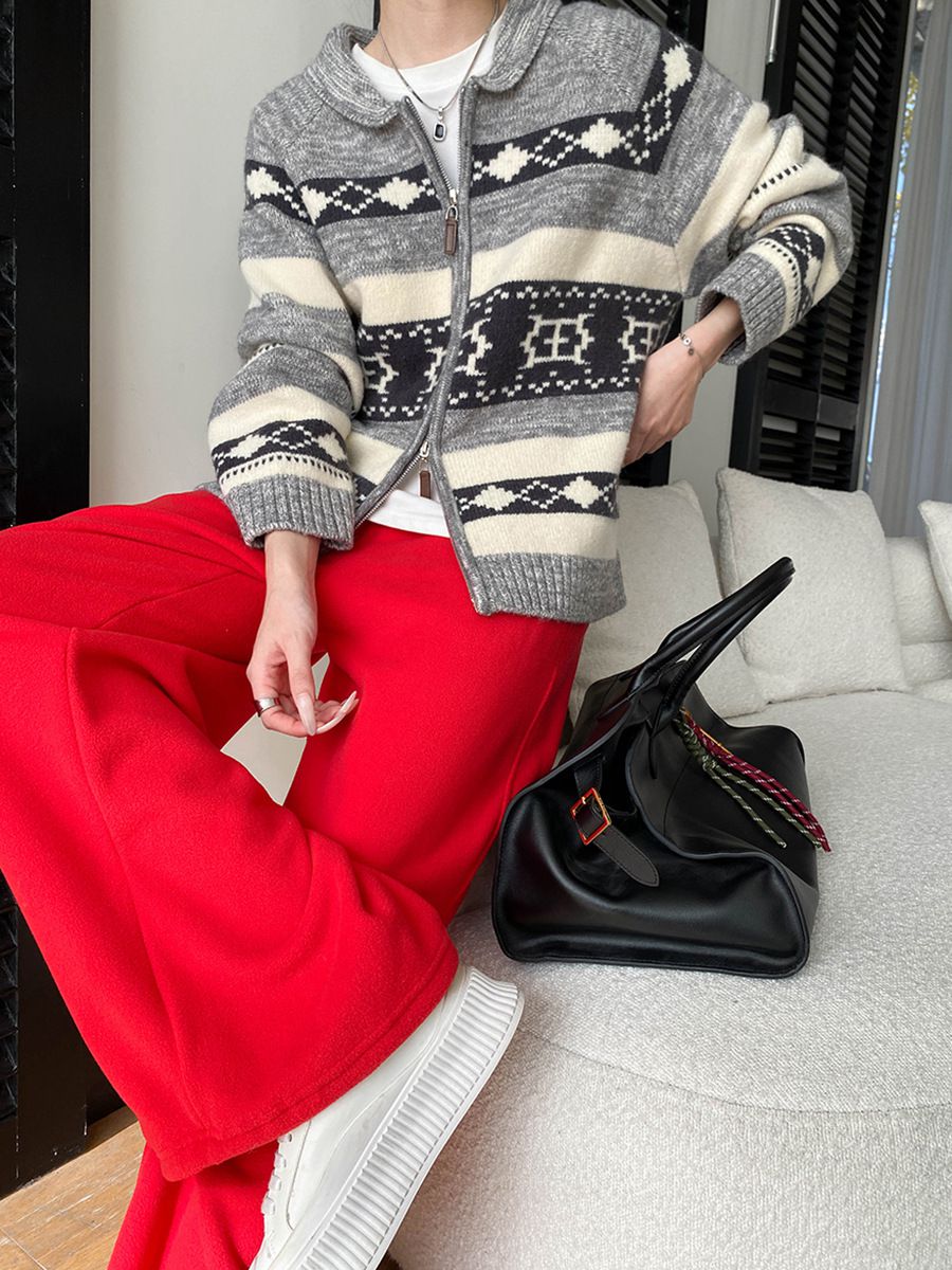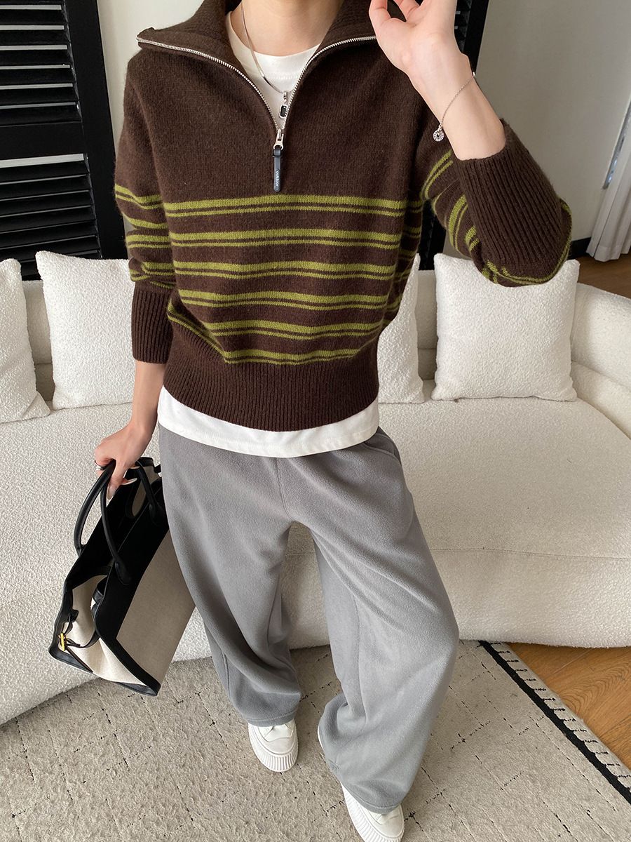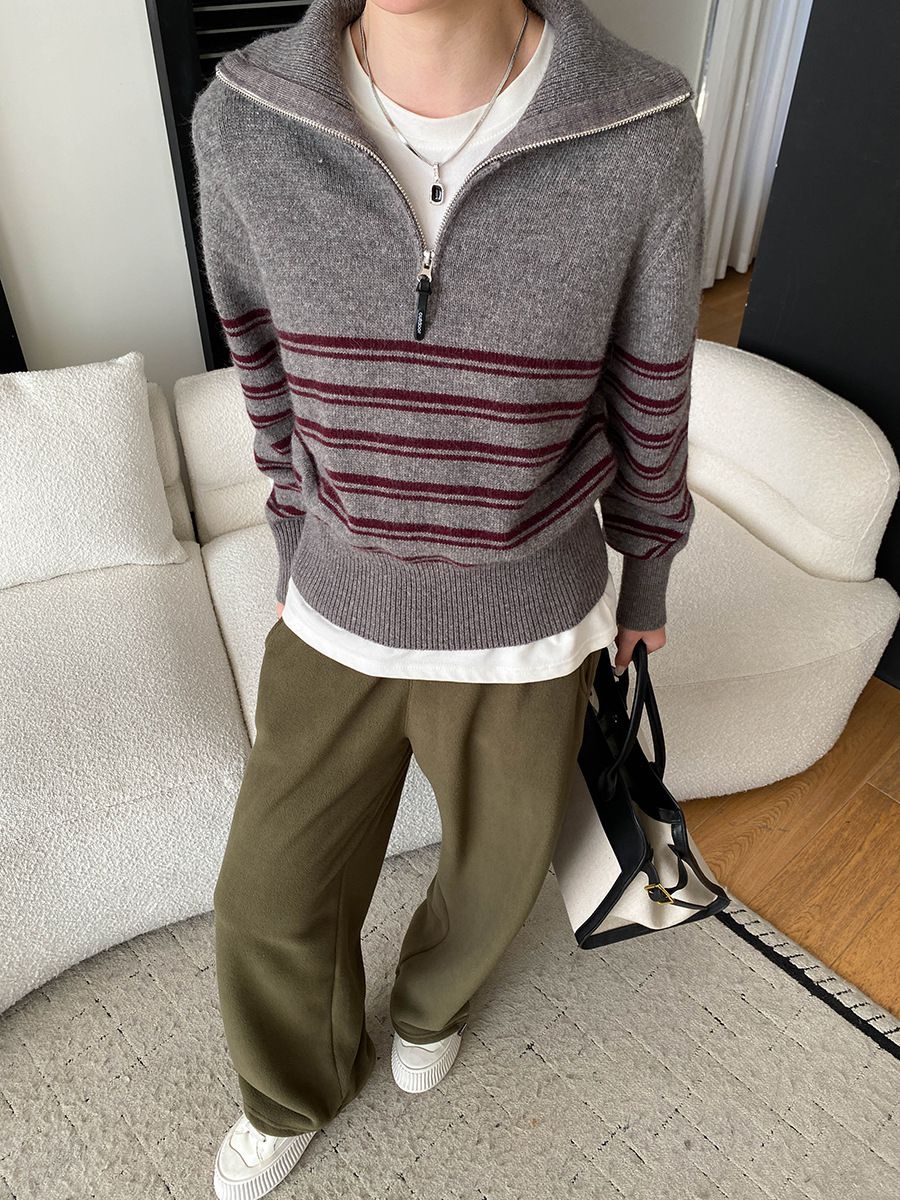 【C60069】品牌 素面毛呢寬褲-褲頭腰內抽繩雙口袋束口褲腳長褲