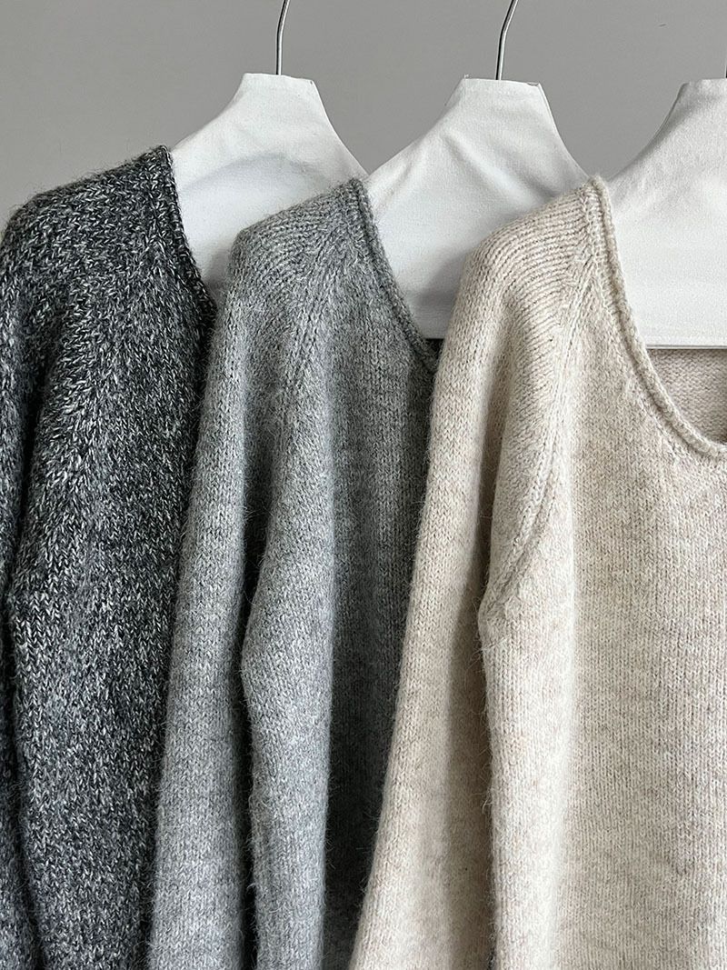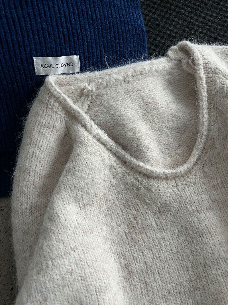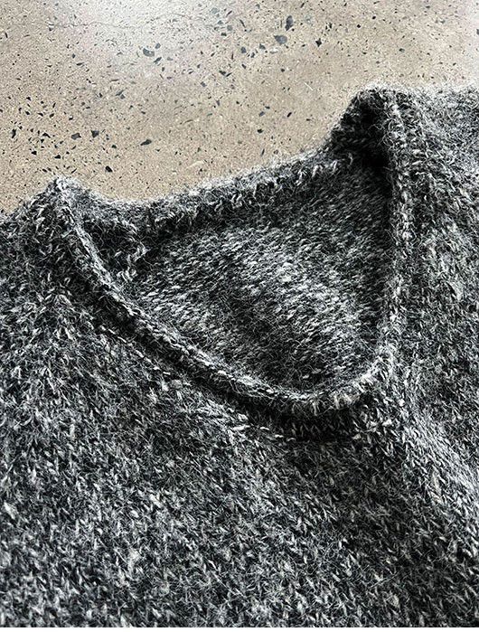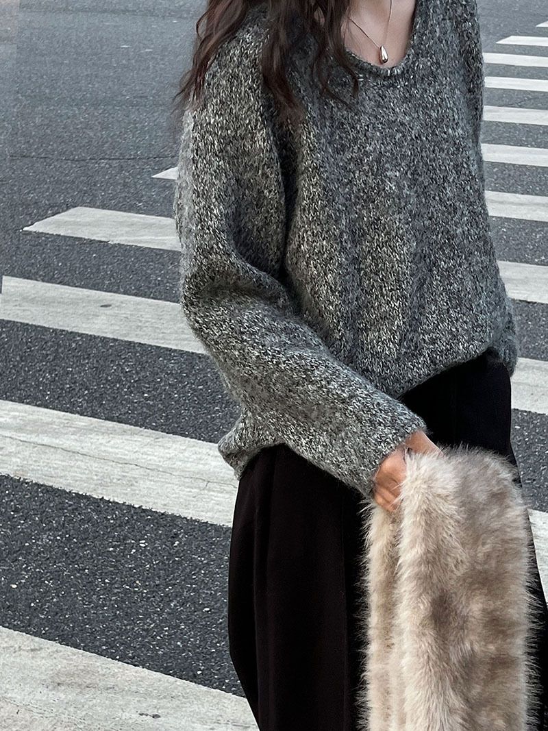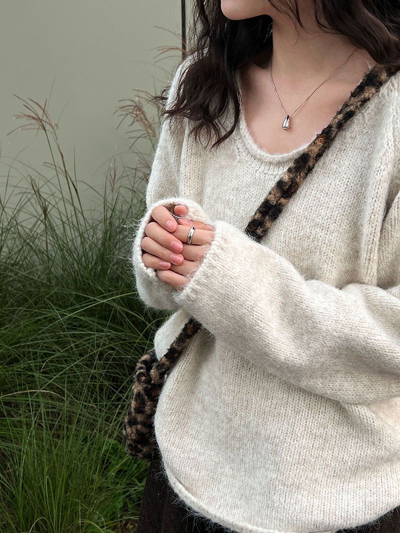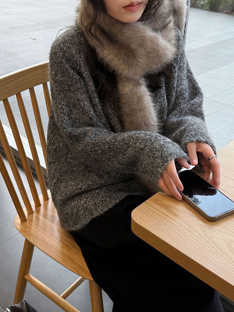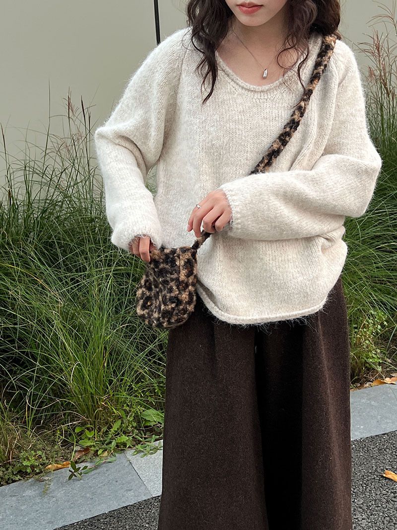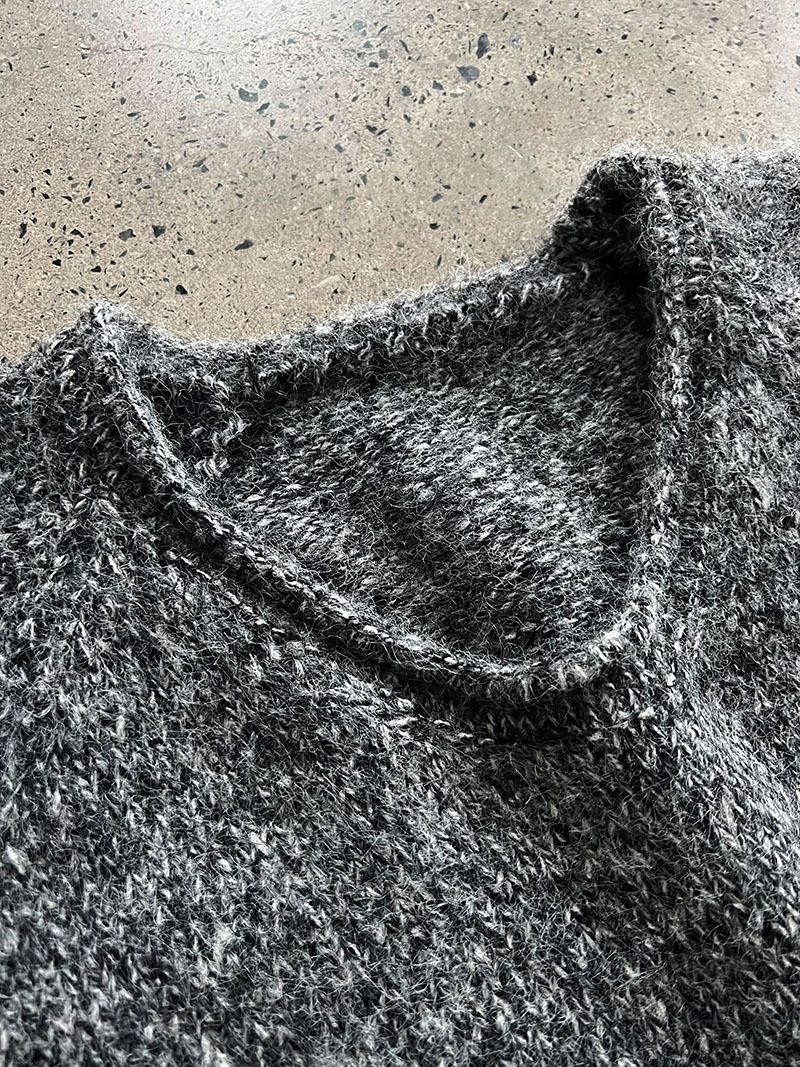 慵懶毛衣/鉤針編織/V領U領/連肩袖/混羊毛上衣/寬鬆版型 - 休閒居家簡約百搭素面混羊毛V領上衣寬鬆大尺碼上衣長袖上衣針織衫針織上衣米色淺灰色深灰色