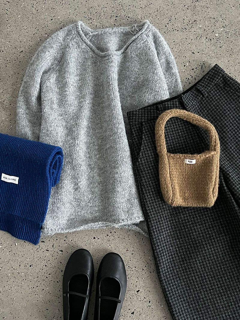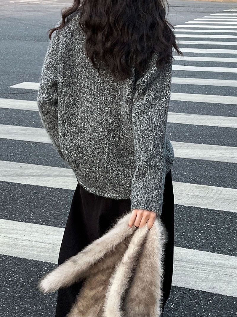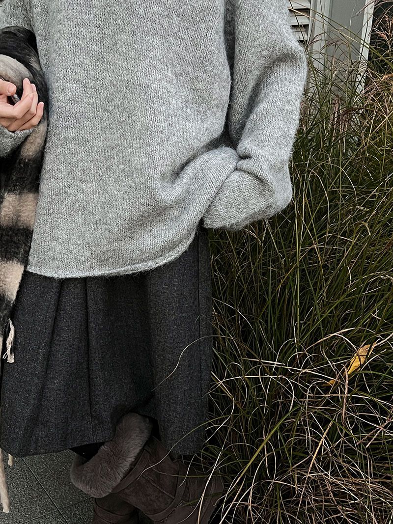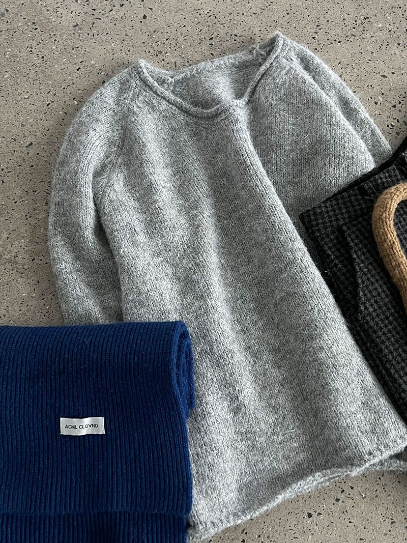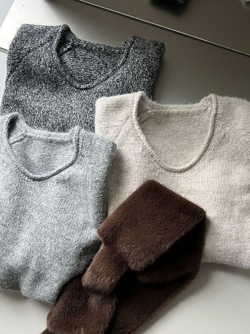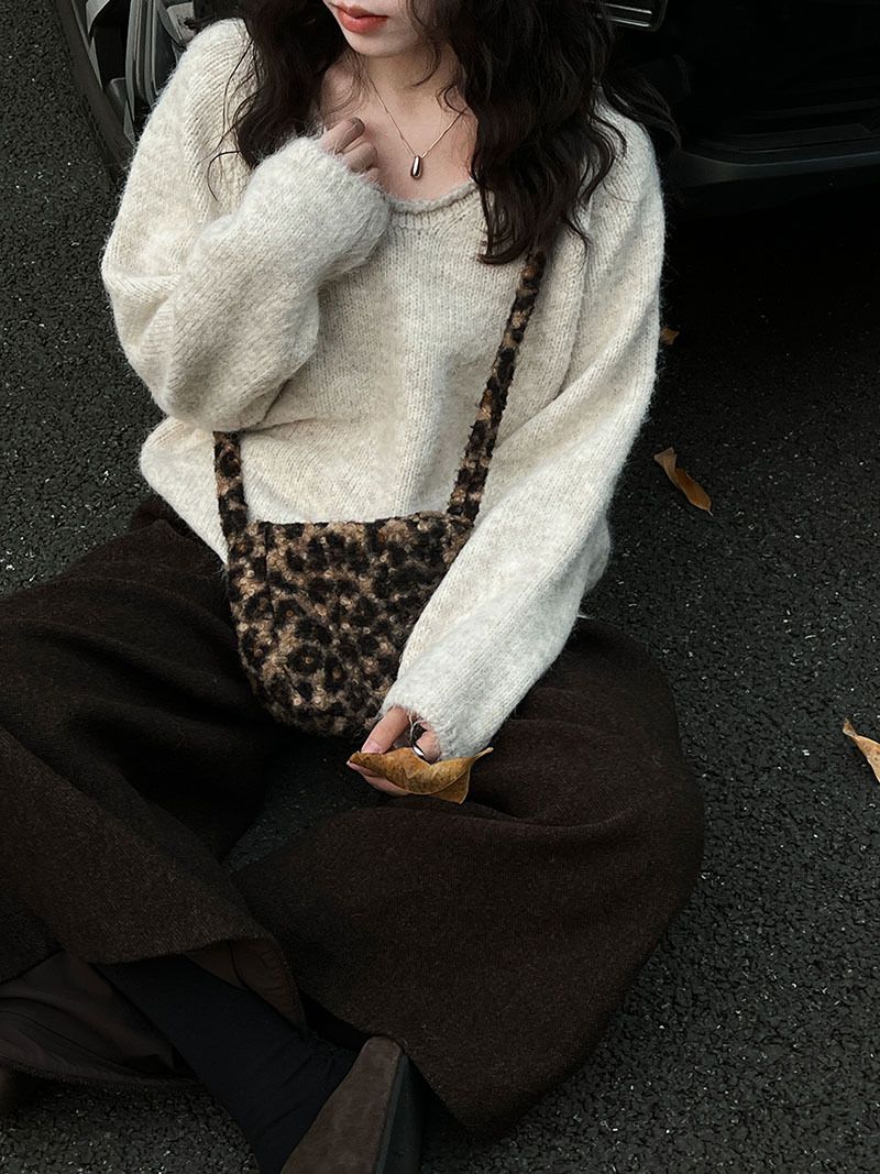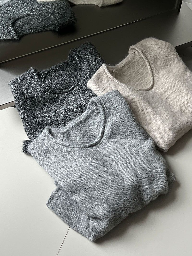 慵懶毛衣/鉤針編織/V領U領/連肩袖/混羊毛上衣/寬鬆版型 - 休閒居家簡約百搭素面混羊毛V領上衣寬鬆大尺碼上衣長袖上衣針織衫針織上衣米色淺灰色深灰色