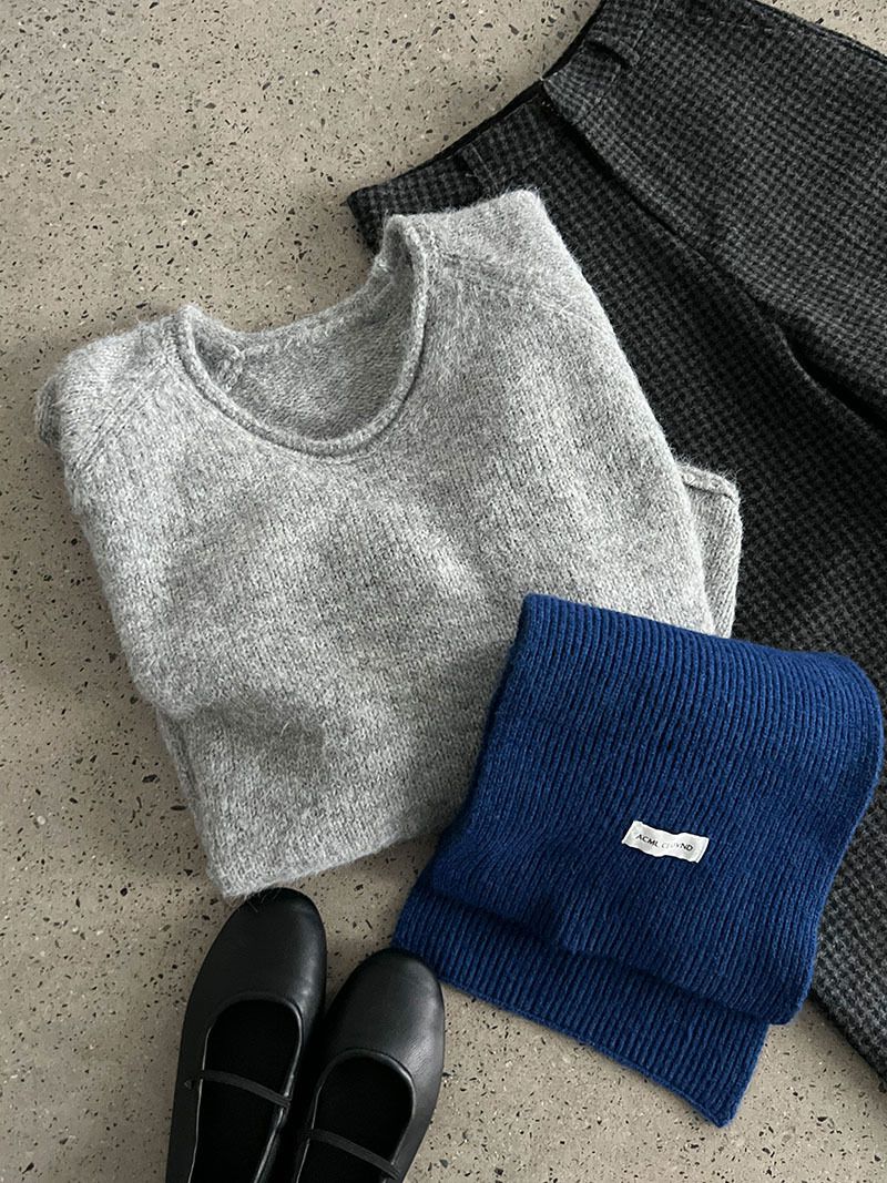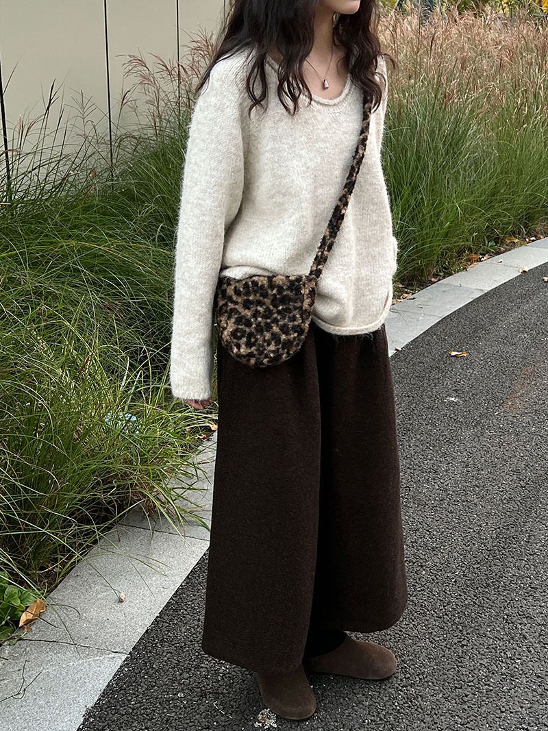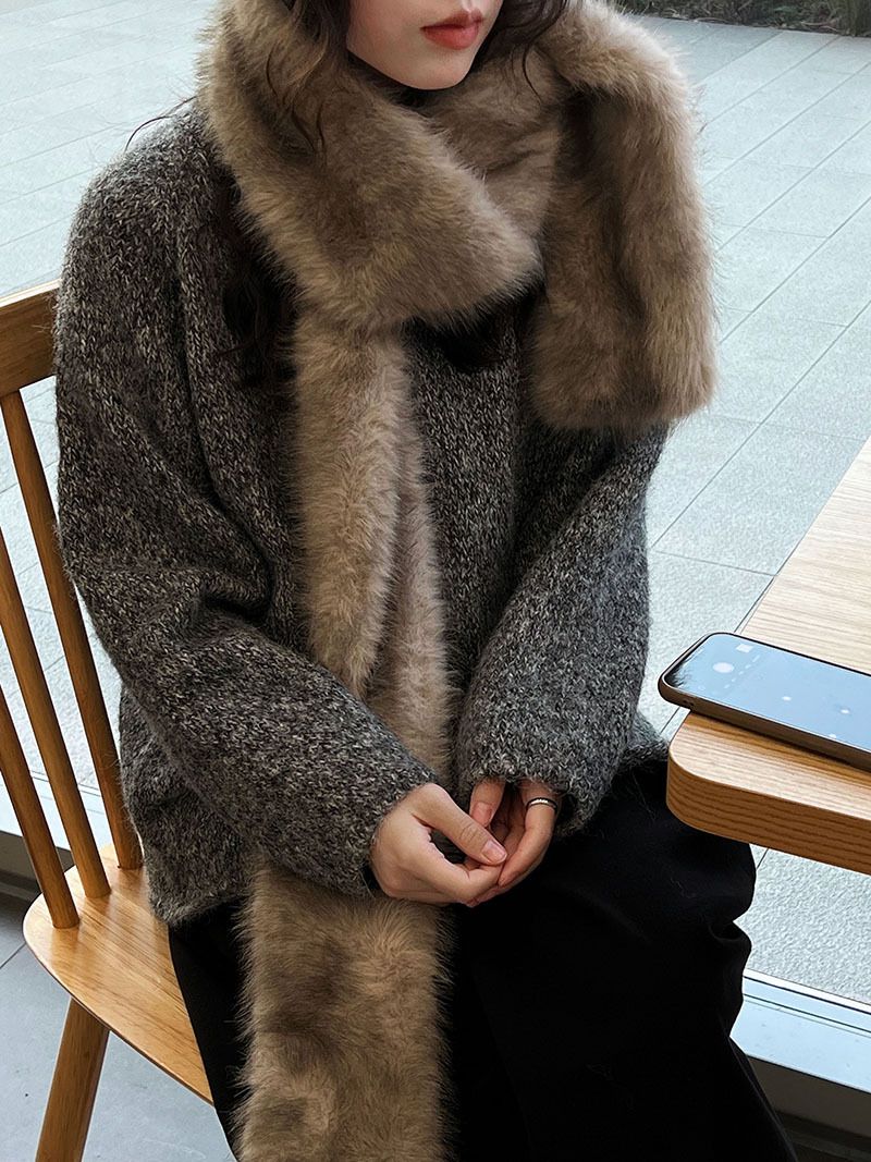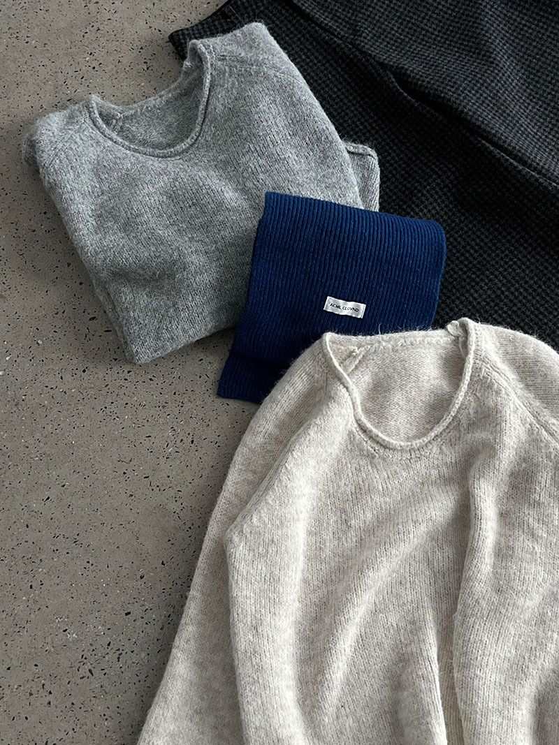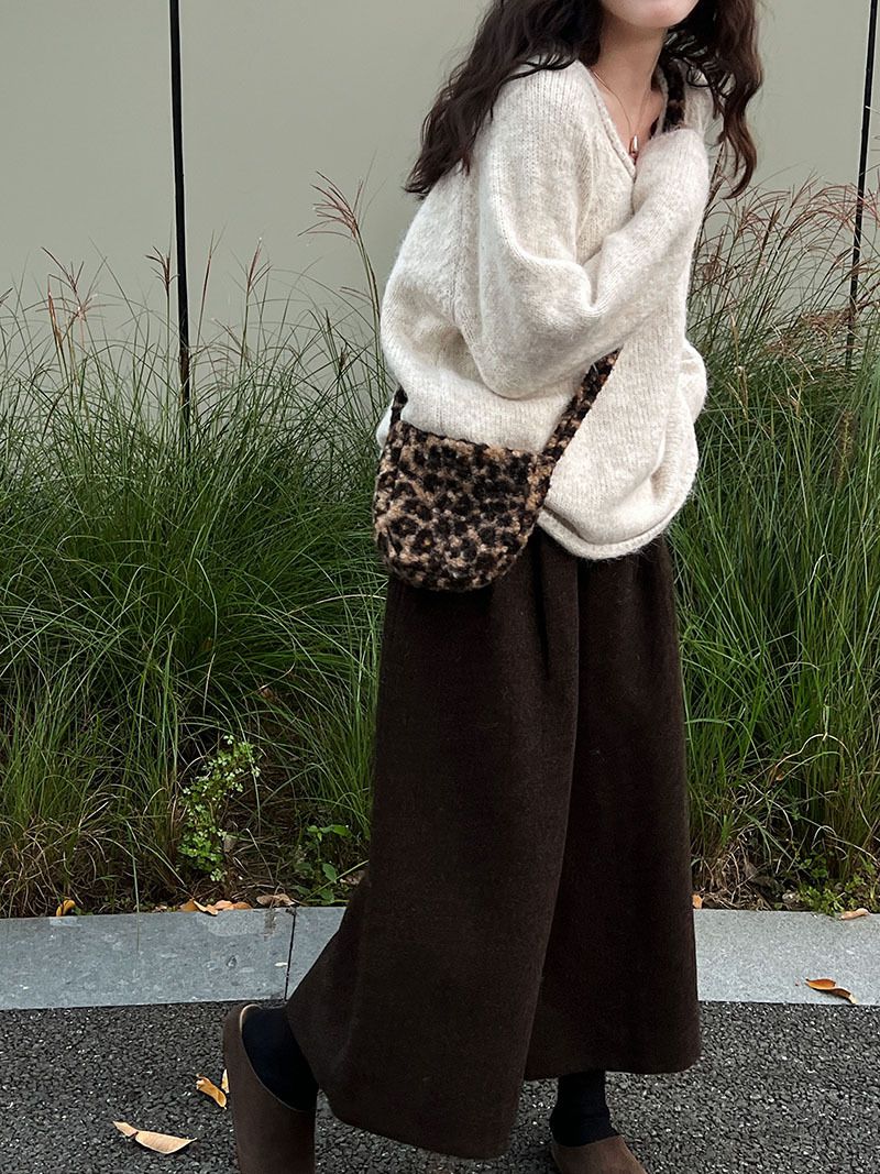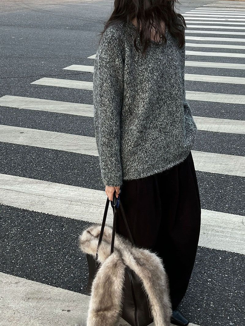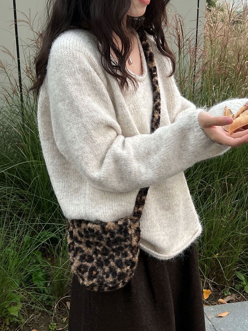 慵懶毛衣/鉤針編織/V領U領/連肩袖/混羊毛上衣/寬鬆版型 - 休閒居家簡約百搭素面混羊毛V領上衣寬鬆大尺碼上衣長袖上衣針織衫針織上衣米色淺灰色深灰色