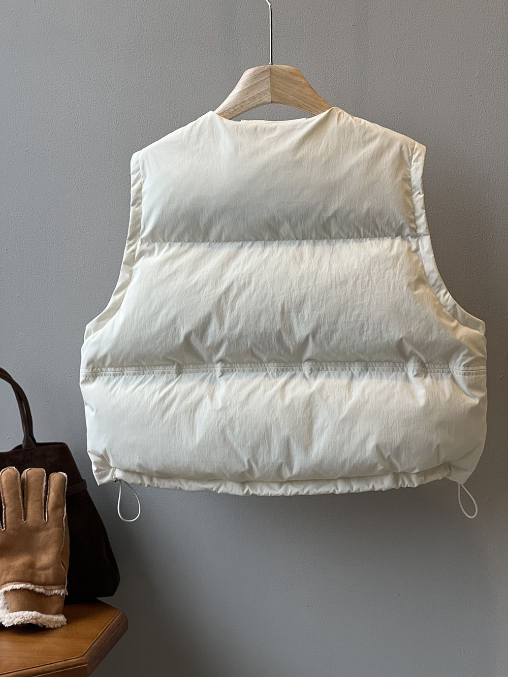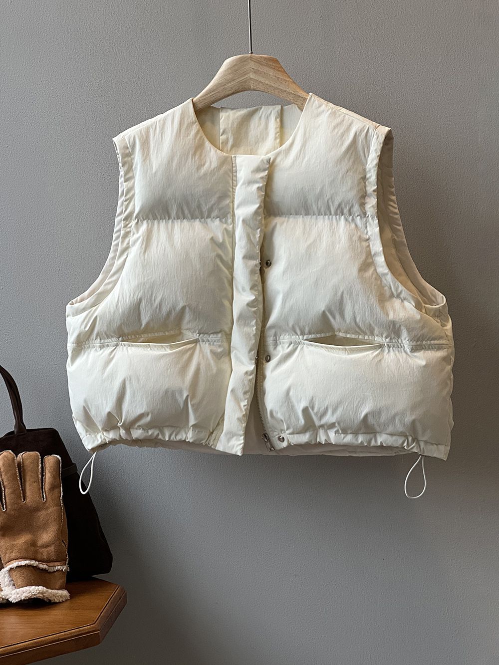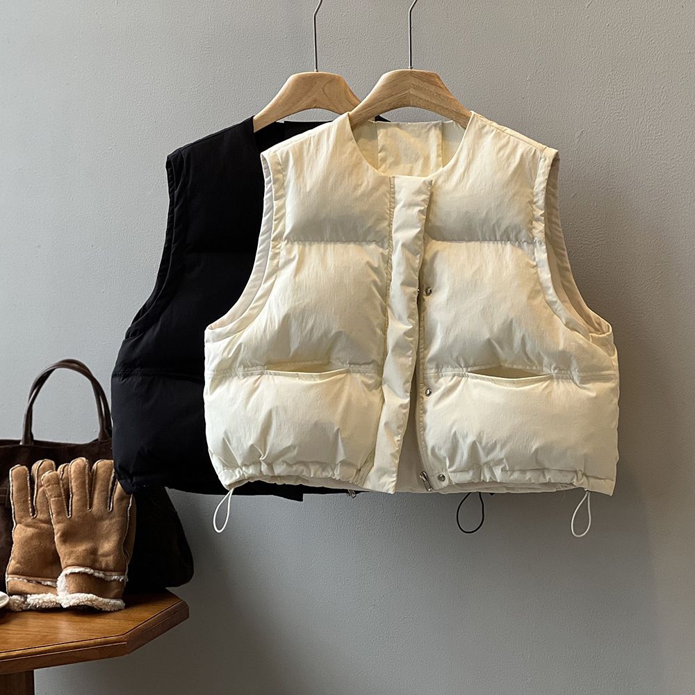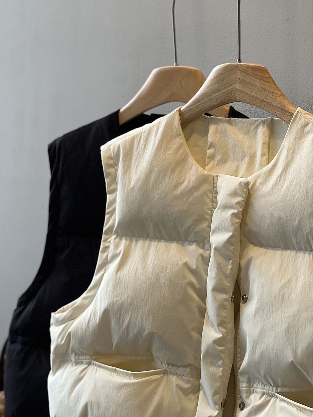 兩種尺寸/鋪棉外套/U領/下襬抽繩收腰/切線雙口袋/麵包背心 - 休閒居家簡約百搭素面鋪棉背心外套無袖背心外套夾克外套多尺寸ML黑色米白色