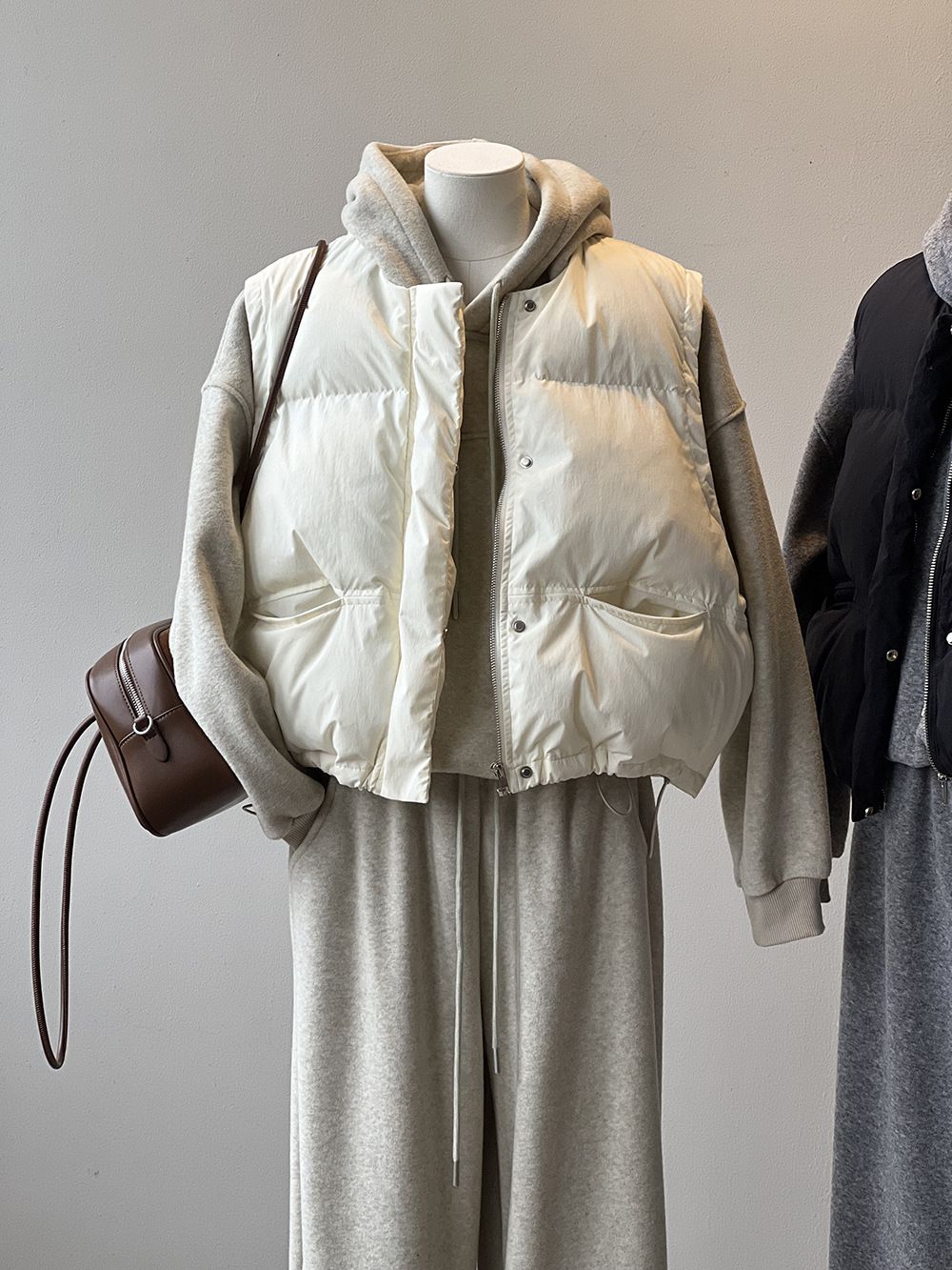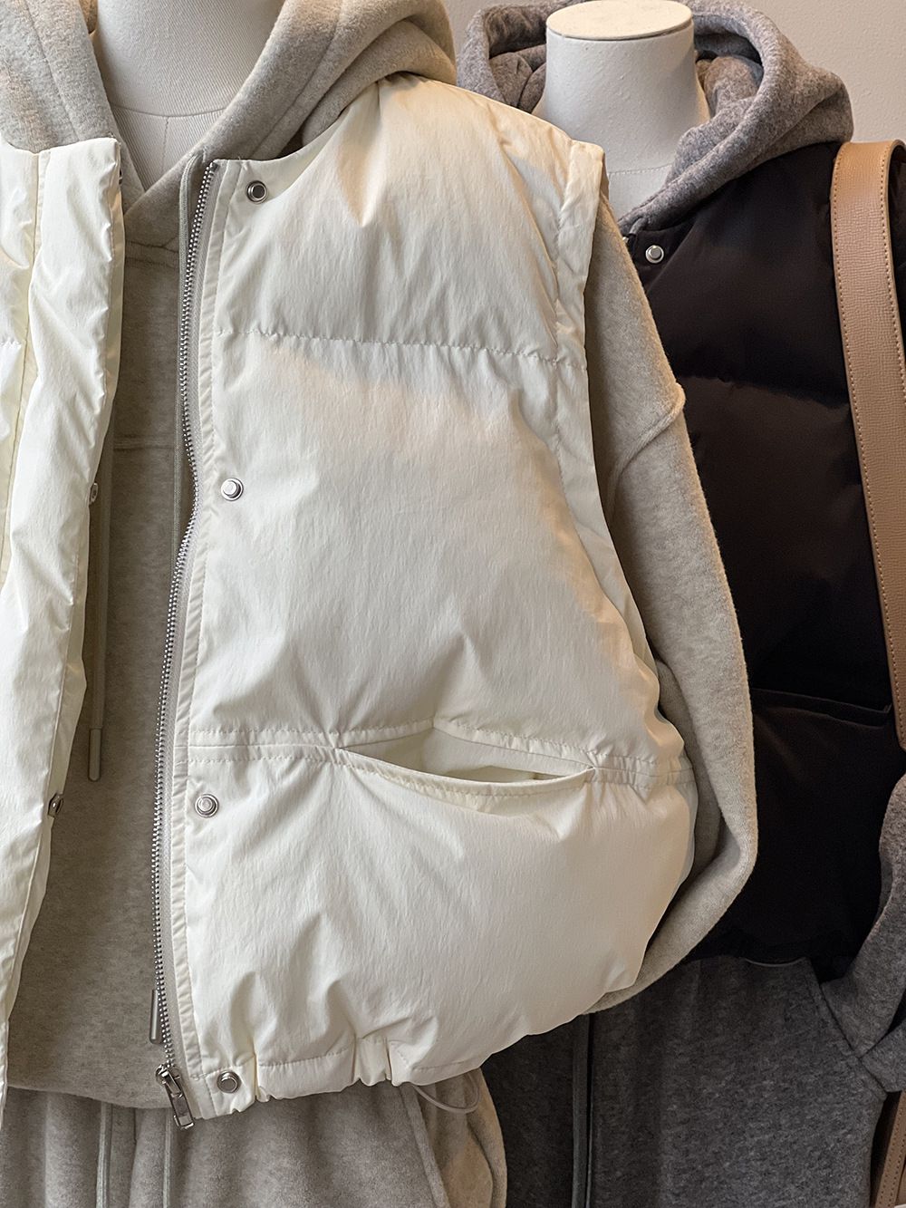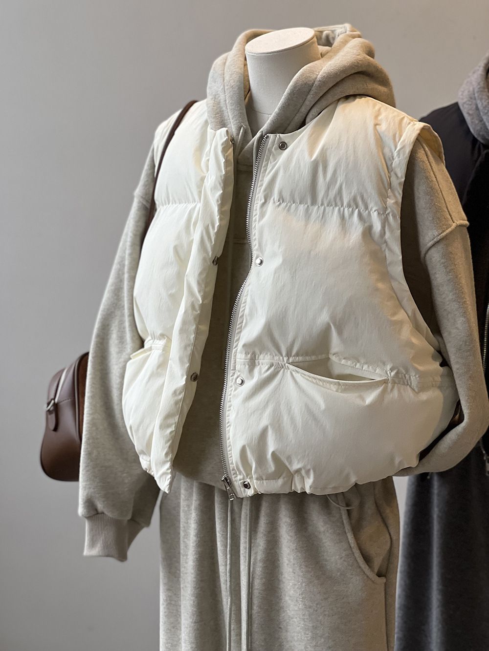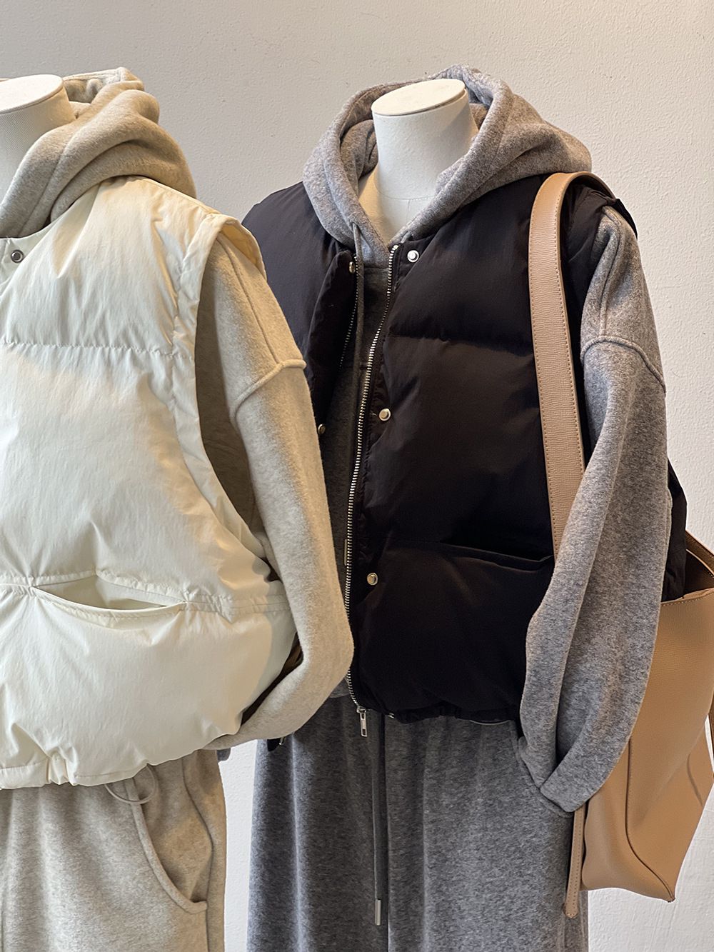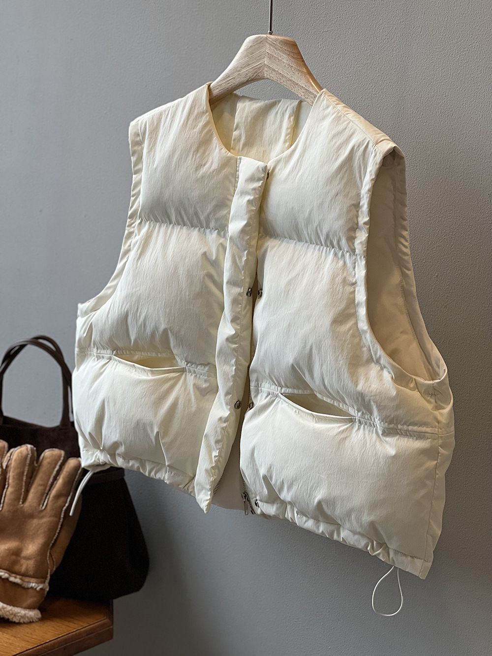兩種尺寸/鋪棉外套/U領/下襬抽繩收腰/切線雙口袋/麵包背心 - 休閒居家簡約百搭素面鋪棉背心外套無袖背心外套夾克外套多尺寸ML黑色米白色