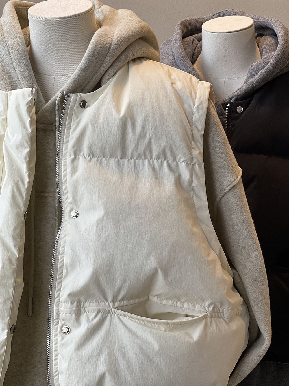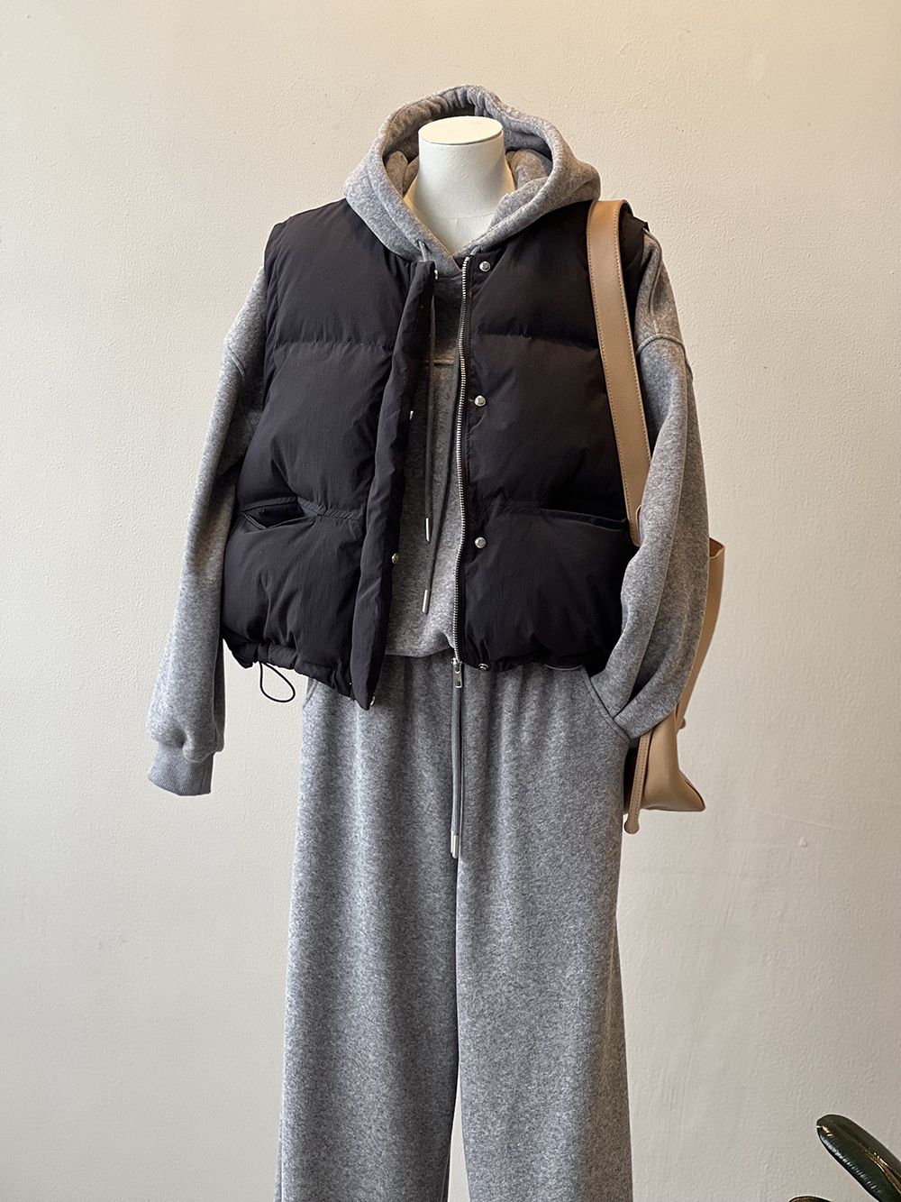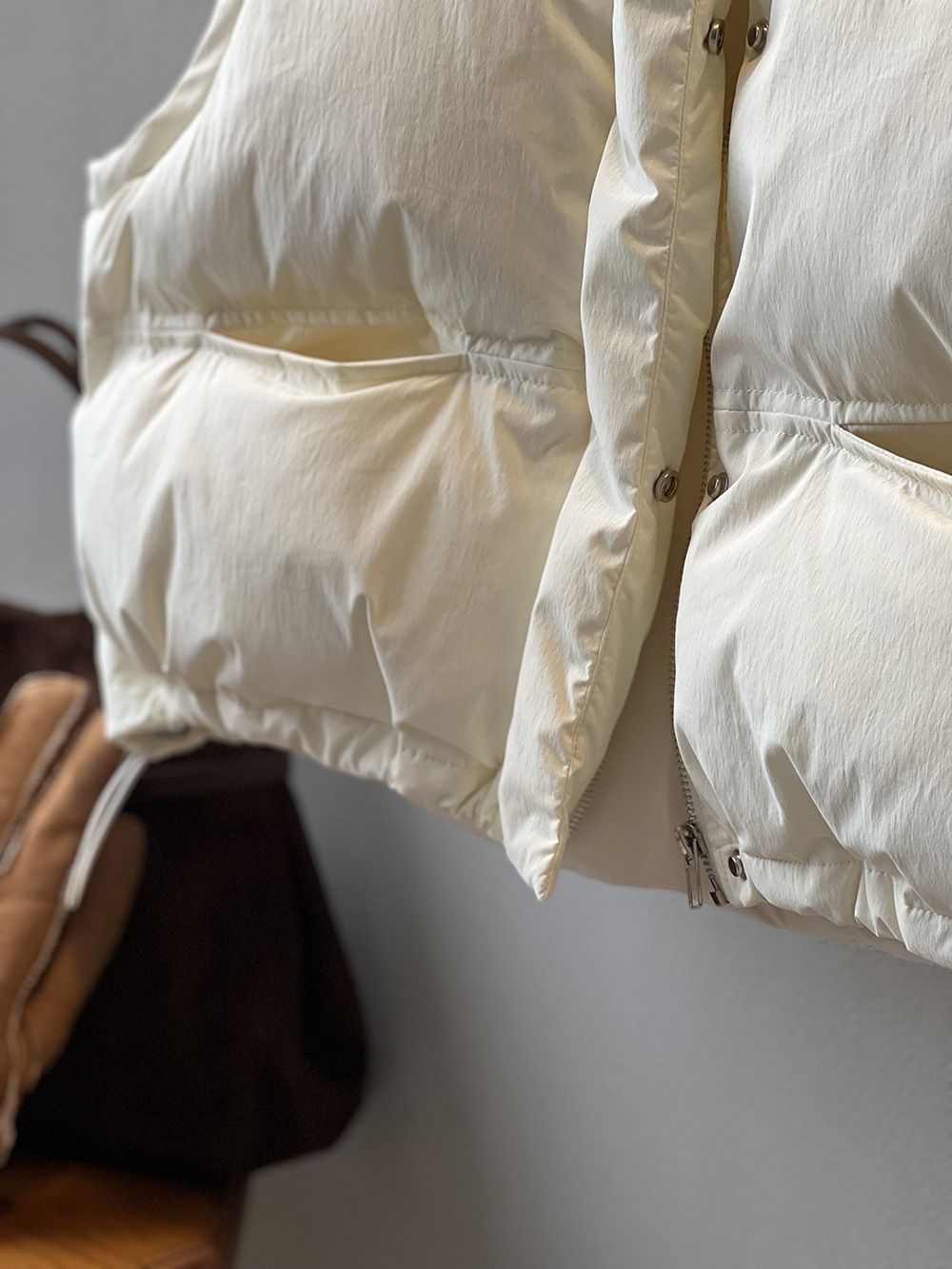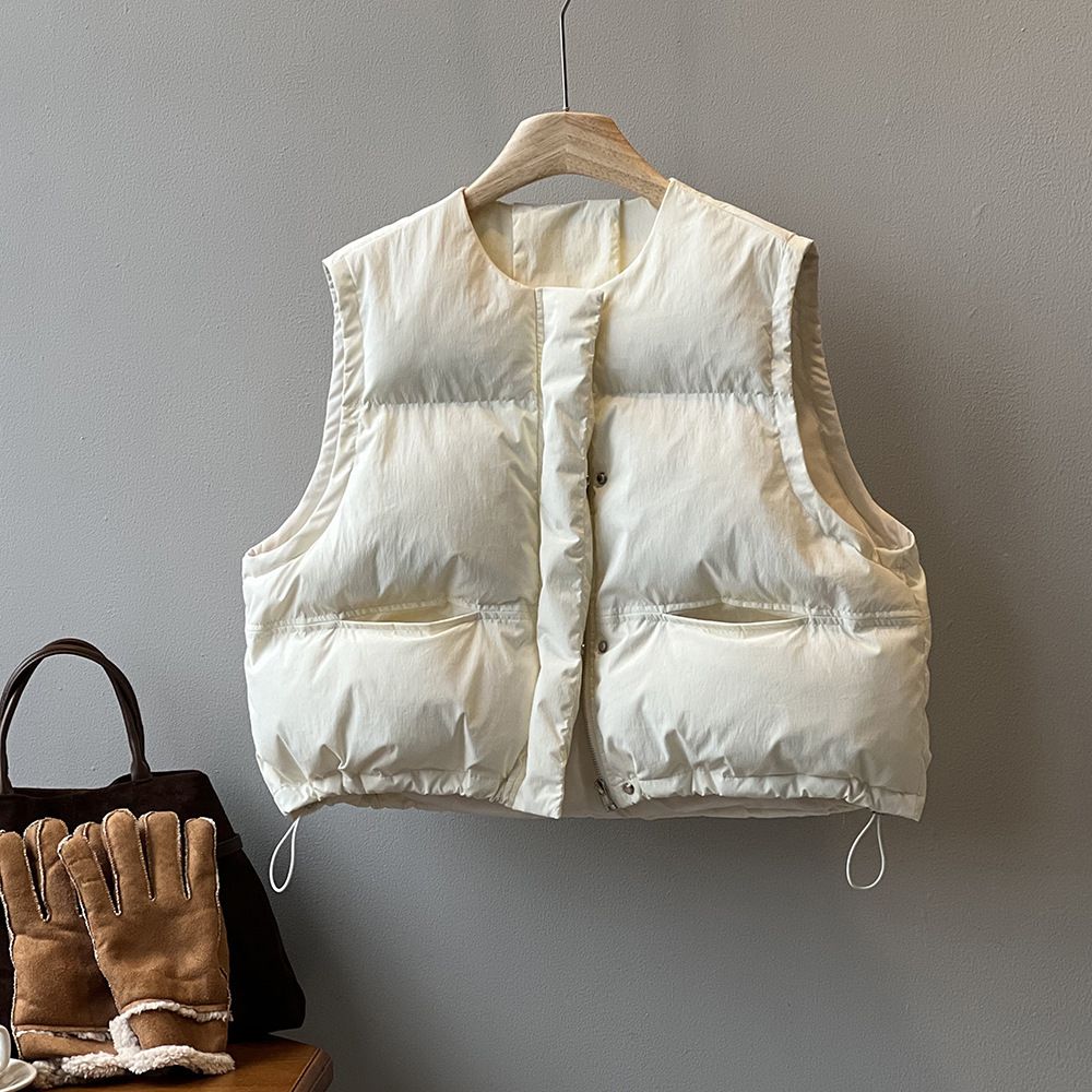 兩種尺寸/鋪棉外套/U領/下襬抽繩收腰/切線雙口袋/麵包背心 - 休閒居家簡約百搭素面鋪棉背心外套無袖背心外套夾克外套多尺寸ML黑色米白色