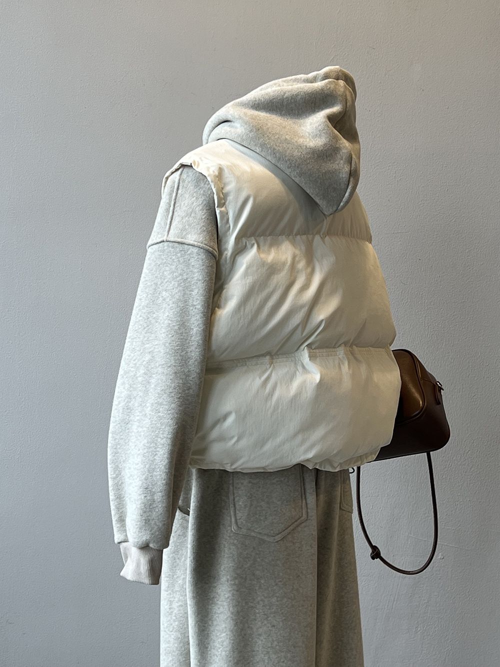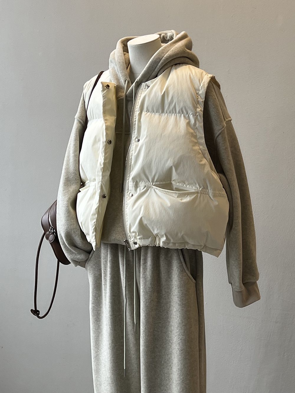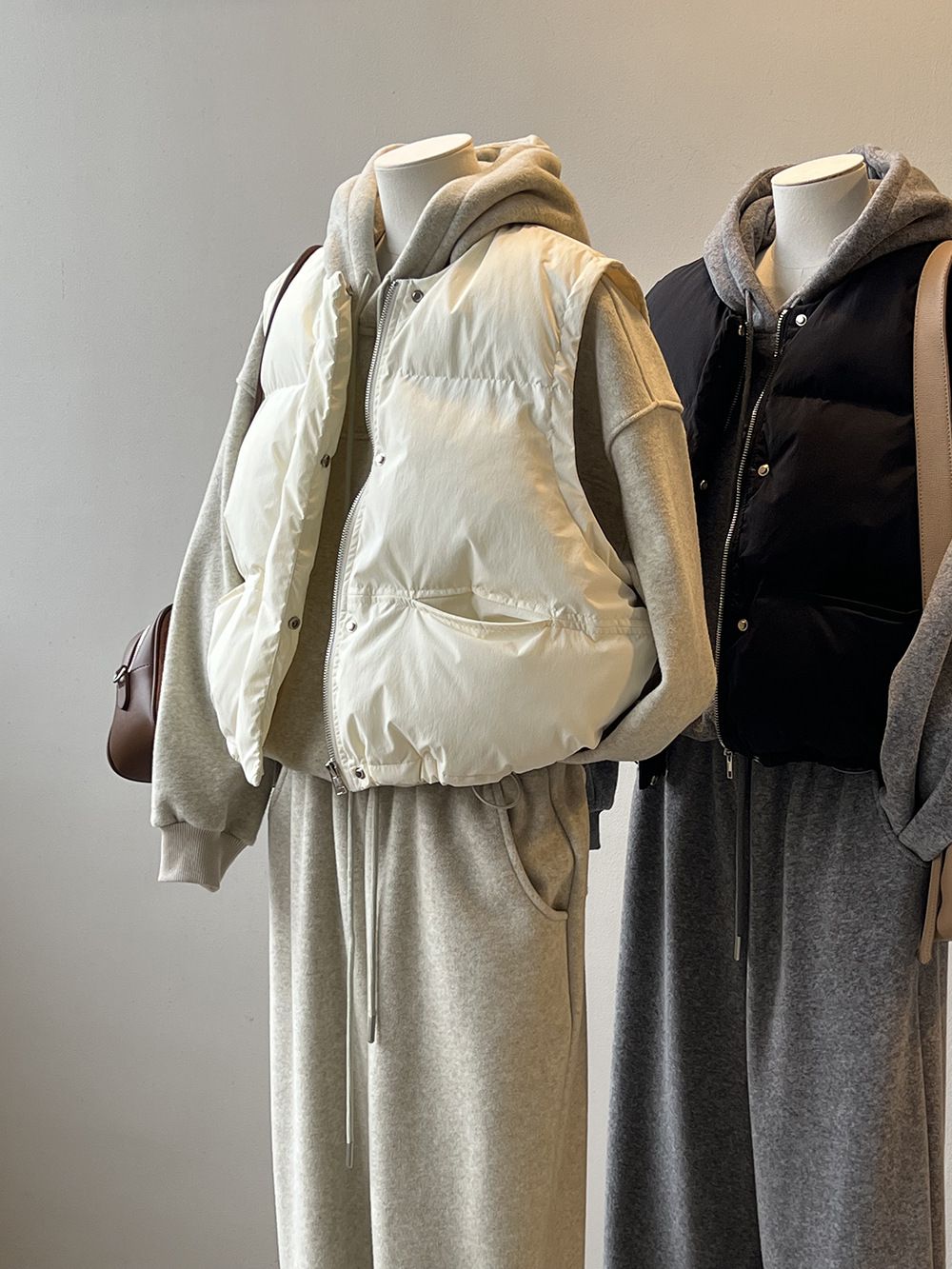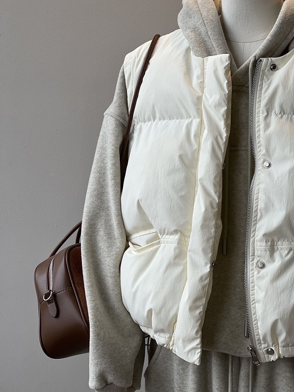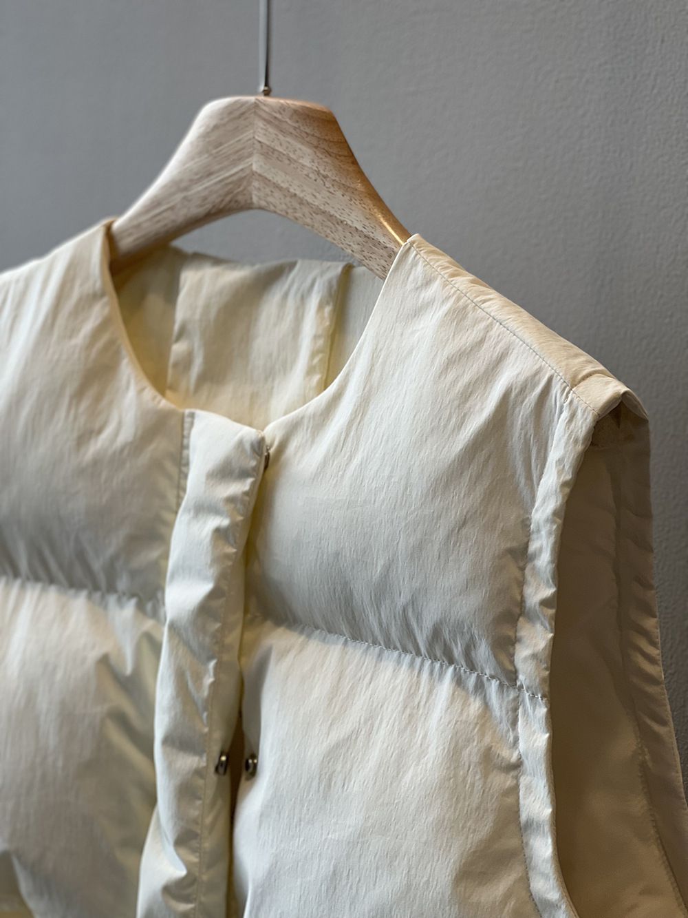兩種尺寸/鋪棉外套/U領/下襬抽繩收腰/切線雙口袋/麵包背心 - 休閒居家簡約百搭素面鋪棉背心外套無袖背心外套夾克外套多尺寸ML黑色米白色