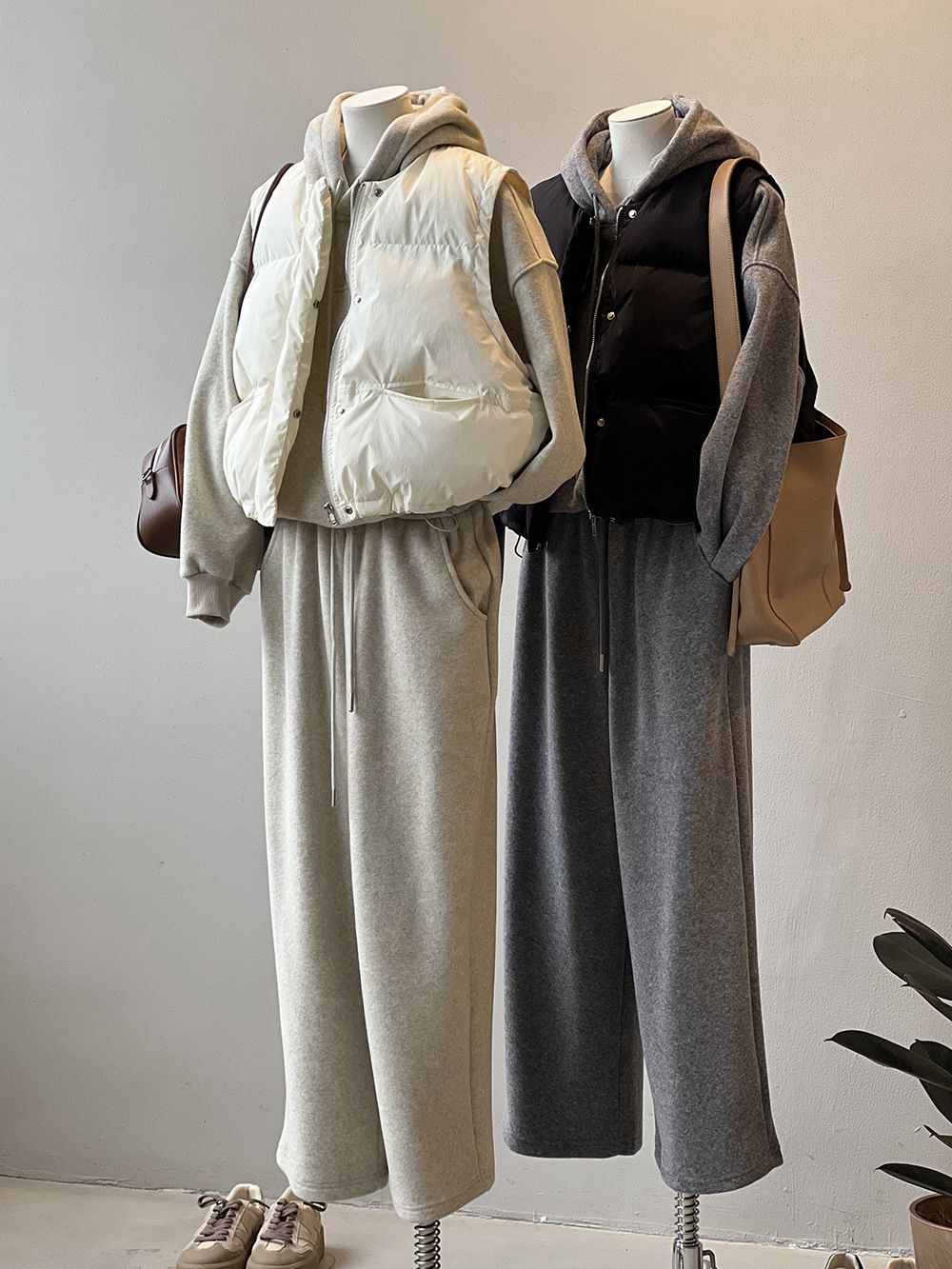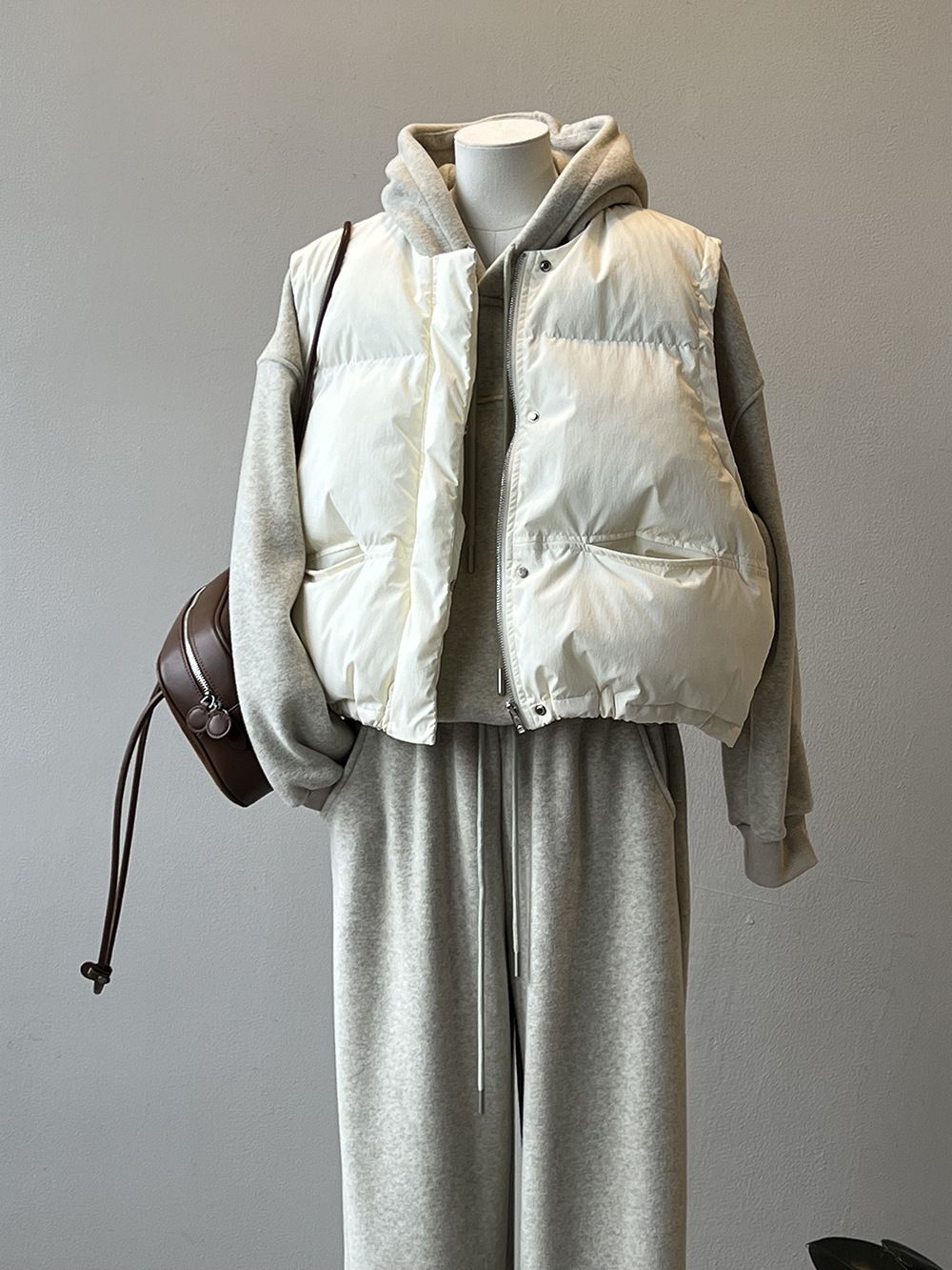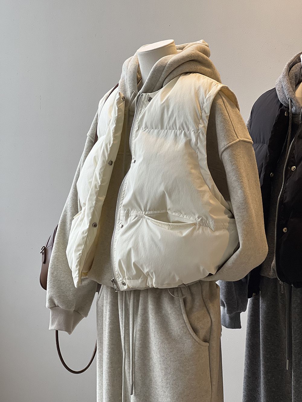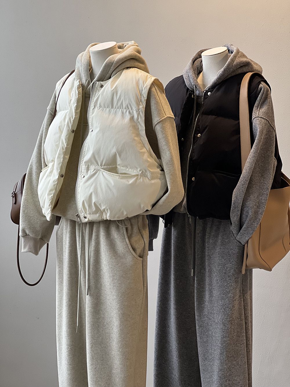 兩種尺寸/鋪棉外套/U領/下襬抽繩收腰/切線雙口袋/麵包背心 - 休閒居家簡約百搭素面鋪棉背心外套無袖背心外套夾克外套多尺寸ML黑色米白色