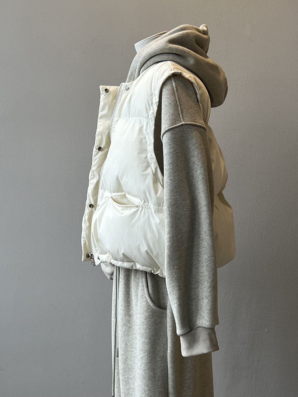 【C60081】品牌 鋪棉背心外套-素面U領抽繩收腰雙口袋無袖★★