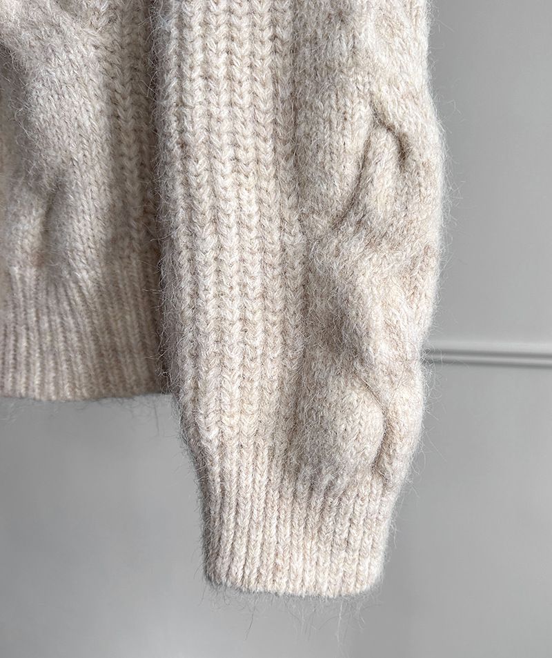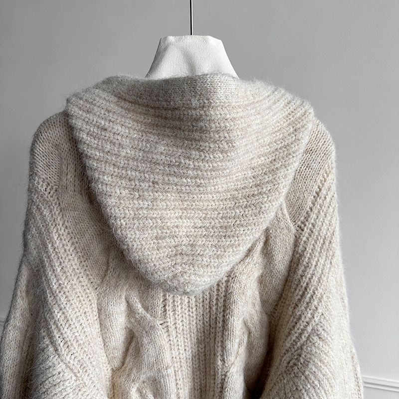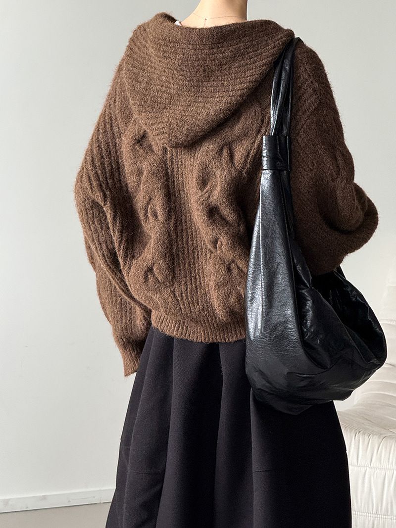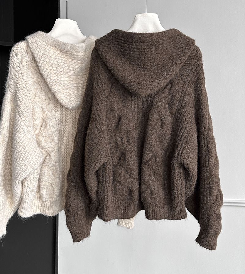 【C60083】品牌 連帽針織外套-素面好氣色麻花編織雙開式拉鍊長袖
