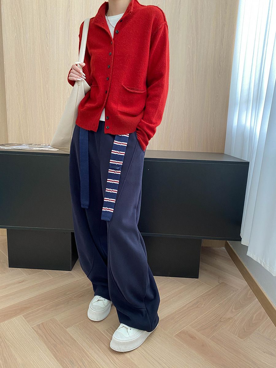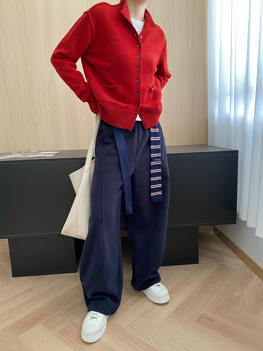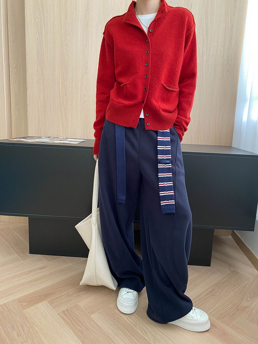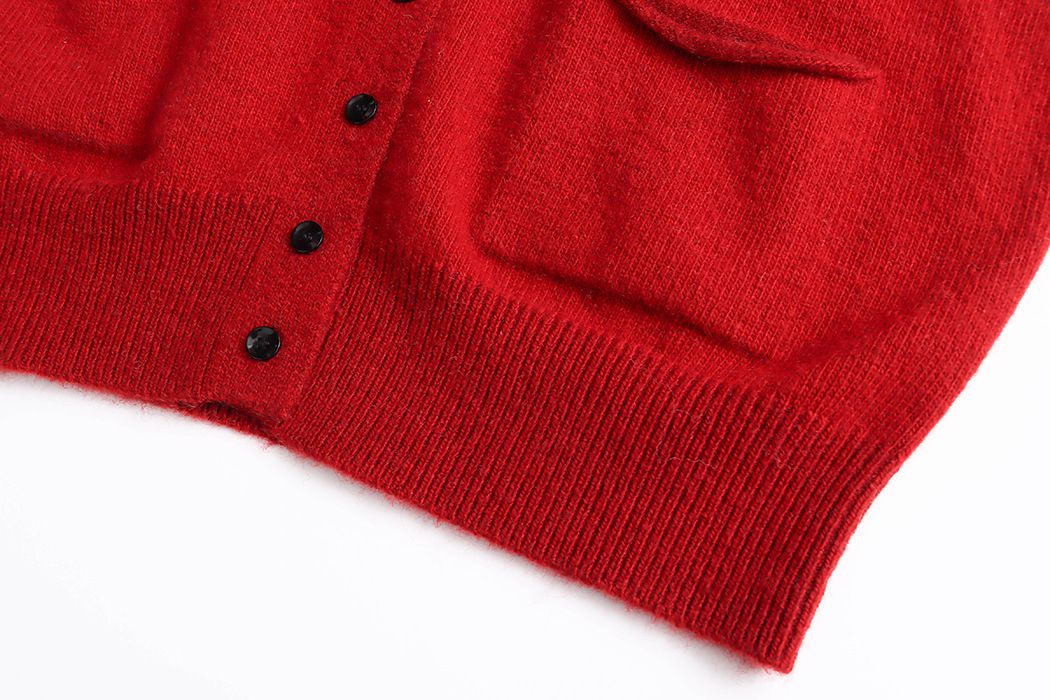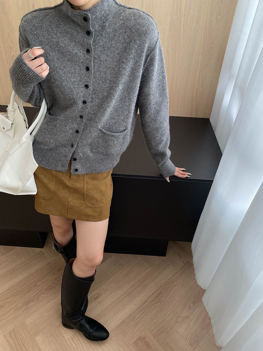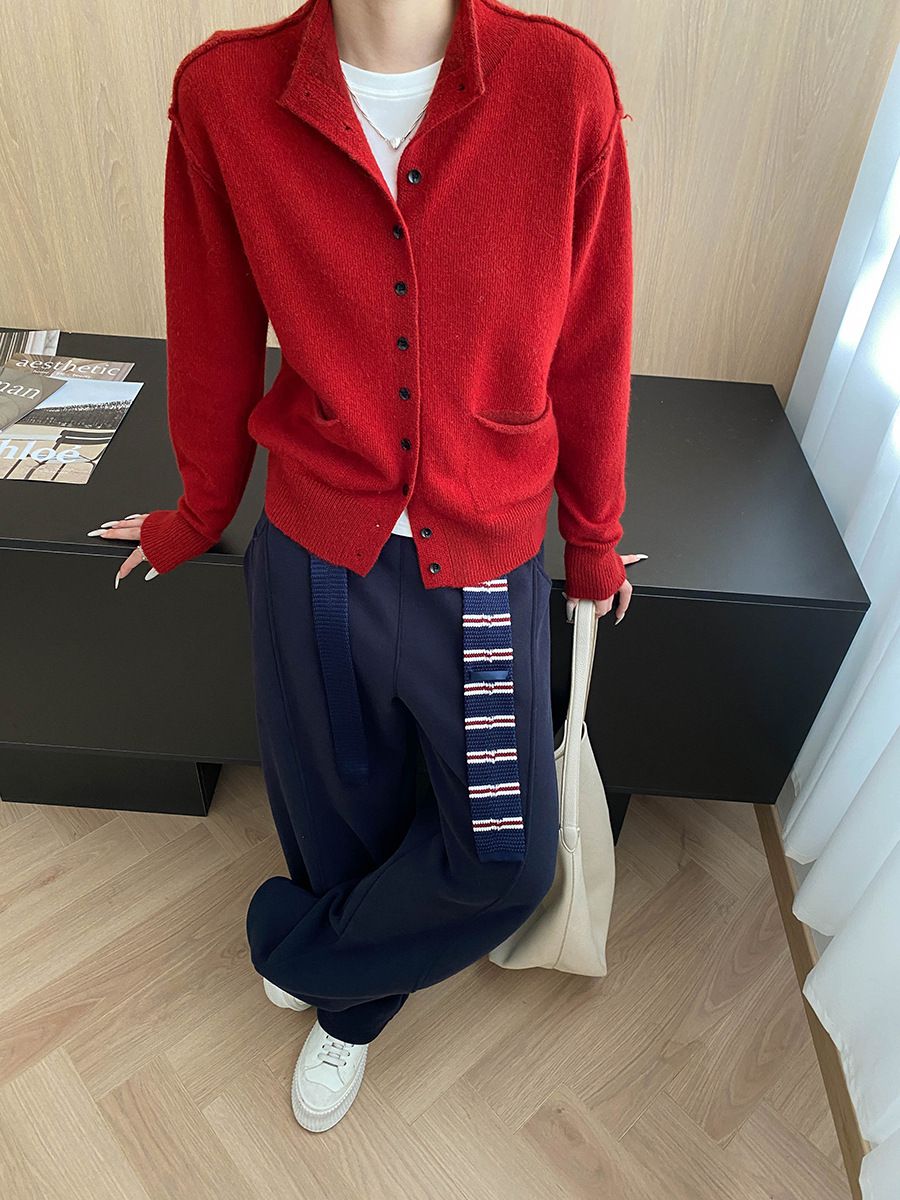 反車線設計/開襟排釦/立領.高領/捲邊設計/雙口袋/好氣色 - 休閒居家簡約百搭素面反車線針織外套針織衫針織上衣長袖上衣長袖外套紅色灰色深藍色燕麥色