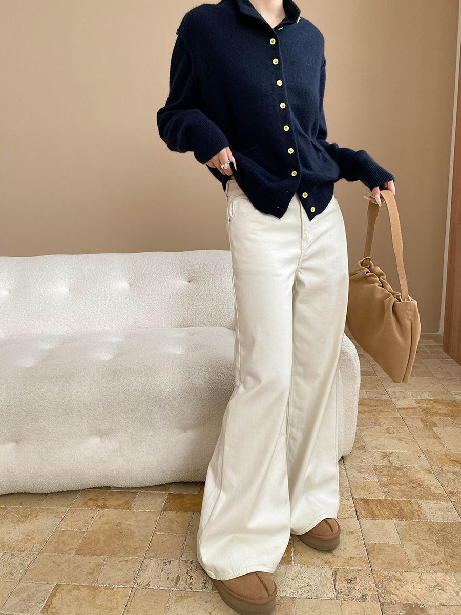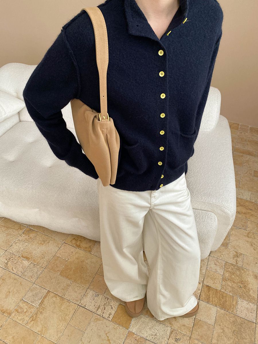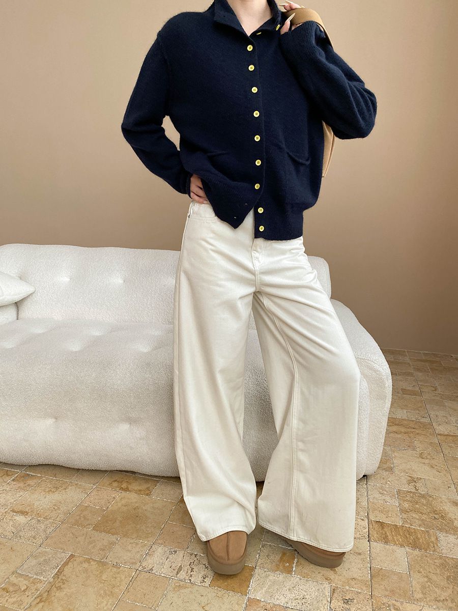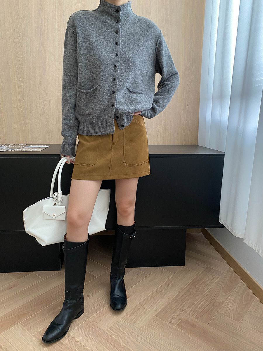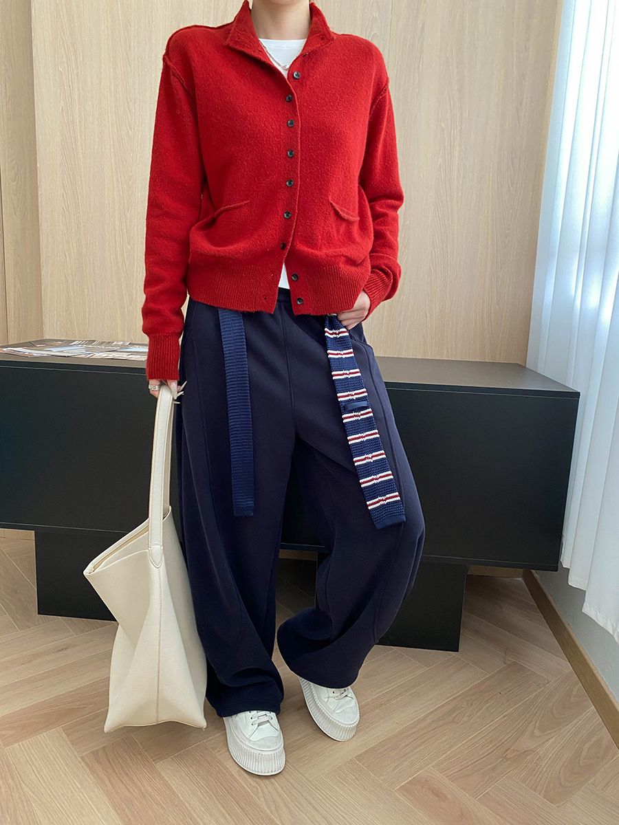 反車線設計/開襟排釦/立領.高領/捲邊設計/雙口袋/好氣色 - 休閒居家簡約百搭素面反車線針織外套針織衫針織上衣長袖上衣長袖外套紅色灰色深藍色燕麥色