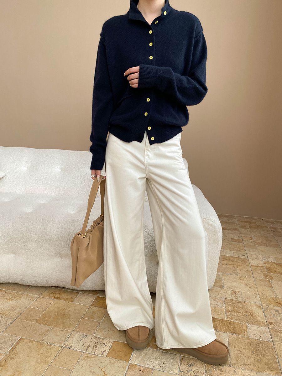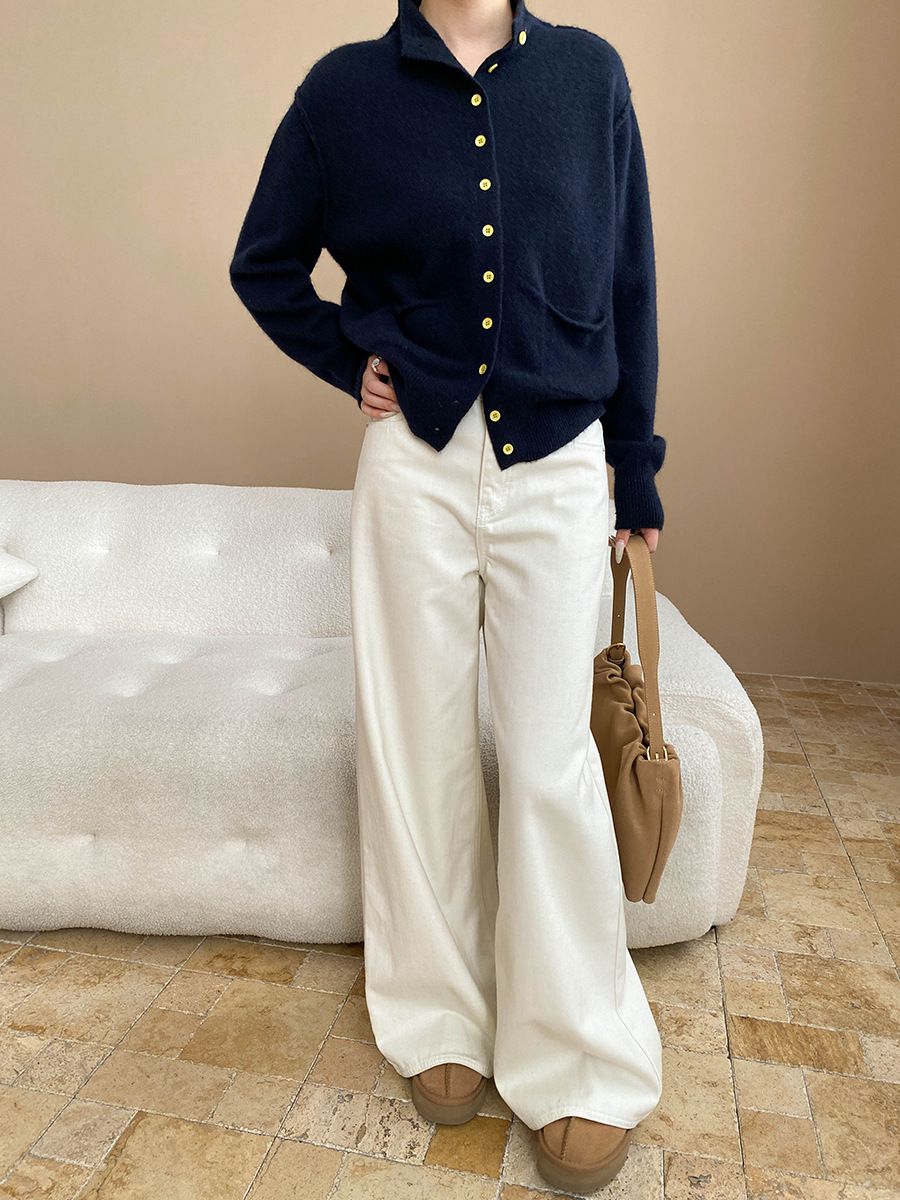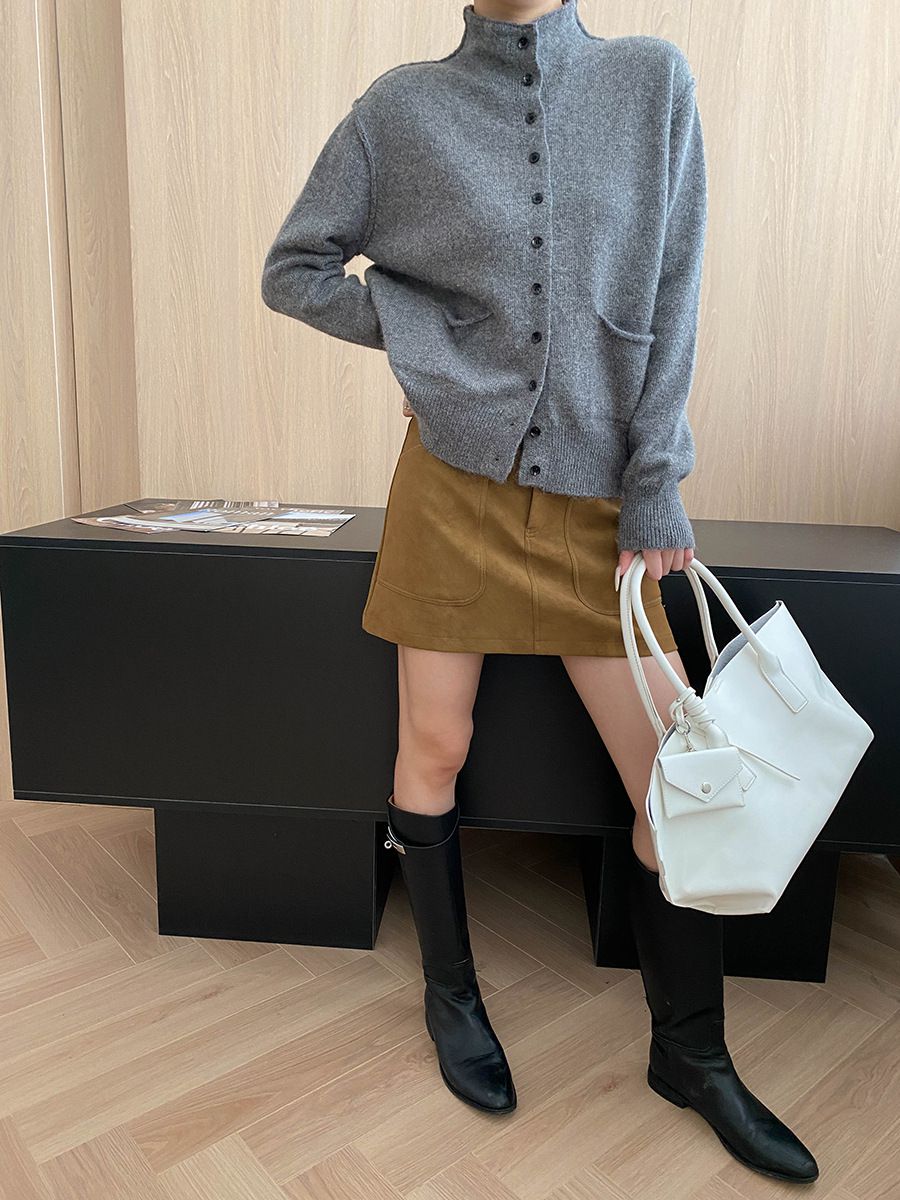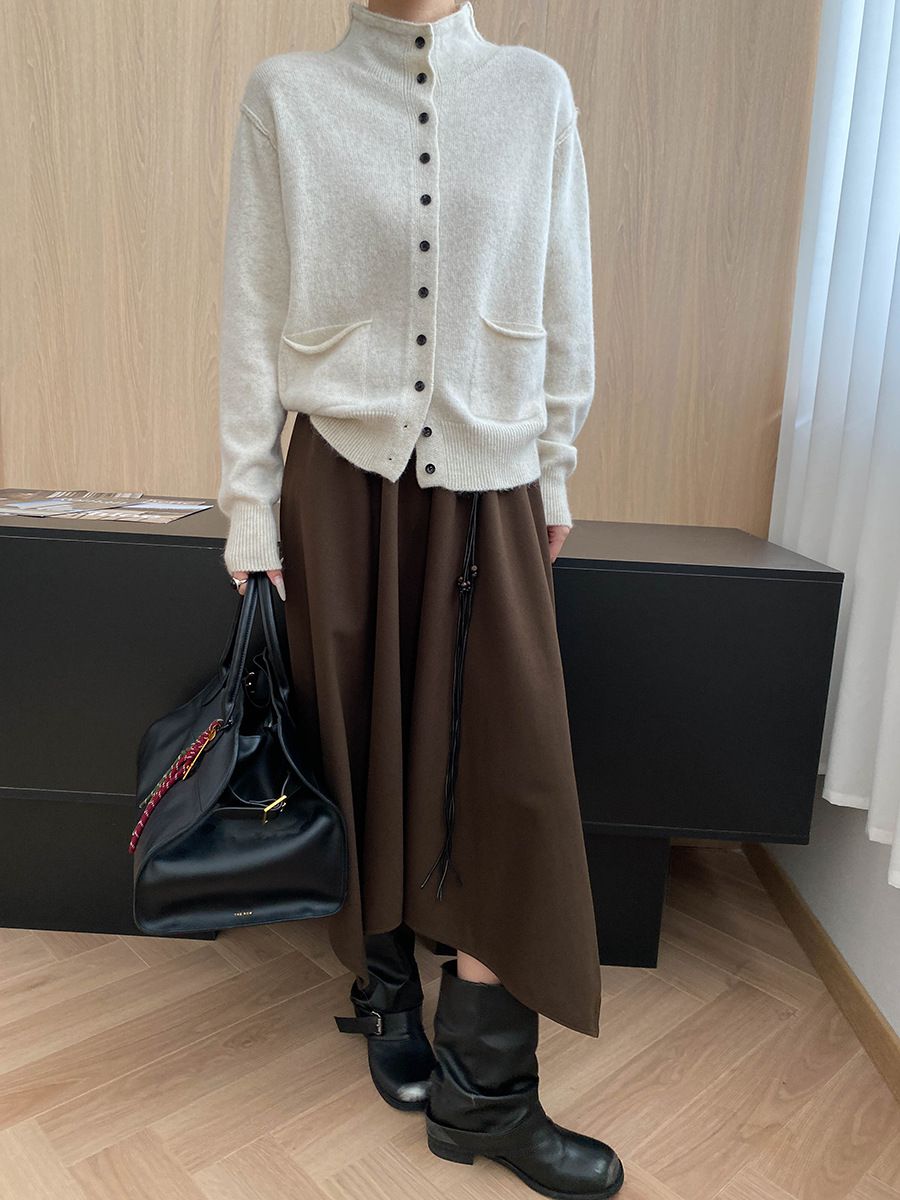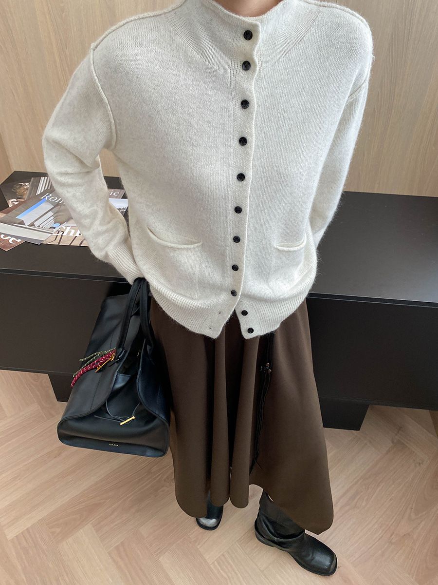 【C60112】品牌 反車線針織外套-素面排釦立領捲邊雙口袋長袖上衣