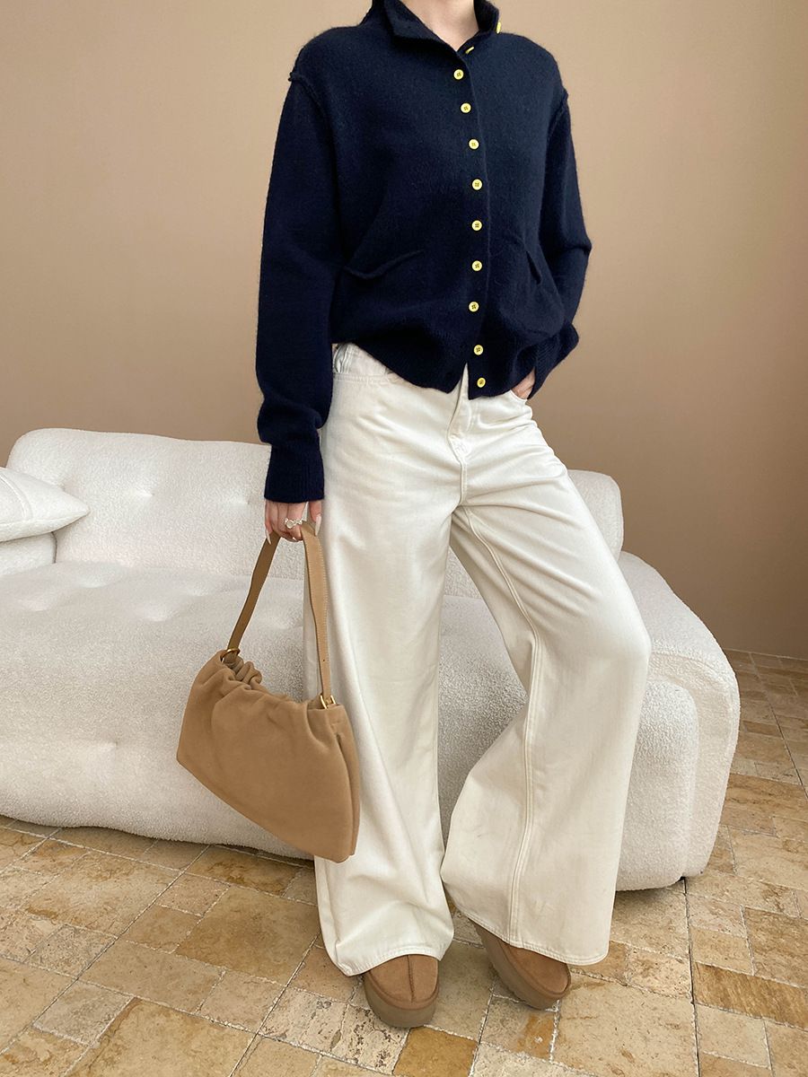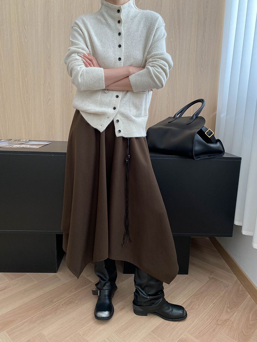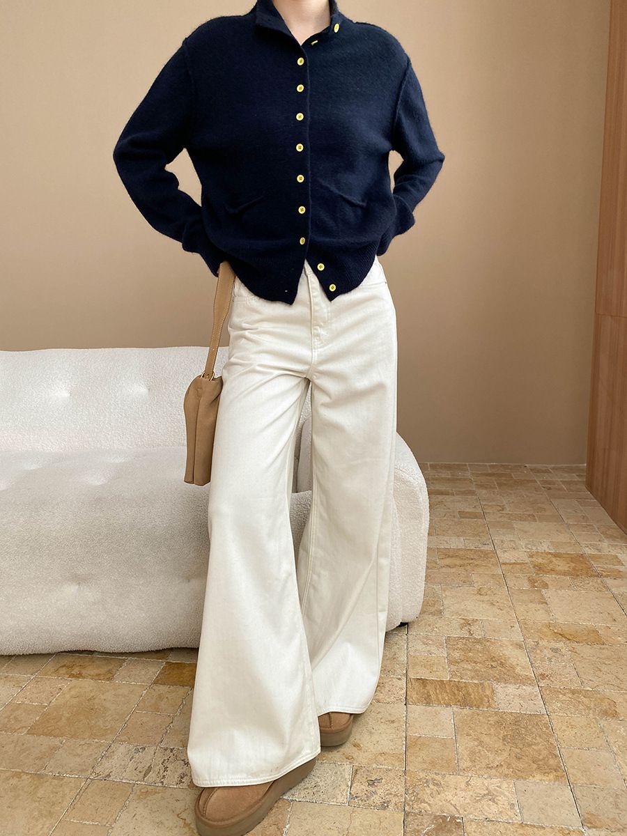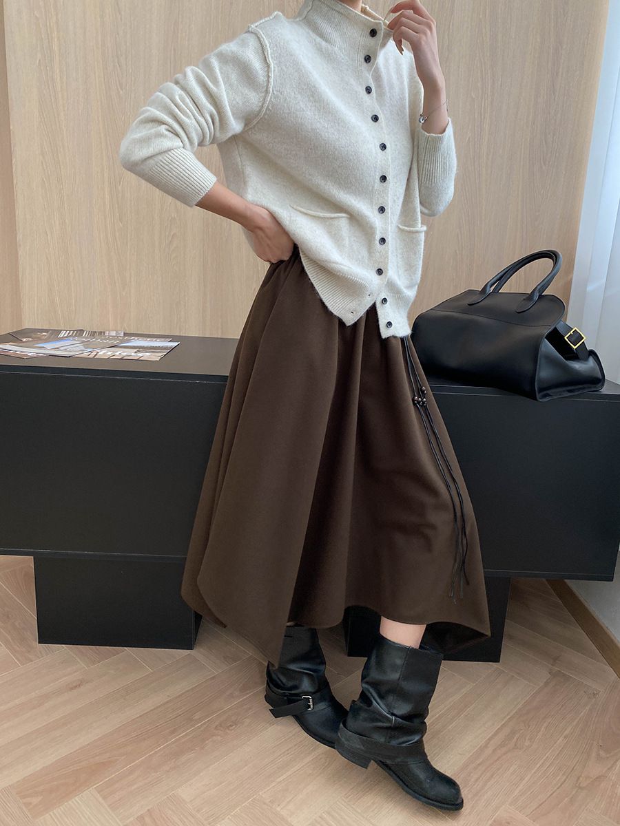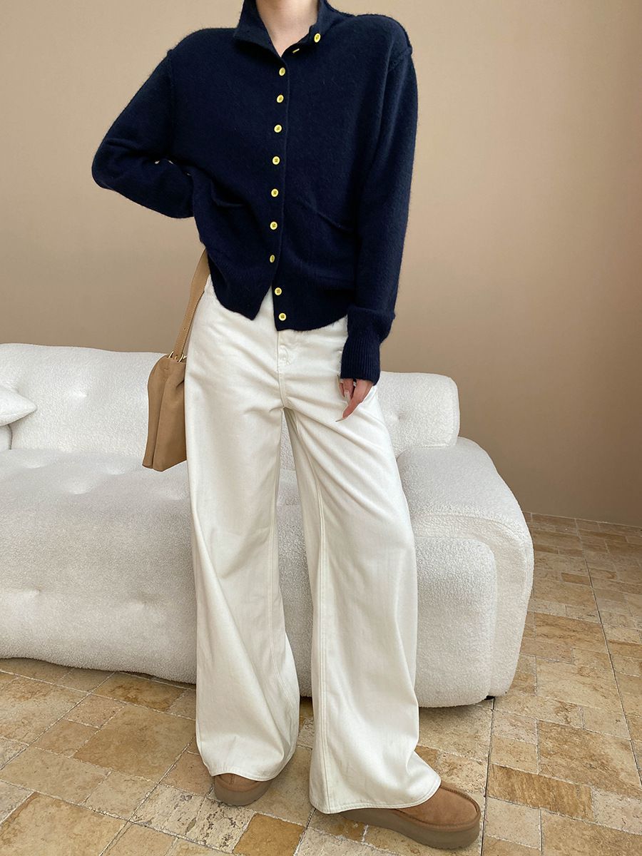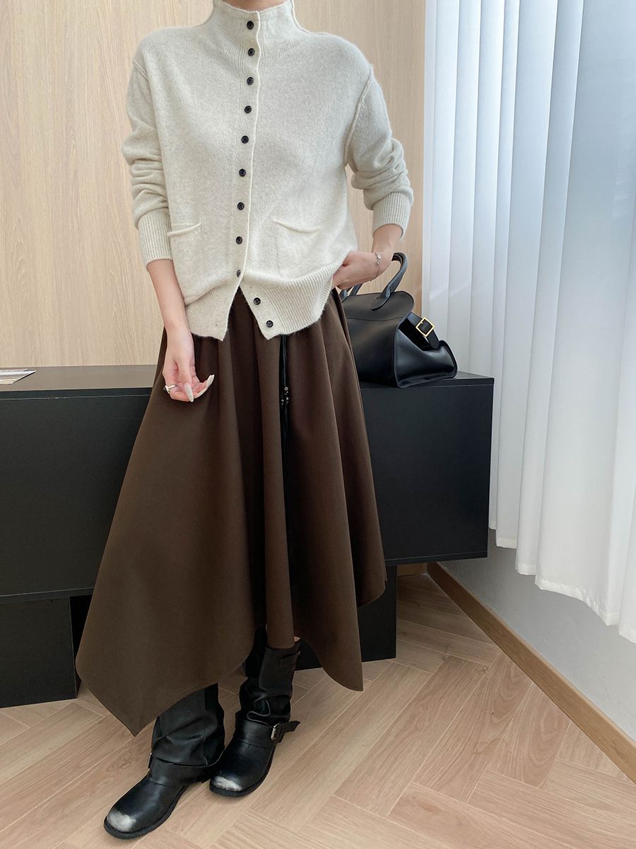 【C60112】品牌 反車線針織外套-素面排釦立領捲邊雙口袋長袖上衣