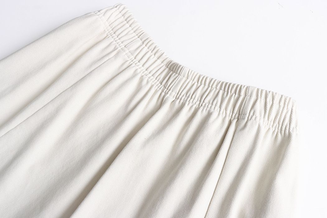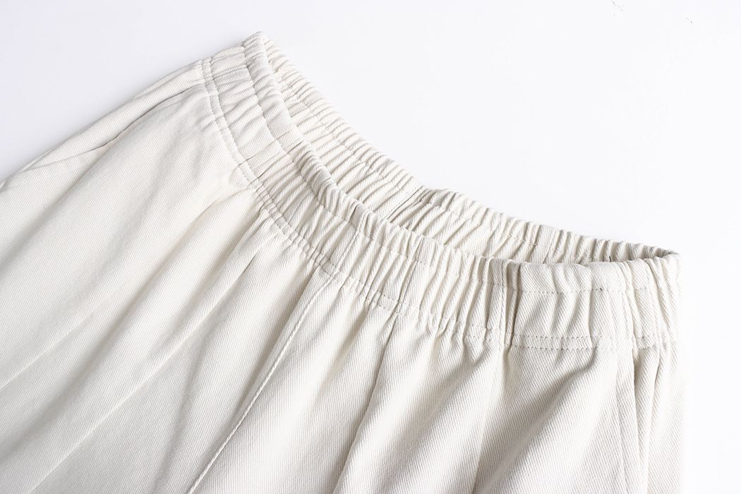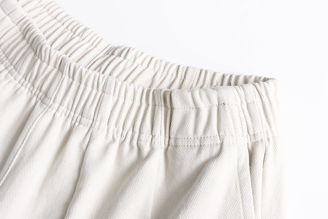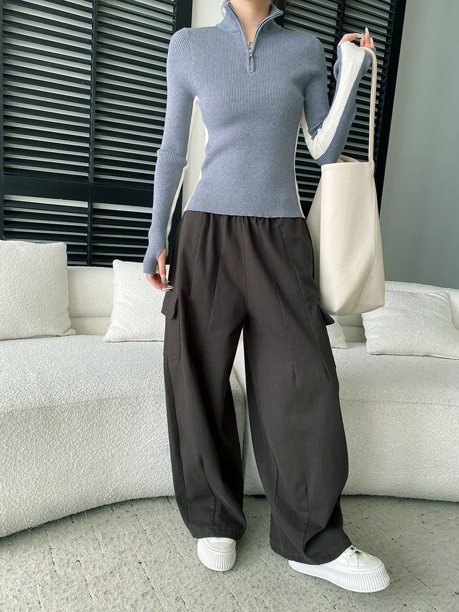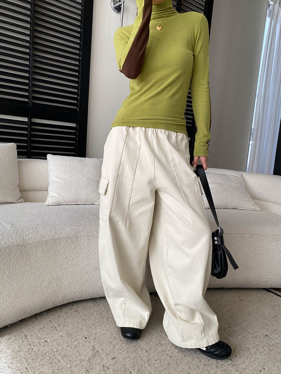 【C60134】品牌 大口袋工裝褲-素面全腰鬆緊立體車線寬褲管長褲★★