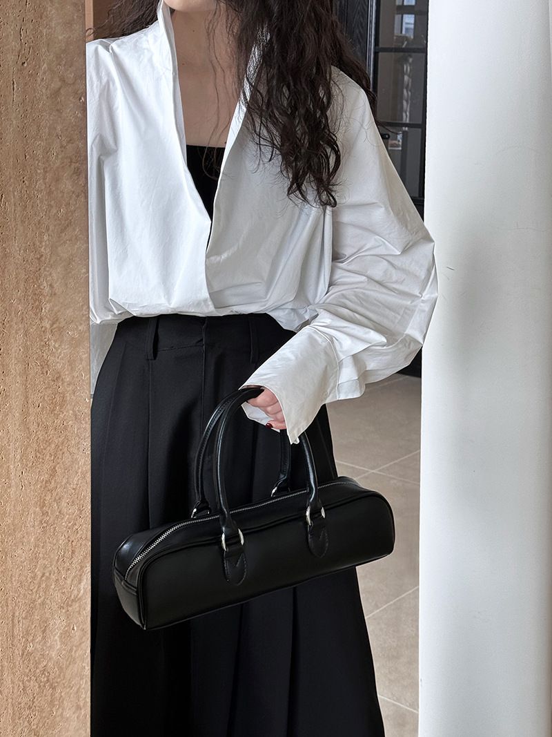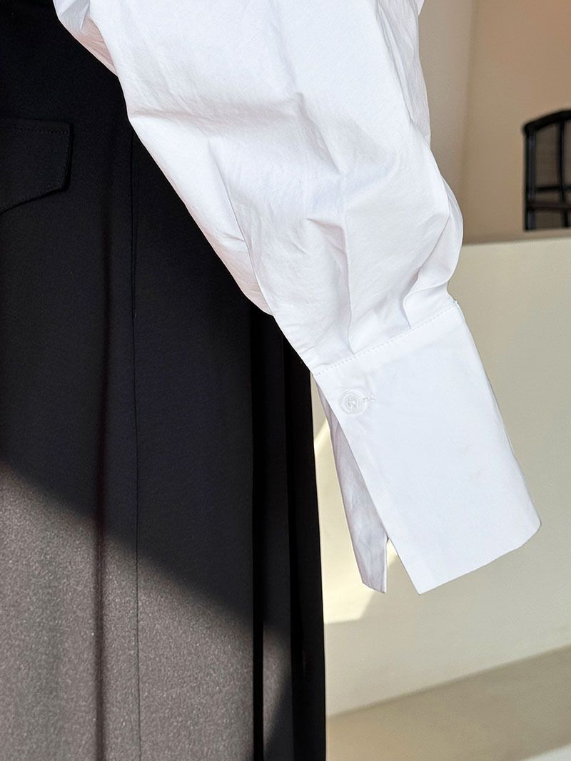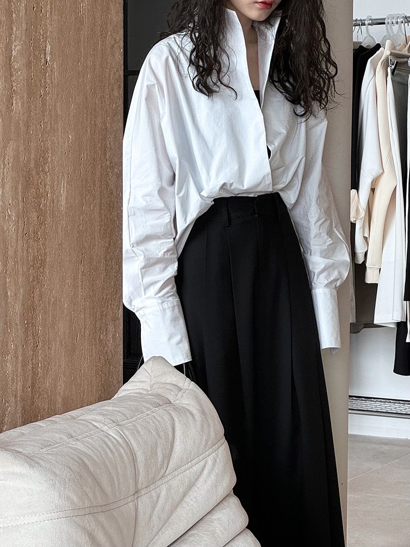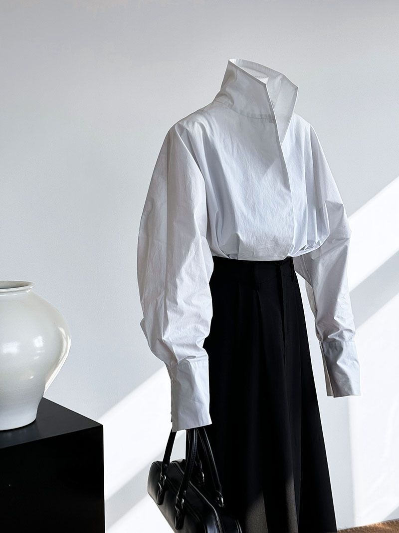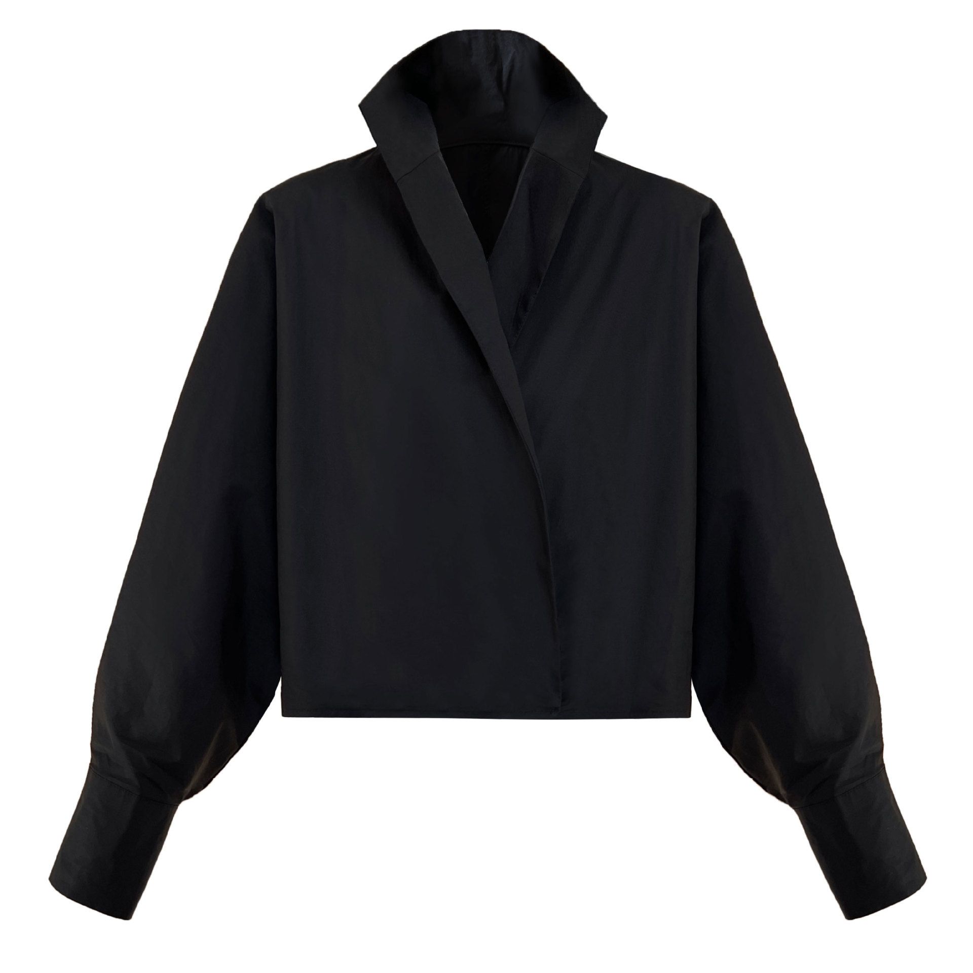 兩種尺寸/交叉衣襟/開衩衣襟/立領.高領/寬鬆短版 - 婚禮OL上班族交疊衣襟襯衫上衣長袖襯衫寬鬆大尺碼上衣短版上衣長袖上衣多尺寸ML黑色白色
