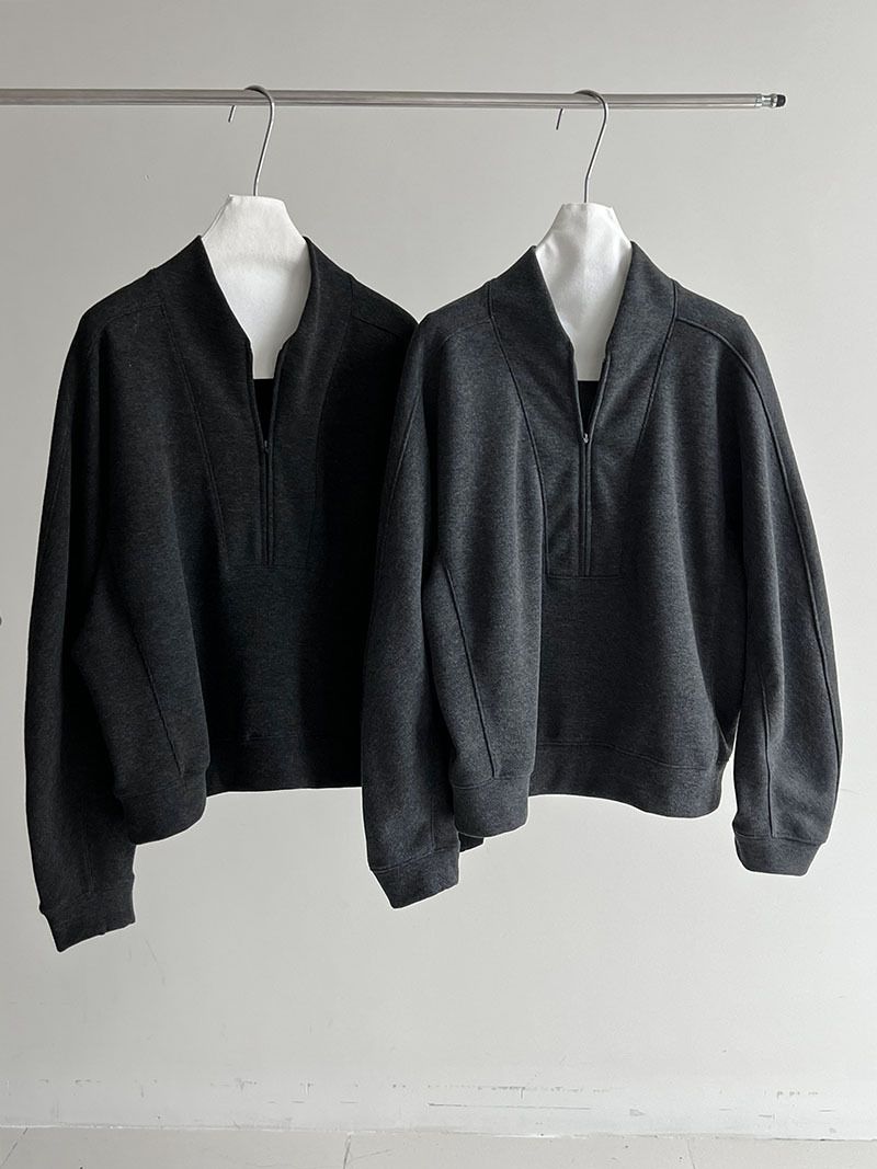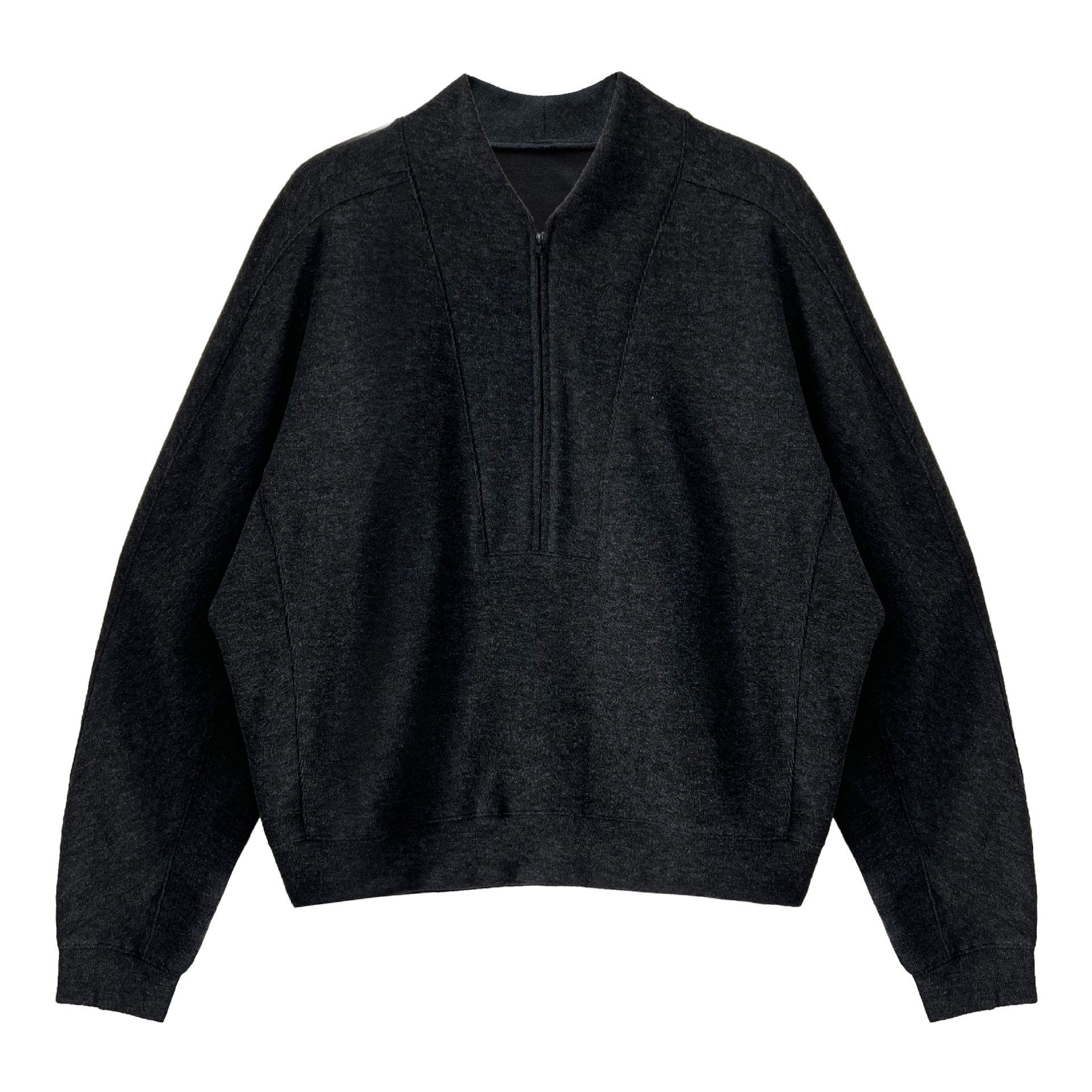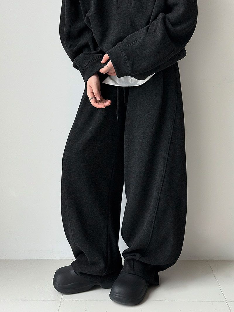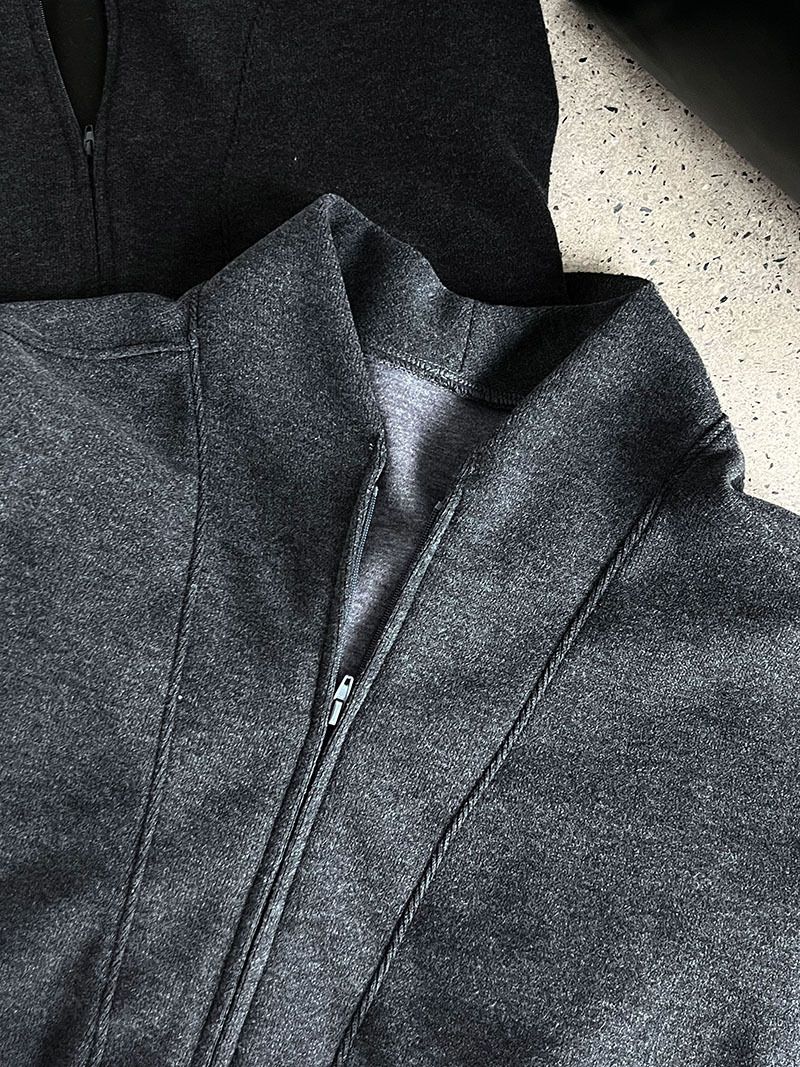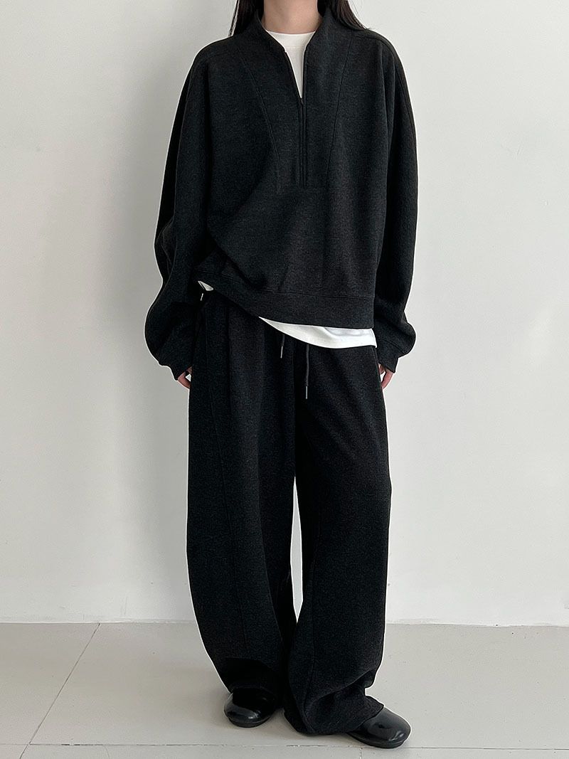 兩種尺寸/超值兩件組/半開襟拉鍊領/V領/連肩袖/飛鼠袖/抽繩鬆緊腰/雙口袋/出芽車線/彎刀褲/寬褲管 - 休閒居家簡約百搭素面兩件式套裝拉鍊V領套裝長袖上衣長褲多尺寸ML黑色深灰色