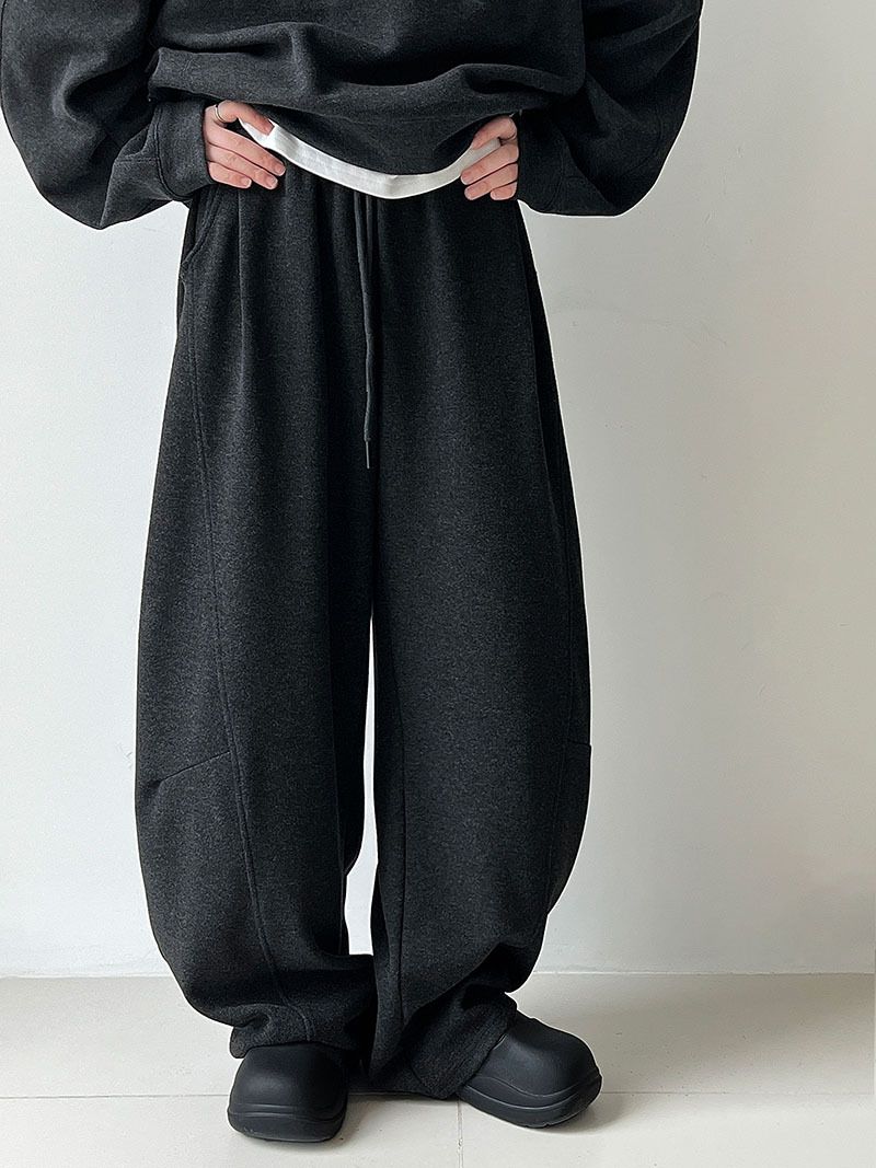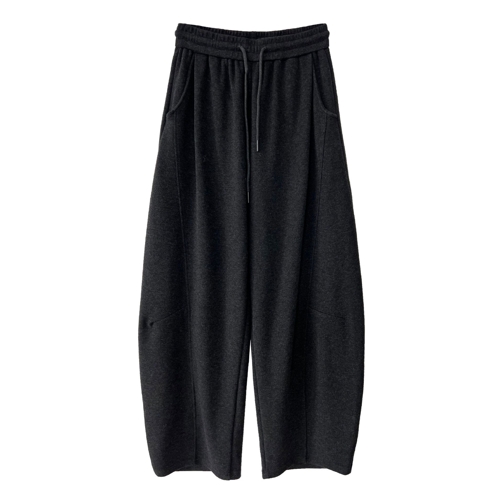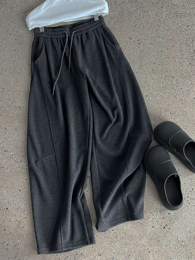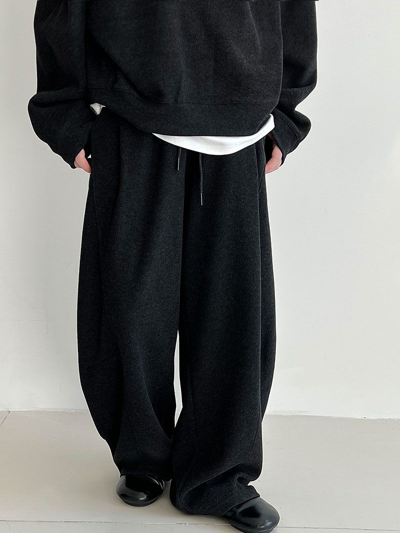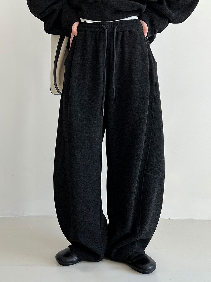 兩種尺寸/超值兩件組/半開襟拉鍊領/V領/連肩袖/飛鼠袖/抽繩鬆緊腰/雙口袋/出芽車線/彎刀褲/寬褲管 - 休閒居家簡約百搭素面兩件式套裝拉鍊V領套裝長袖上衣長褲多尺寸ML黑色深灰色