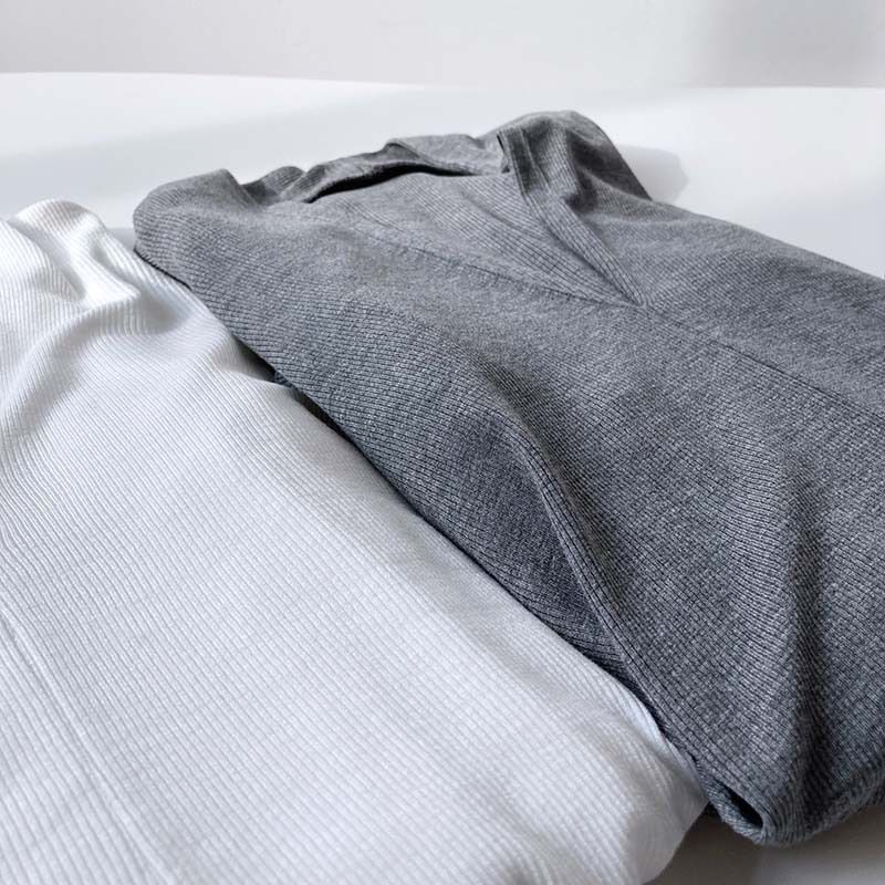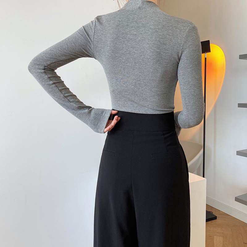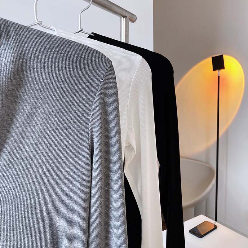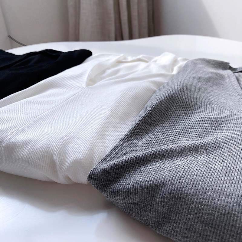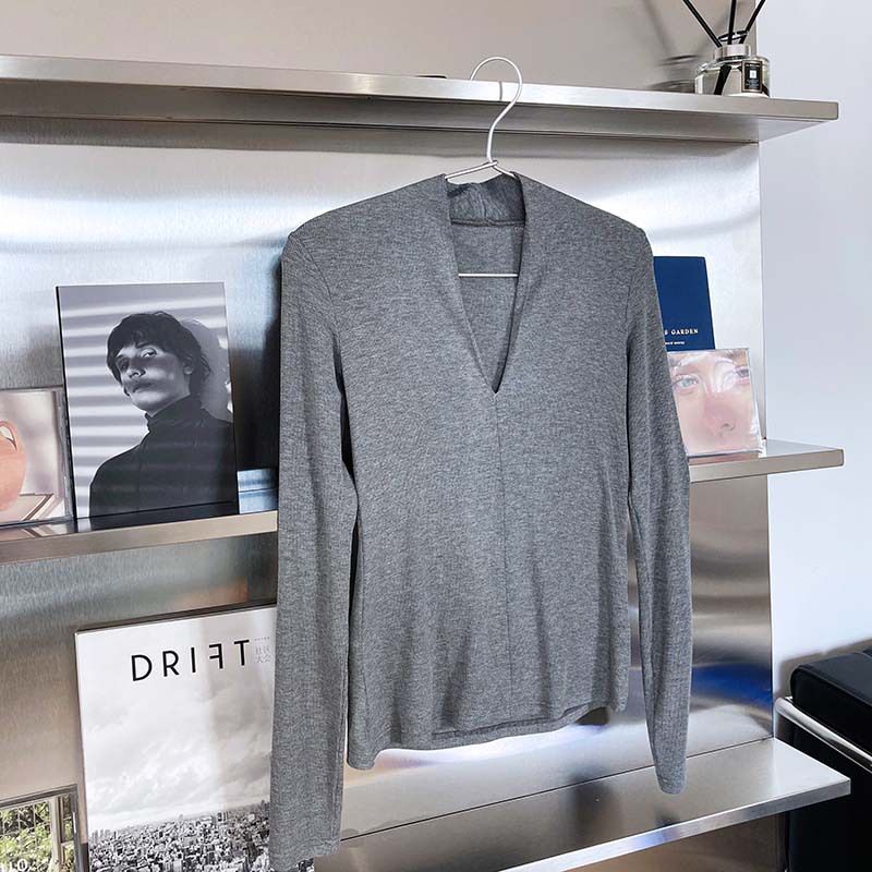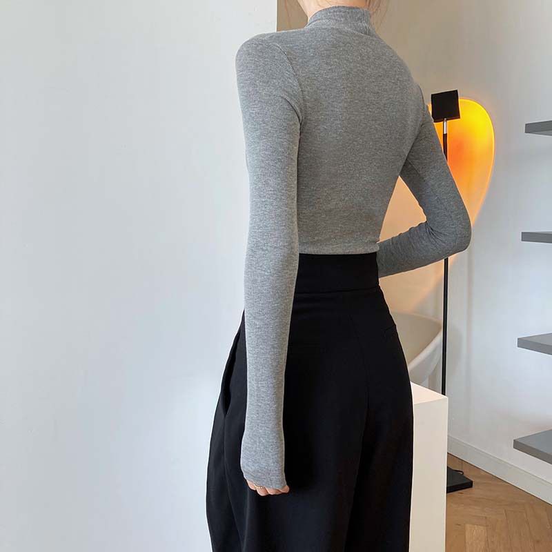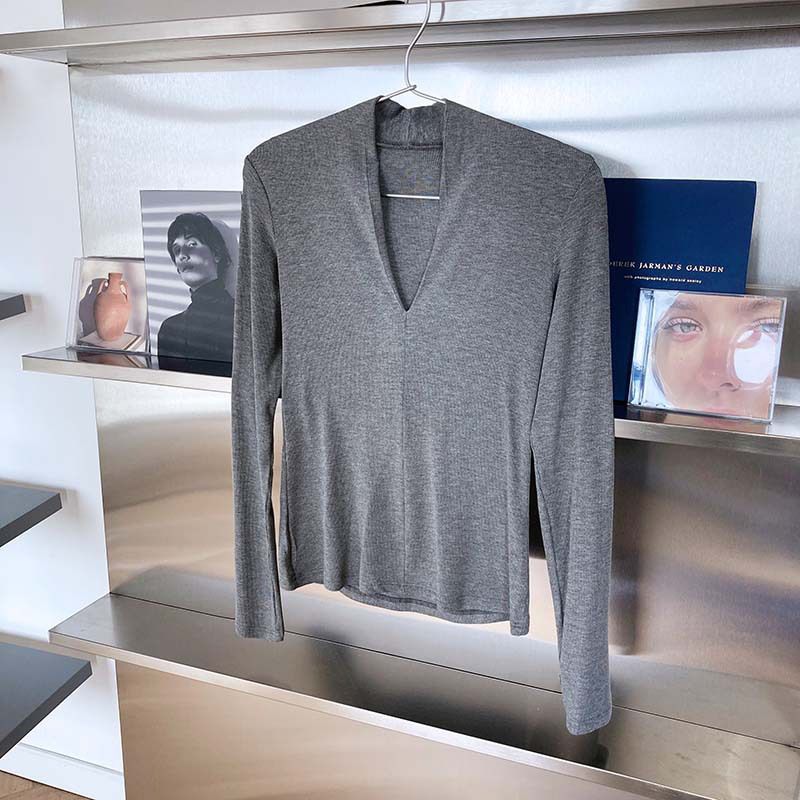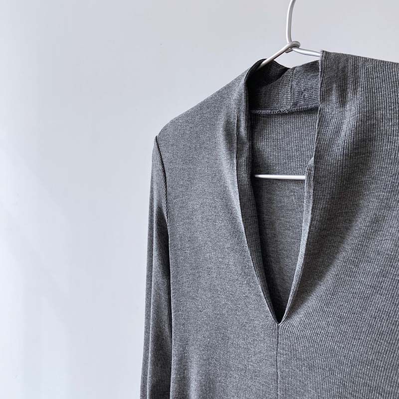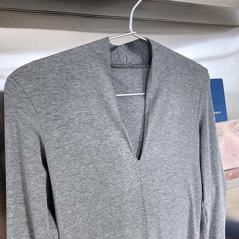 兩種尺寸/彈力面料/短版上衣/貼身內搭/深V領 - 休閒居家OL上班族簡約百搭素面彈力深V領上衣長袖上衣多尺寸ML黑色白色灰色