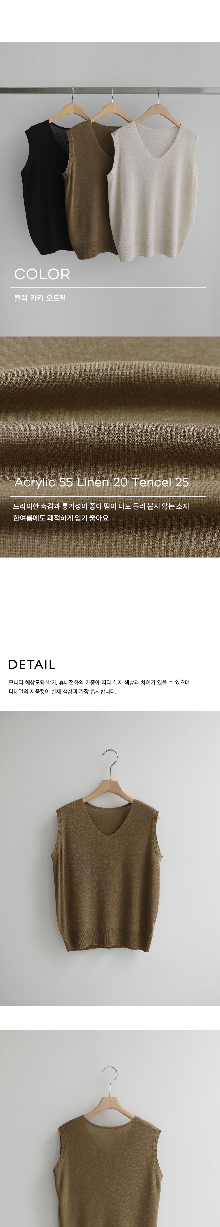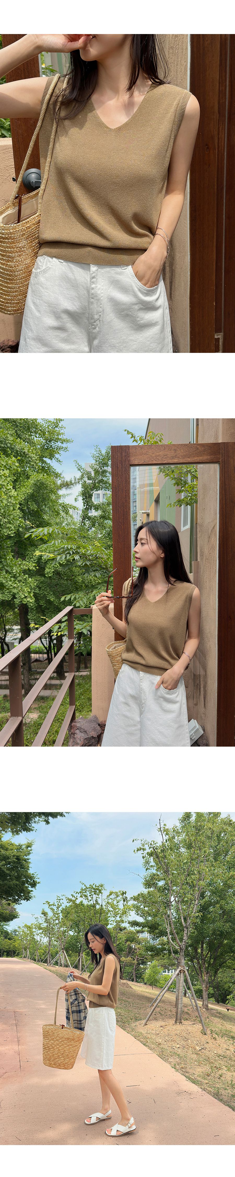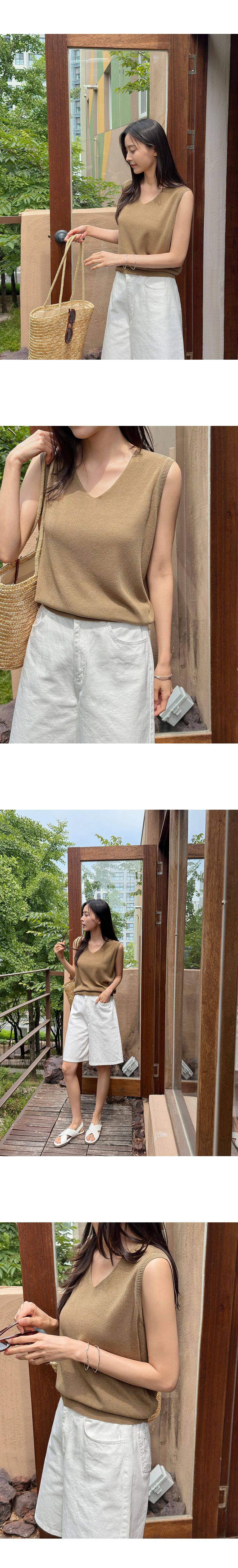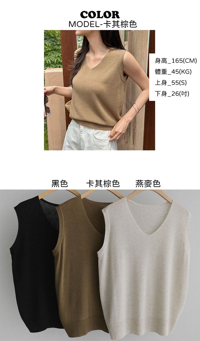 【C54908】韓國PUR 混亞麻針織衫-素面不收邊V領輕薄無袖背心上衣