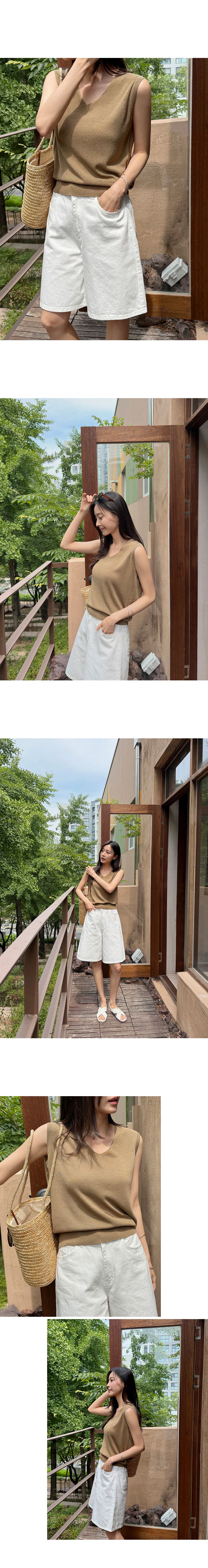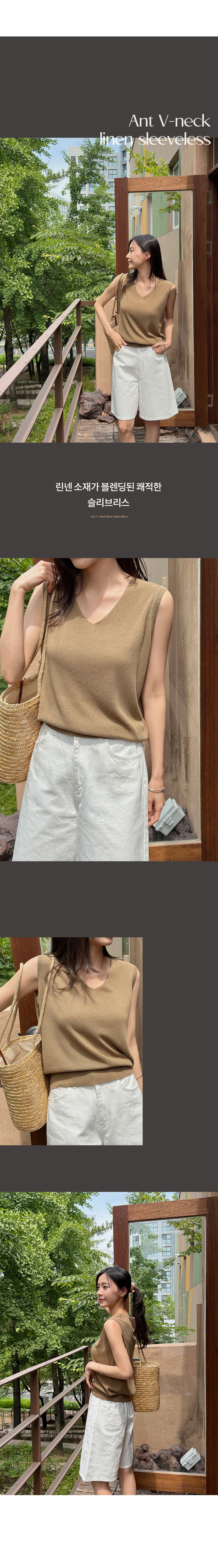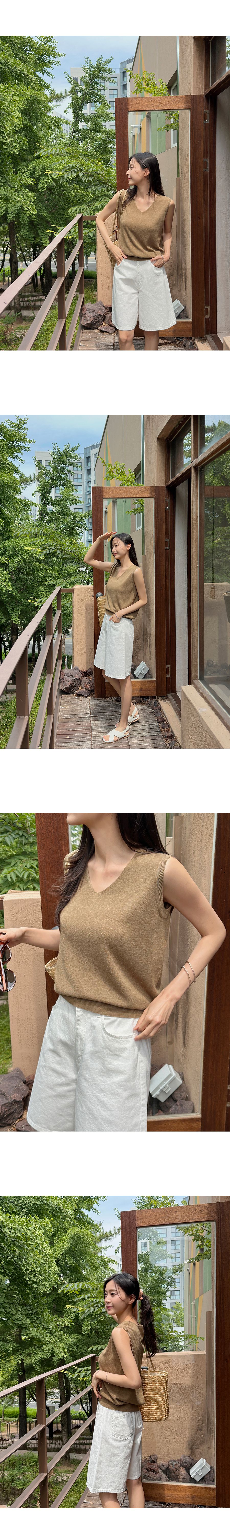 【C54908】韓國PUR 混亞麻針織衫-素面不收邊V領輕薄無袖背心上衣