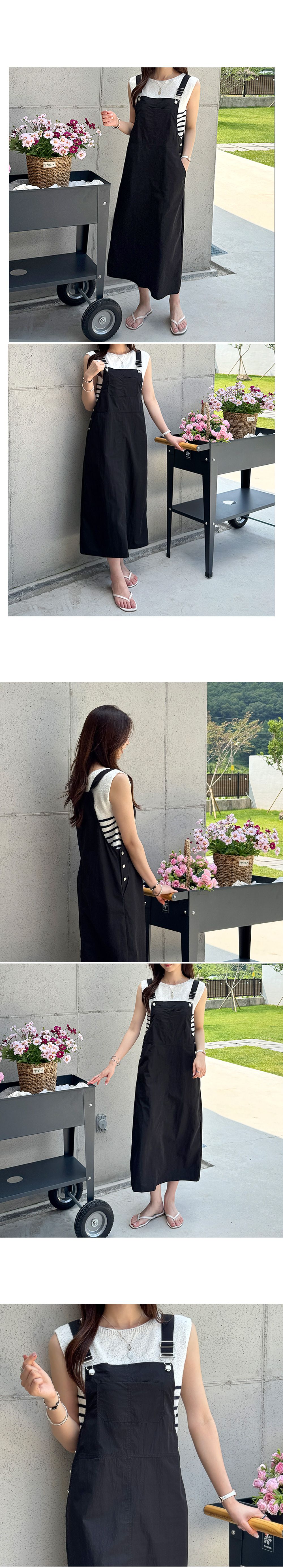 【C54912】韓國DLY 側排釦素面洋裝-大口袋可調節式後開衩無袖吊帶裙
