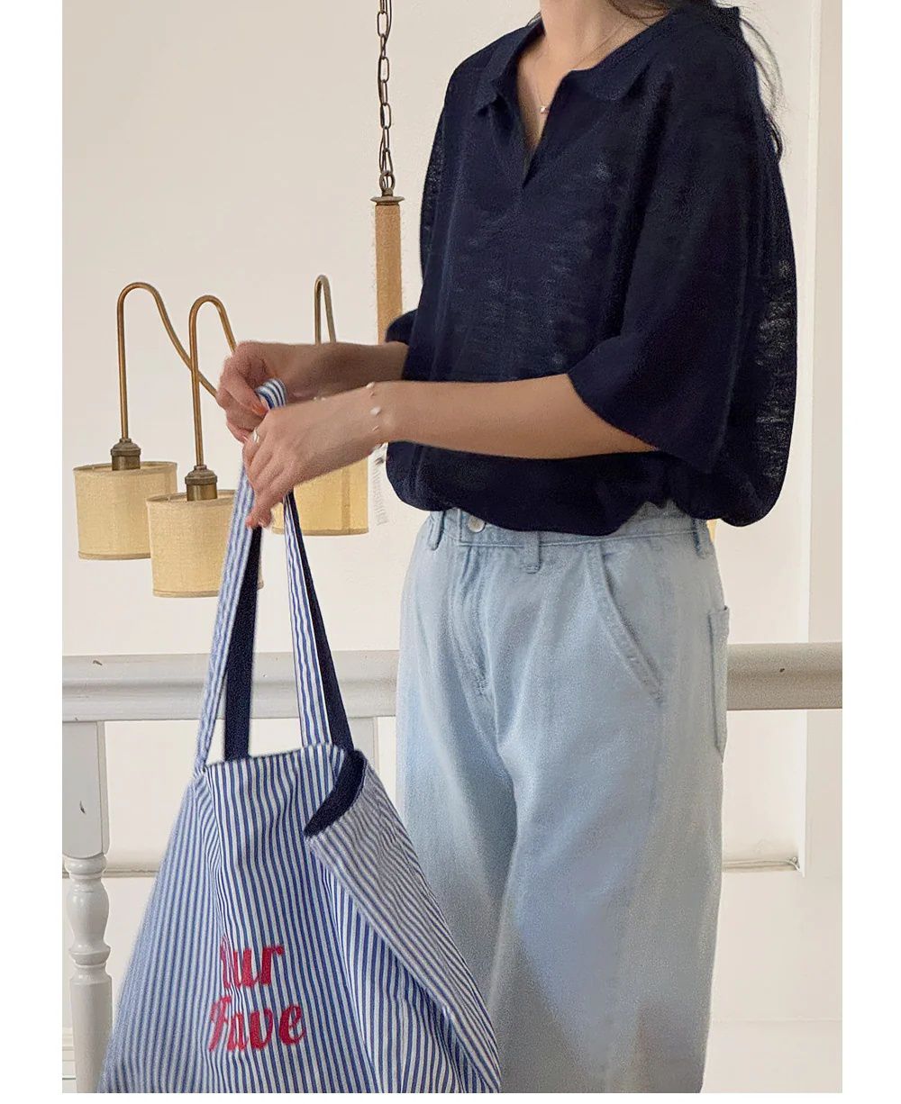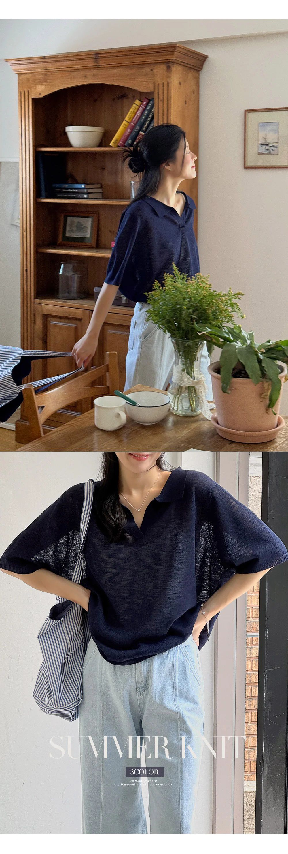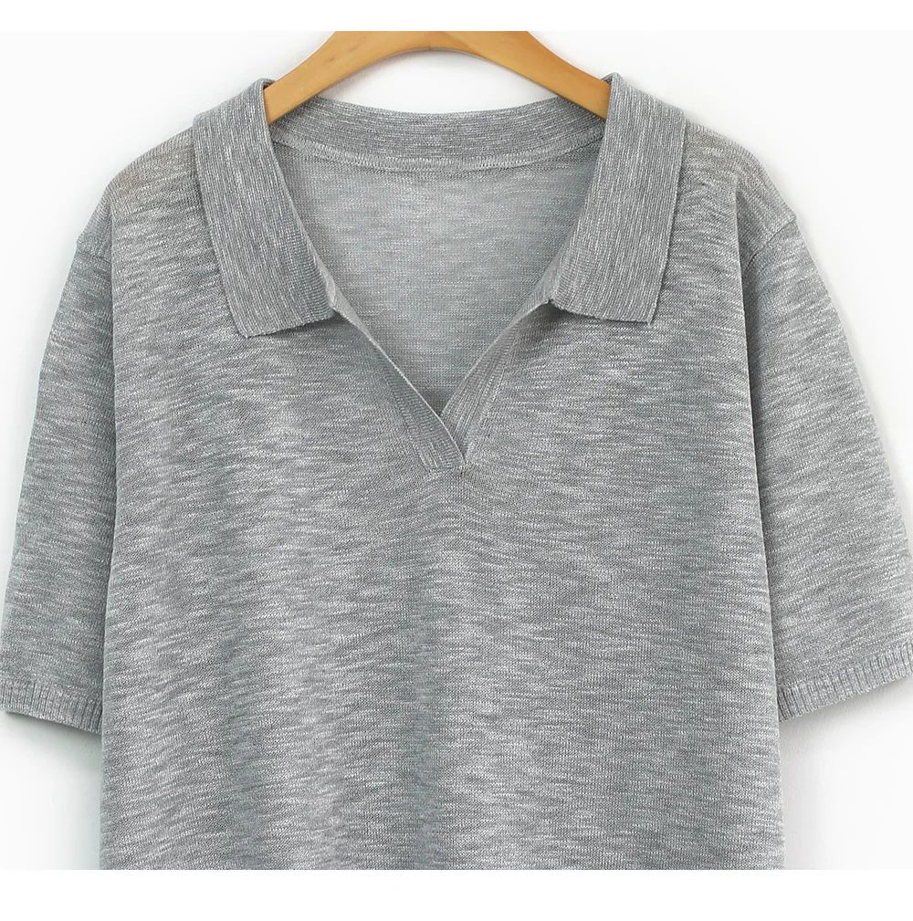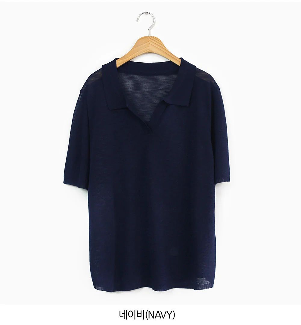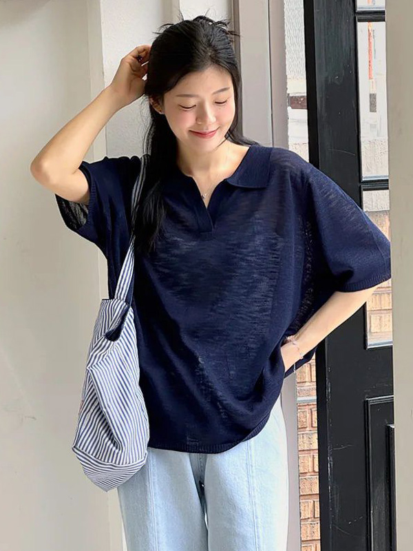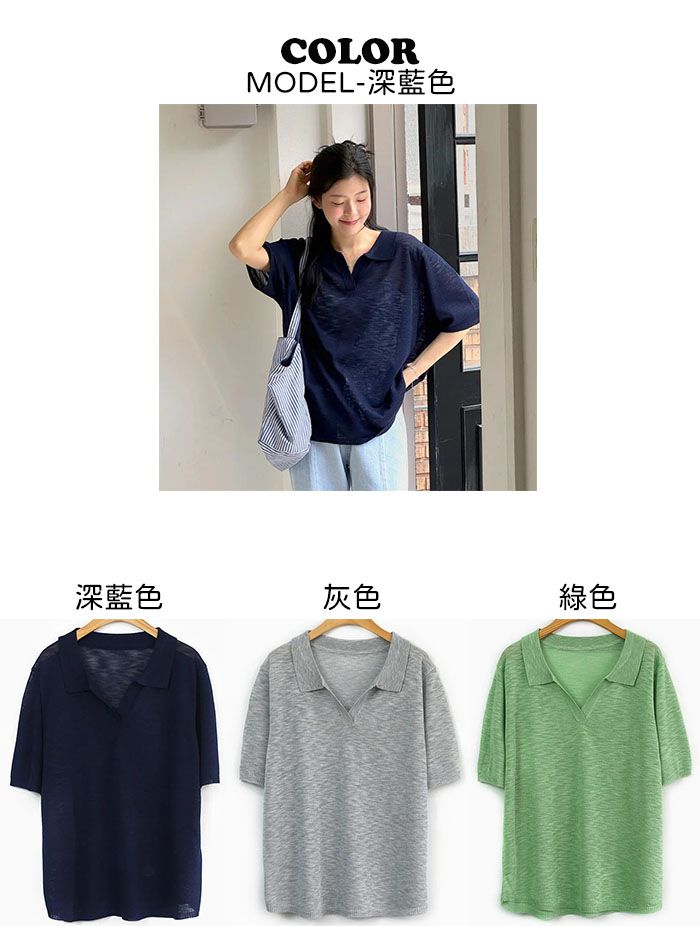 輕薄針織衫/V領/翻領/寬鬆長版 - 休閒居家簡約百搭素面透膚針織衫上衣寬鬆大尺碼上衣五分袖寬袖上衣深藍色綠色灰色