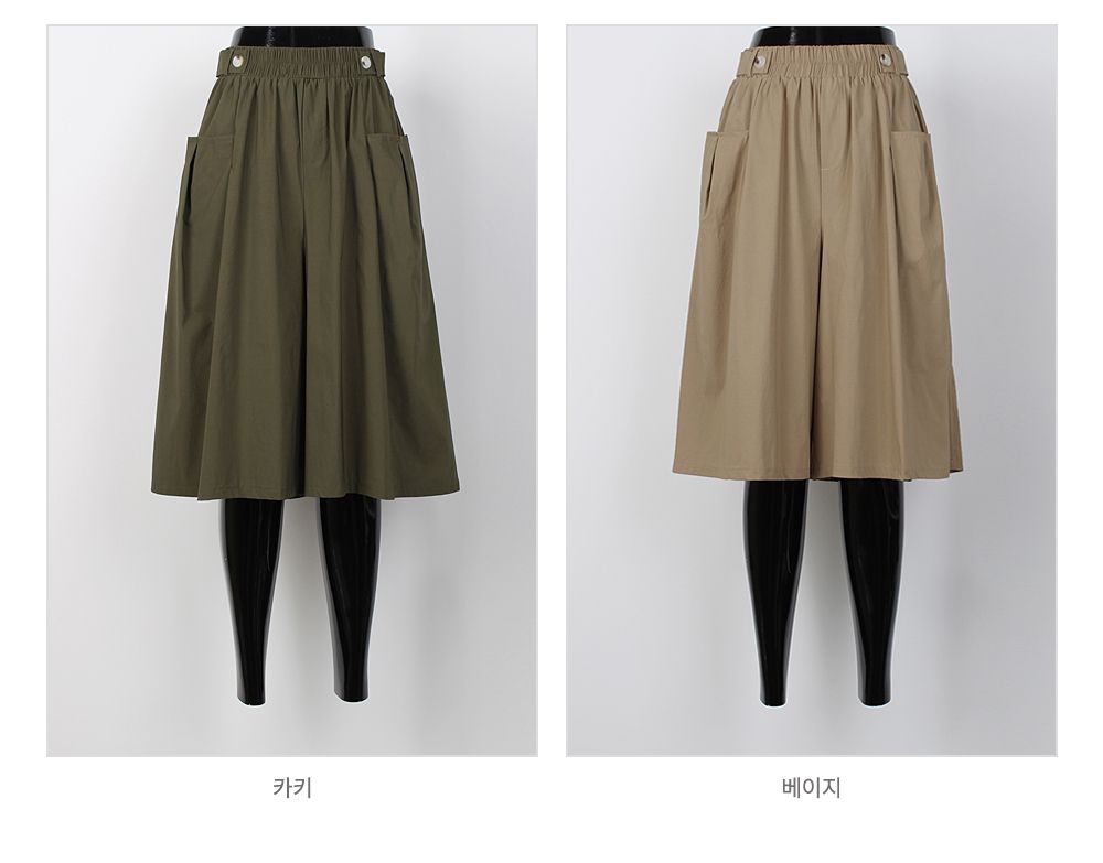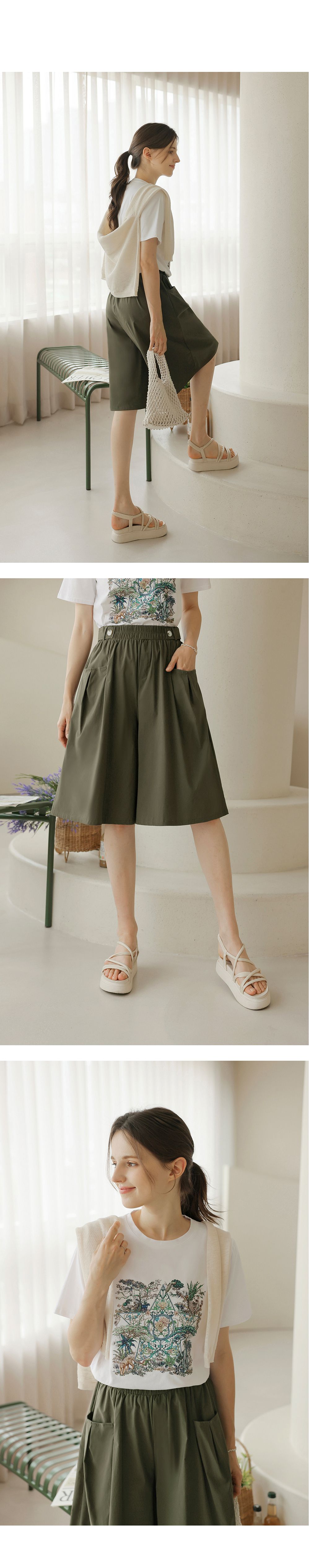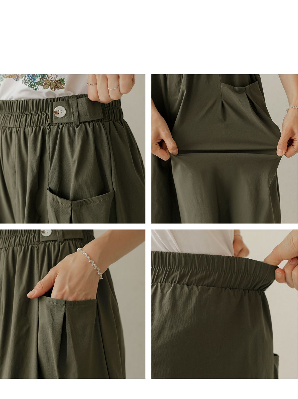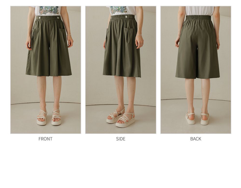 【C54939】韓國MID 立體口袋短褲-素面全腰鬆緊鈕釦造型五分寬褲