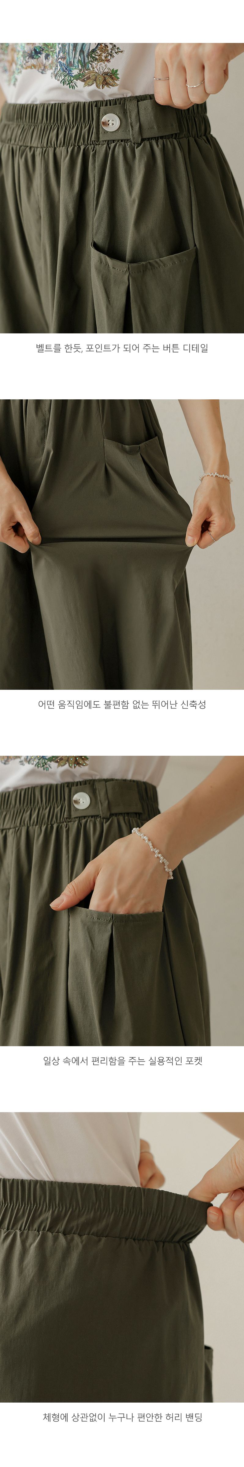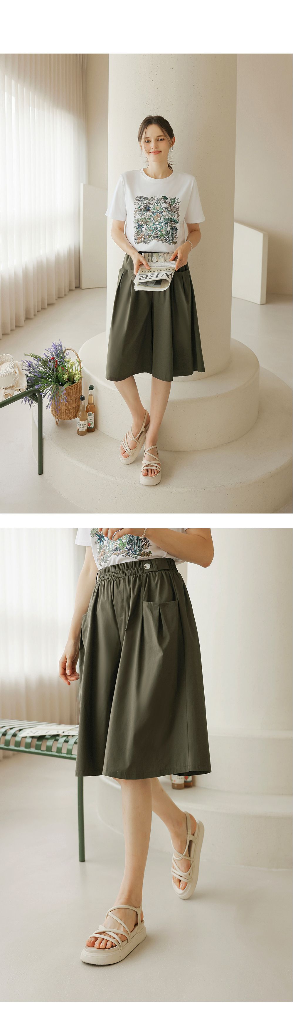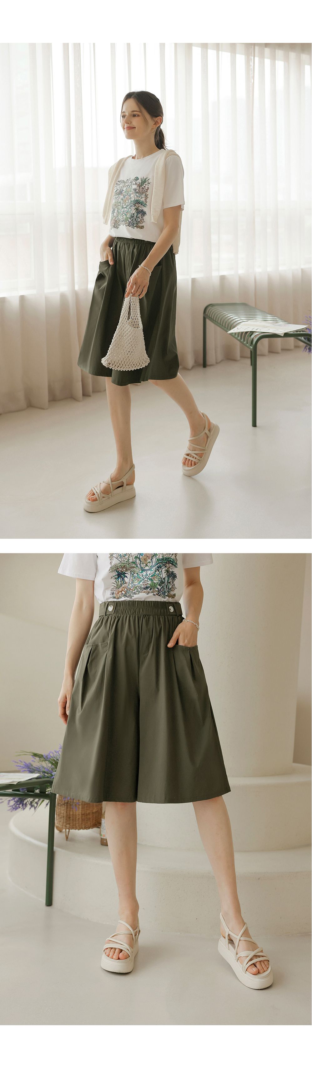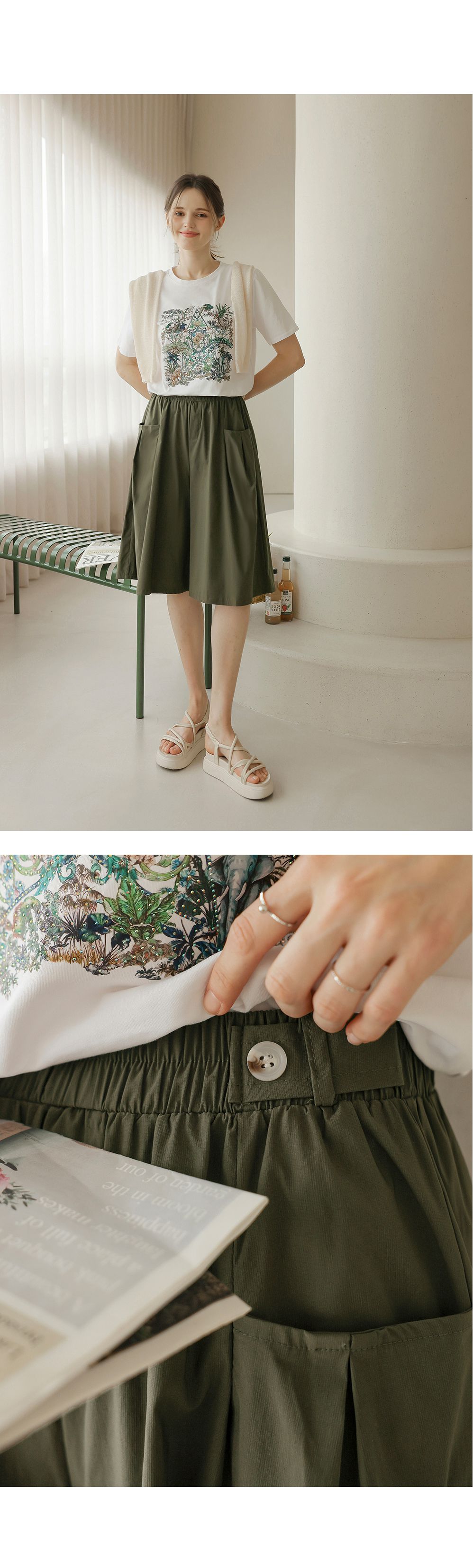 【C54939】韓國MID 立體口袋短褲-素面全腰鬆緊鈕釦造型五分寬褲