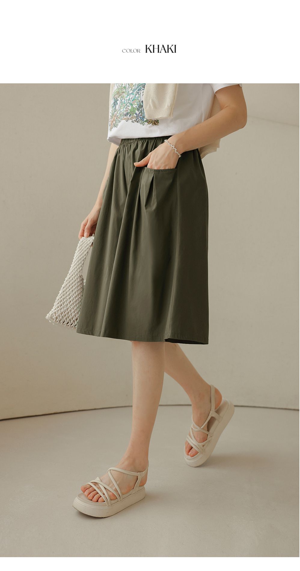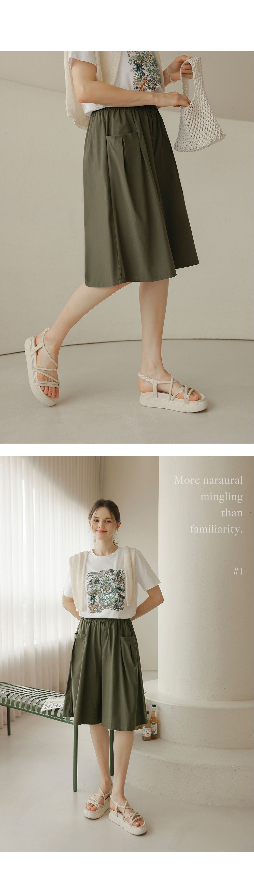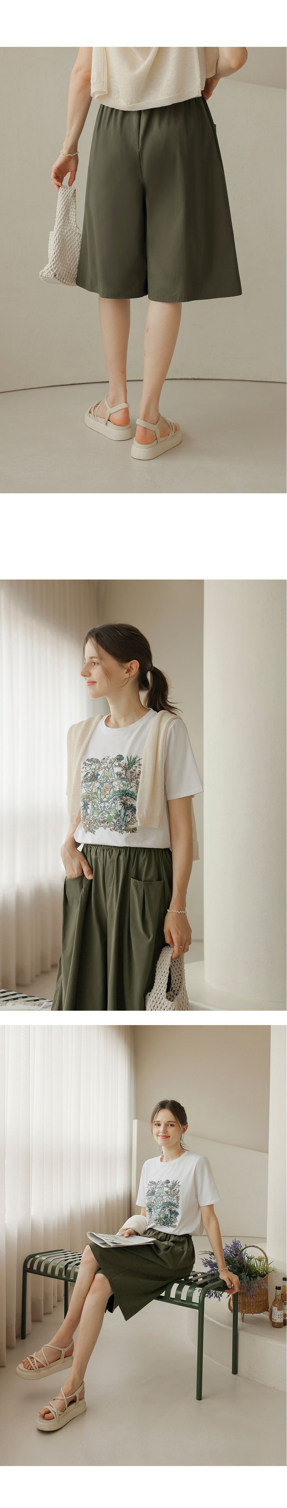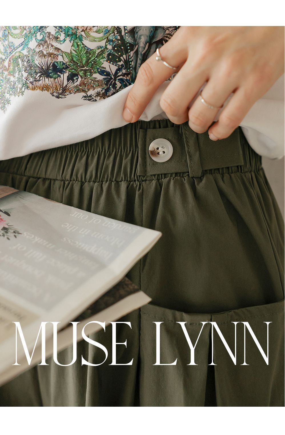 【C54939】韓國MID 立體口袋短褲-素面全腰鬆緊鈕釦造型五分寬褲