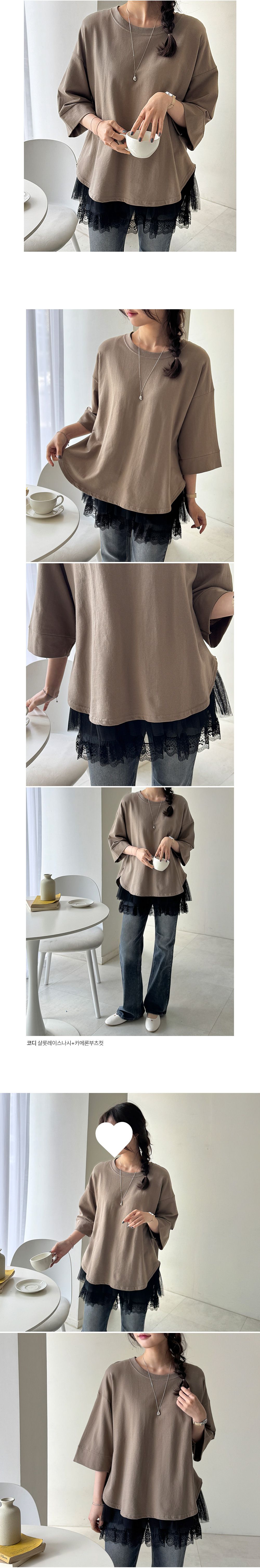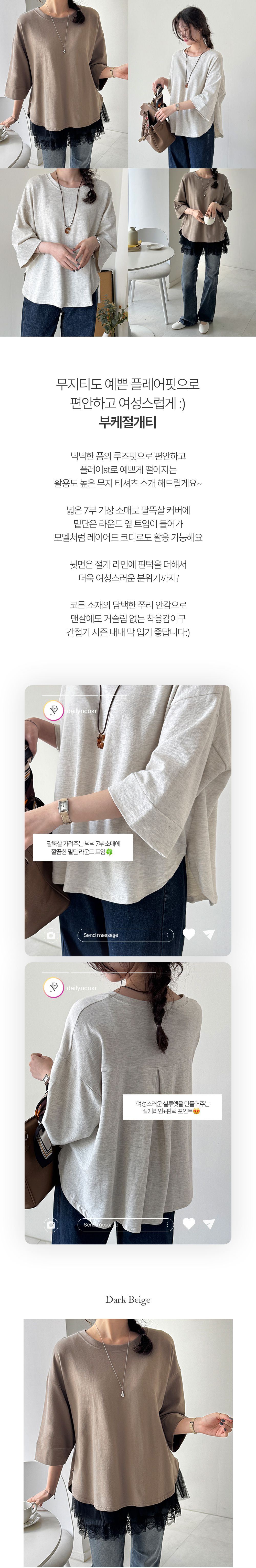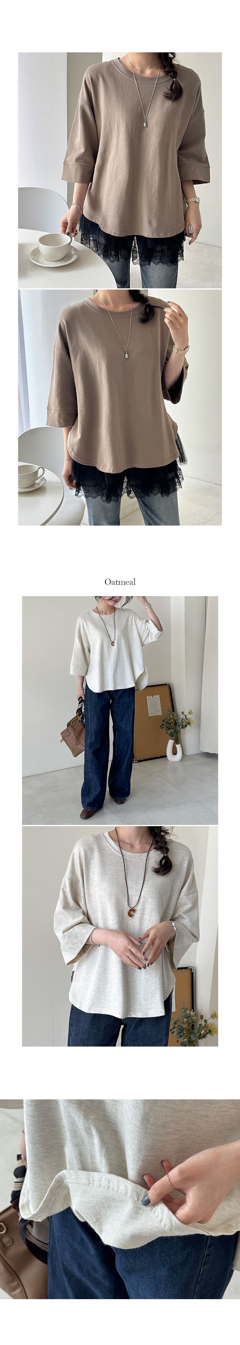 後背打褶/前短後長/圓弧後襬/圓領/落肩七分袖/寬袖/寬鬆傘狀 - 休閒居家簡約百搭素面傘狀七分袖上衣七分袖T恤寬袖T恤寬鬆大尺碼上衣燕麥色深米色灰色黑色