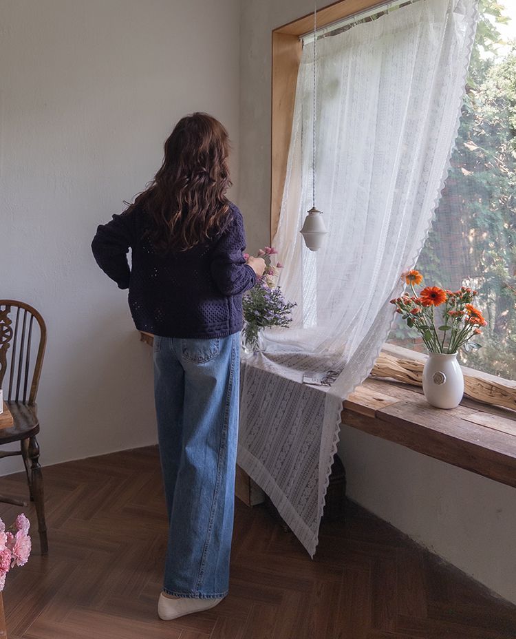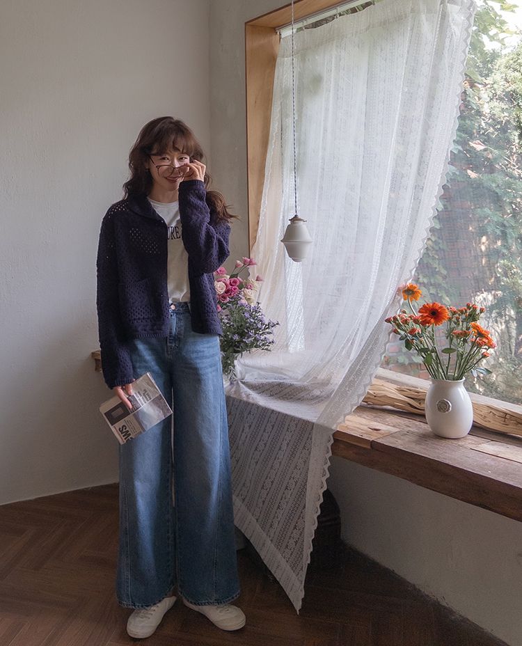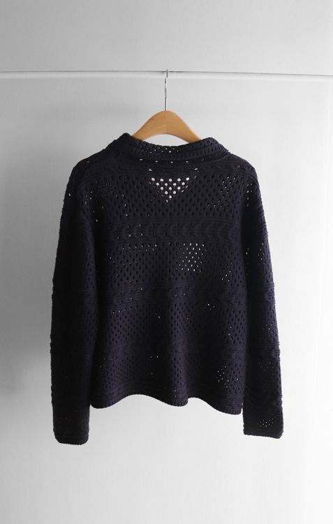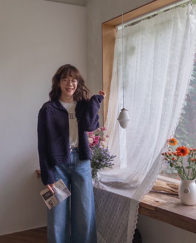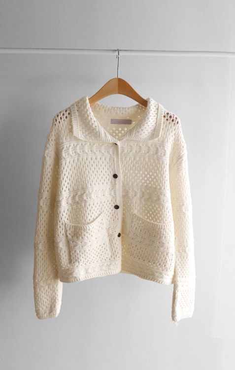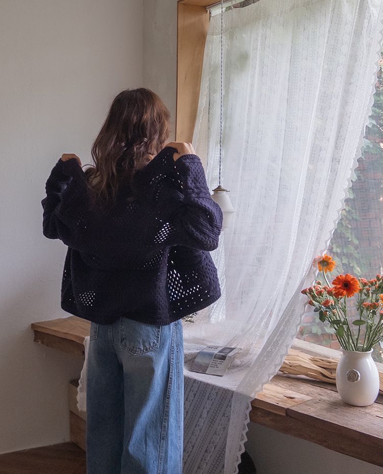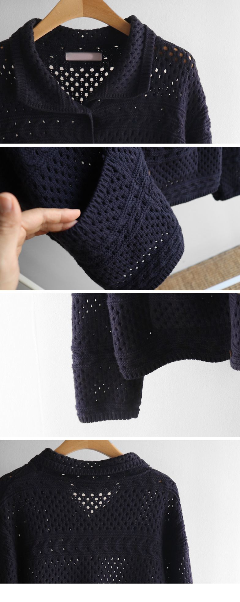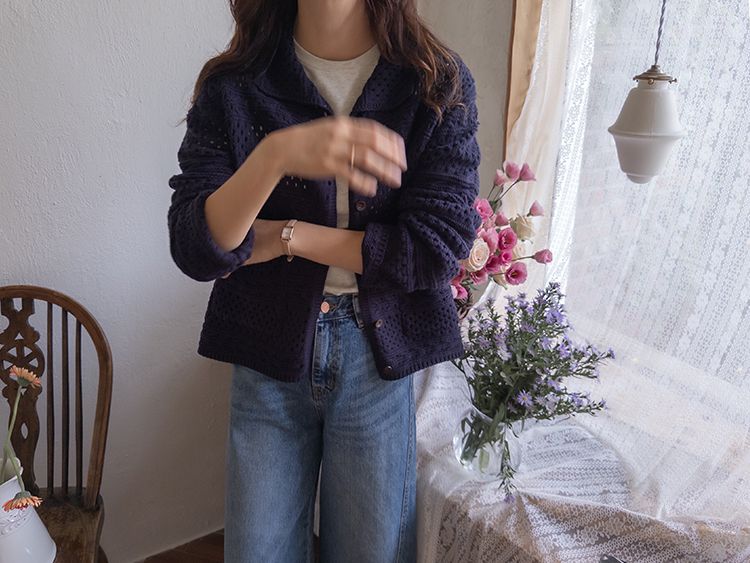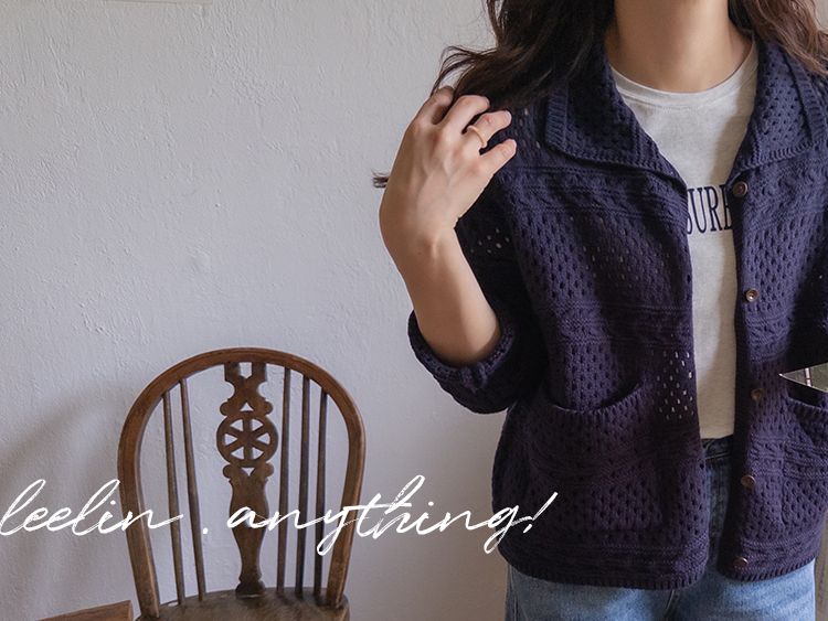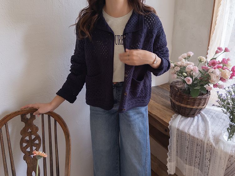 【C55315】韓國LEE 洞洞針織外套-粗鉤針編織翻領素面長袖縷空★★