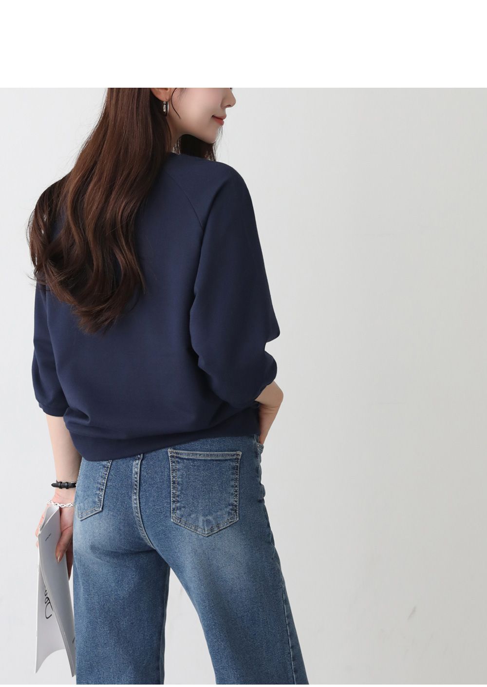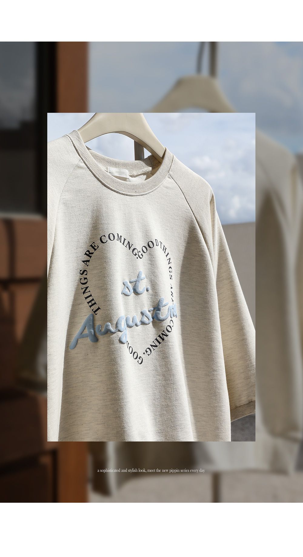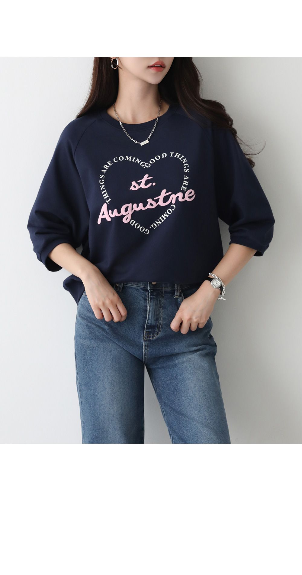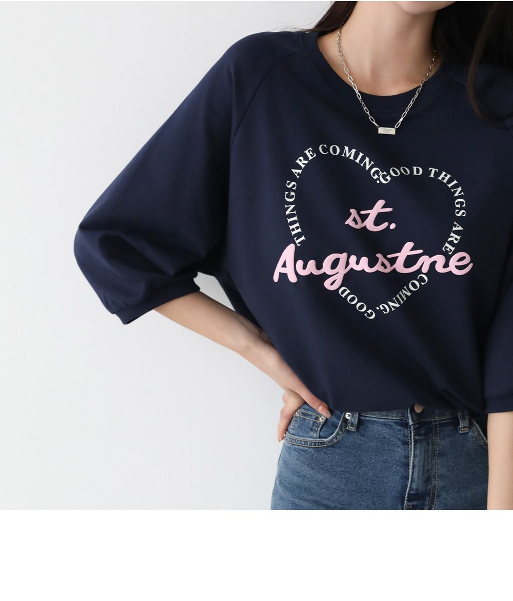 膠印字母/立體泡棉字母/圓領/連肩袖/寬袖 - 休閒居家英文字母上衣字母T恤愛心印花愛心字母T恤七分袖上衣印花上衣深藍色燕麥色綠色