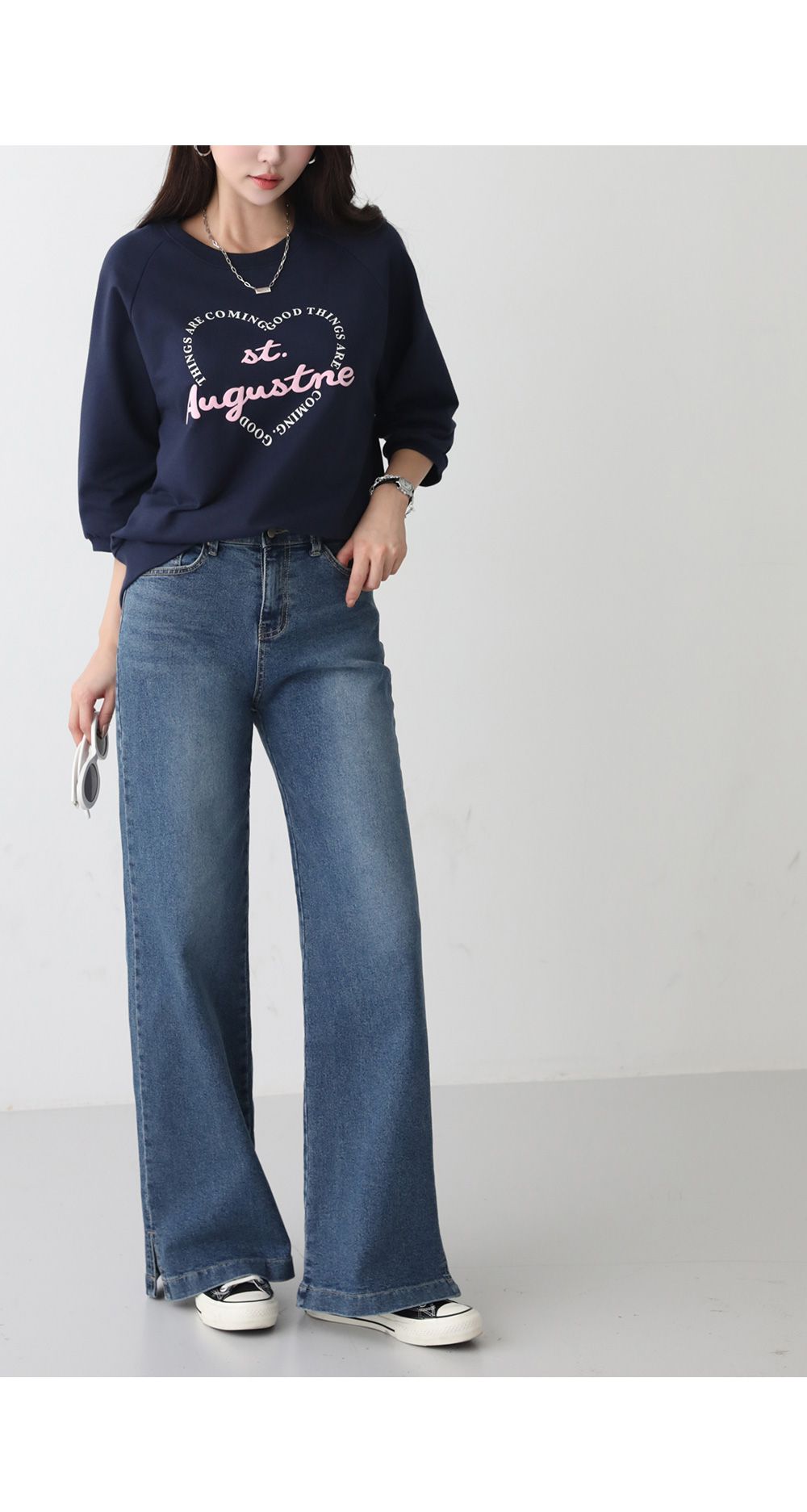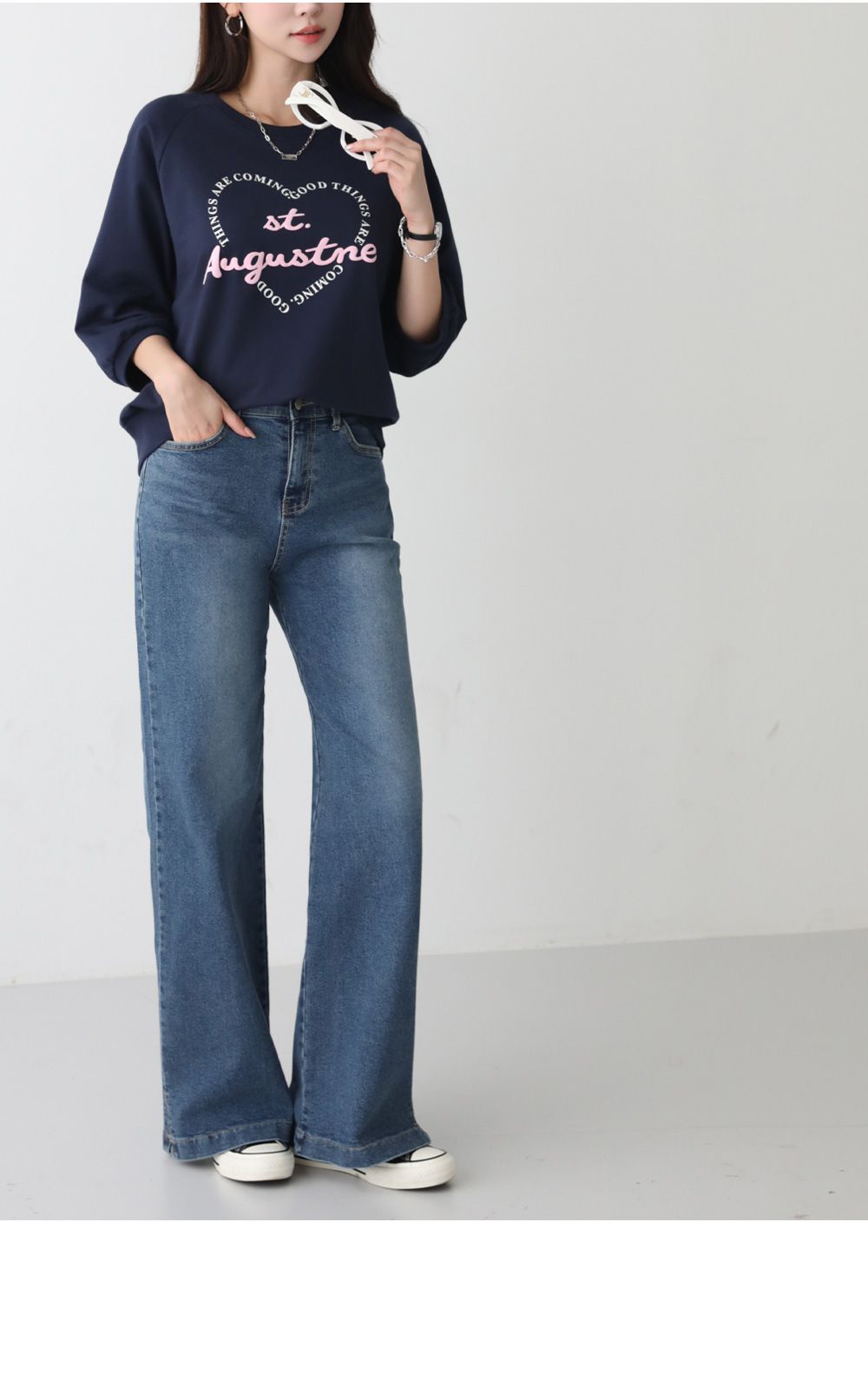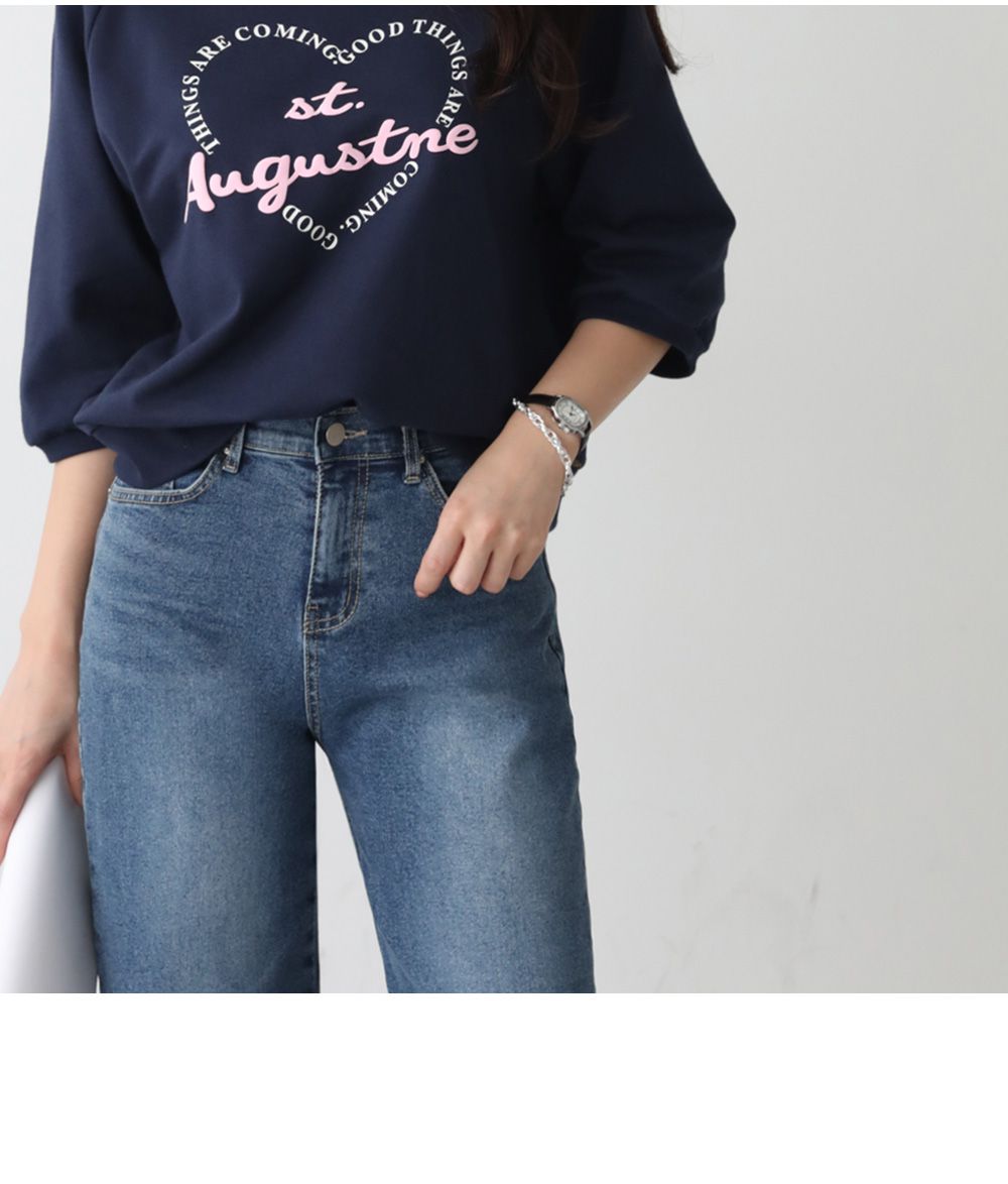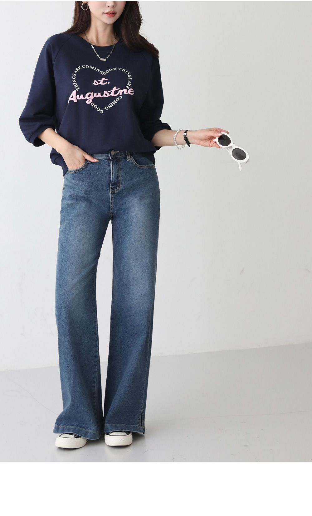 膠印字母/立體泡棉字母/圓領/連肩袖/寬袖 - 休閒居家英文字母上衣字母T恤愛心印花愛心字母T恤七分袖上衣印花上衣深藍色燕麥色綠色