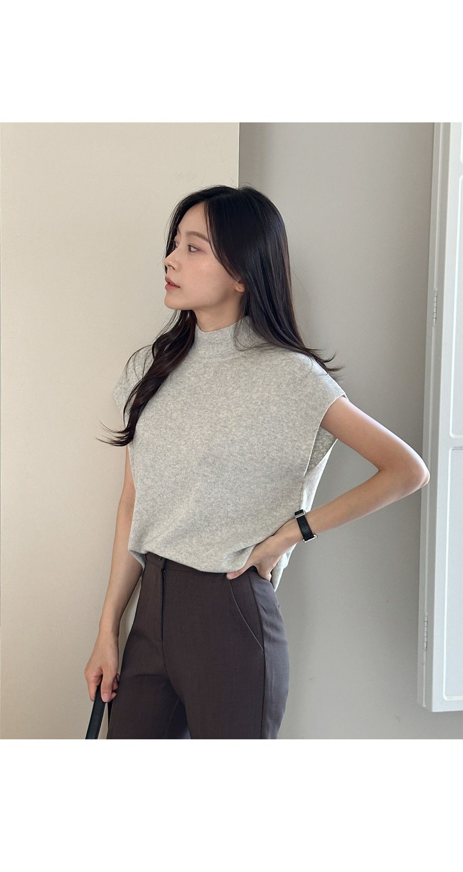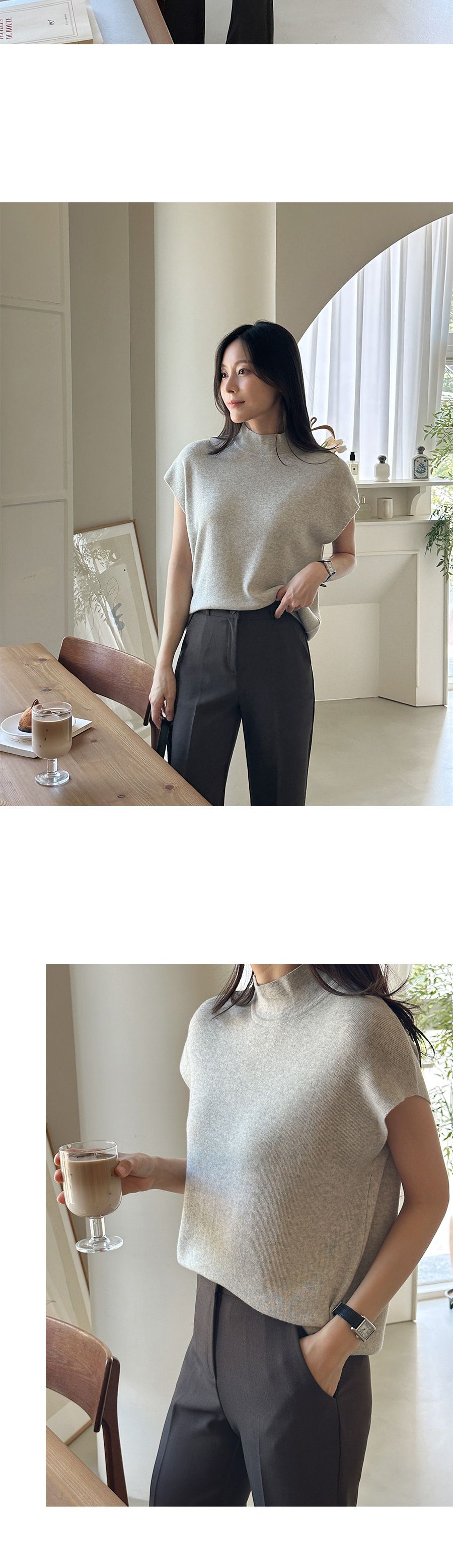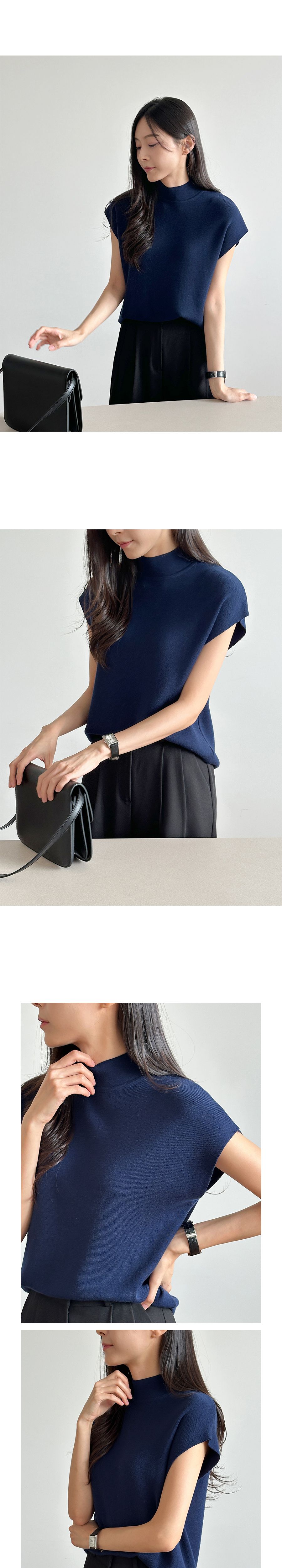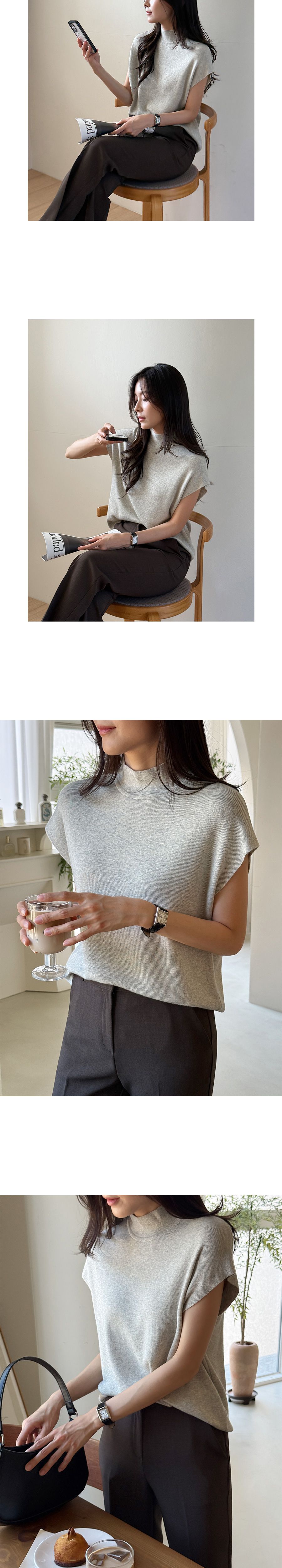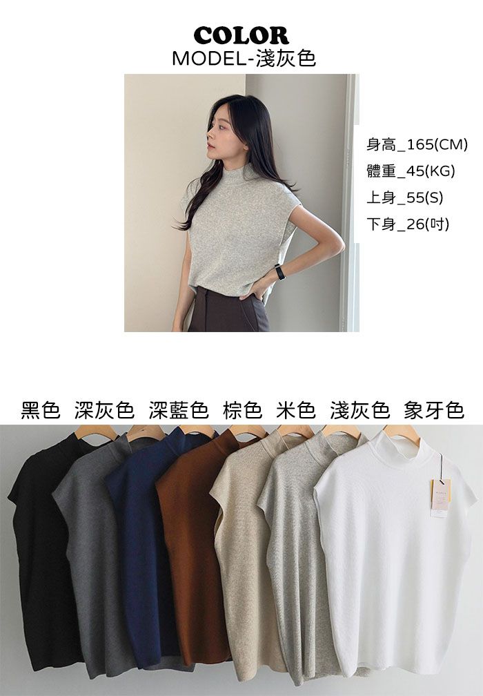 包肩短袖/連肩袖/混羊毛針織/高領針織衫 - 休閒居家OL上班族簡約百搭素面立領針織衫針織上衣小包肩短袖上衣淺灰色象牙色米色棕色深藍色深灰色黑色