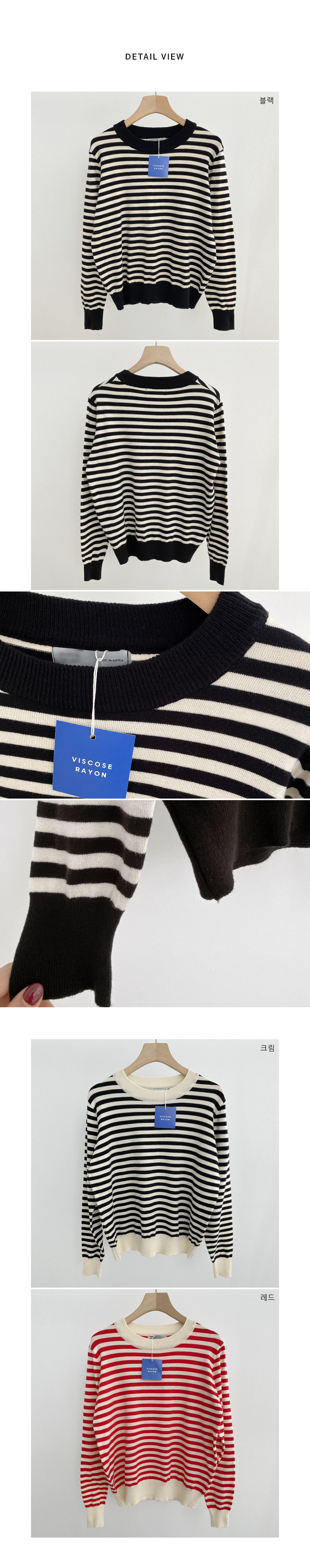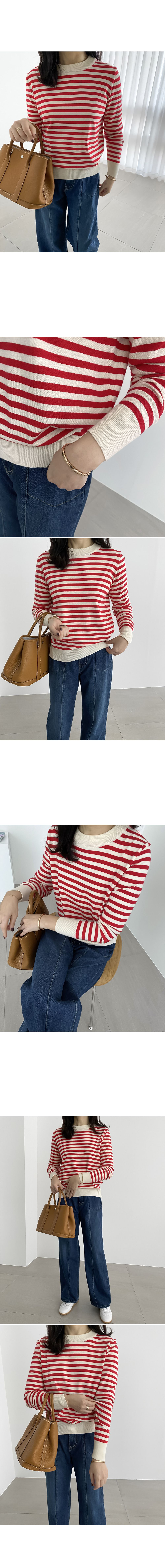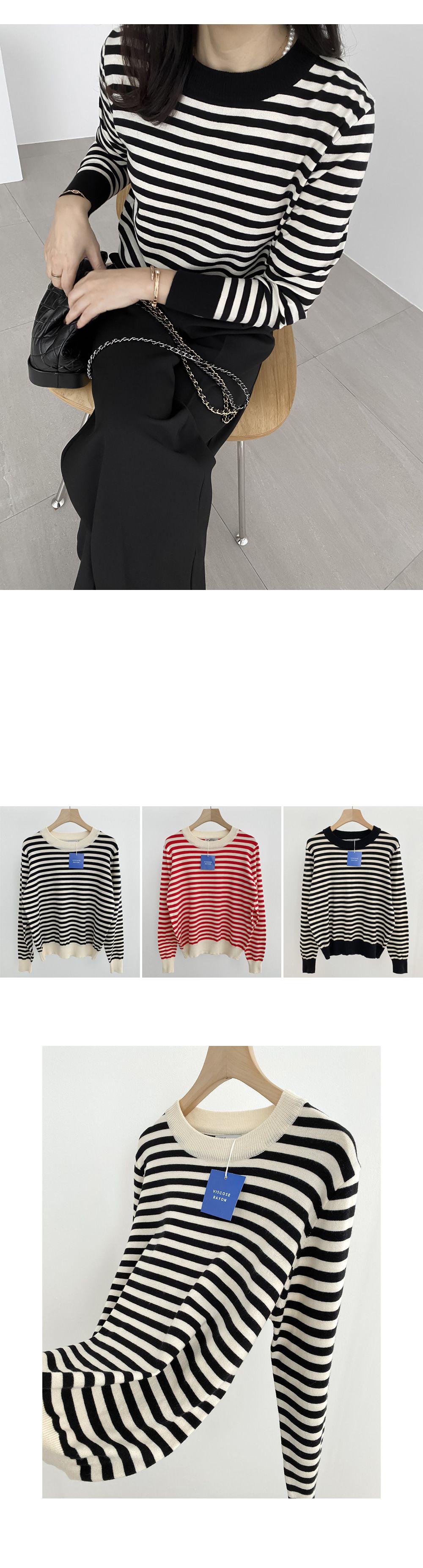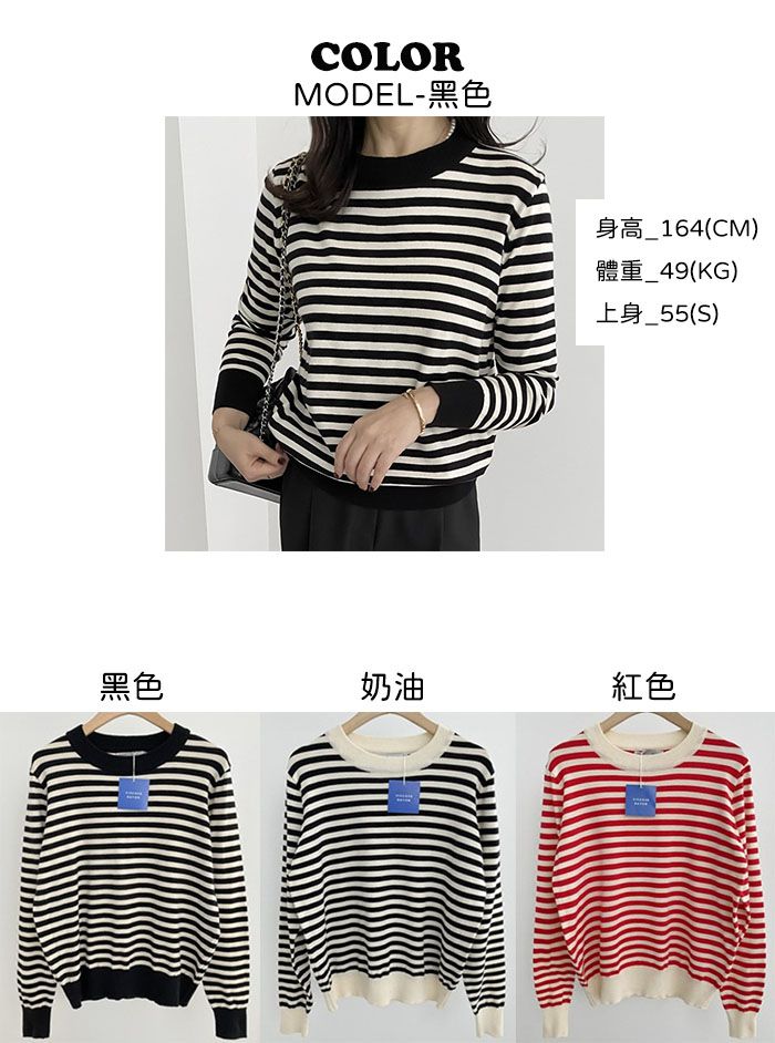 【C55461】韓國RUN 加寬圓領針織衫-經典橫條紋混羊毛好氣色長袖上衣★★