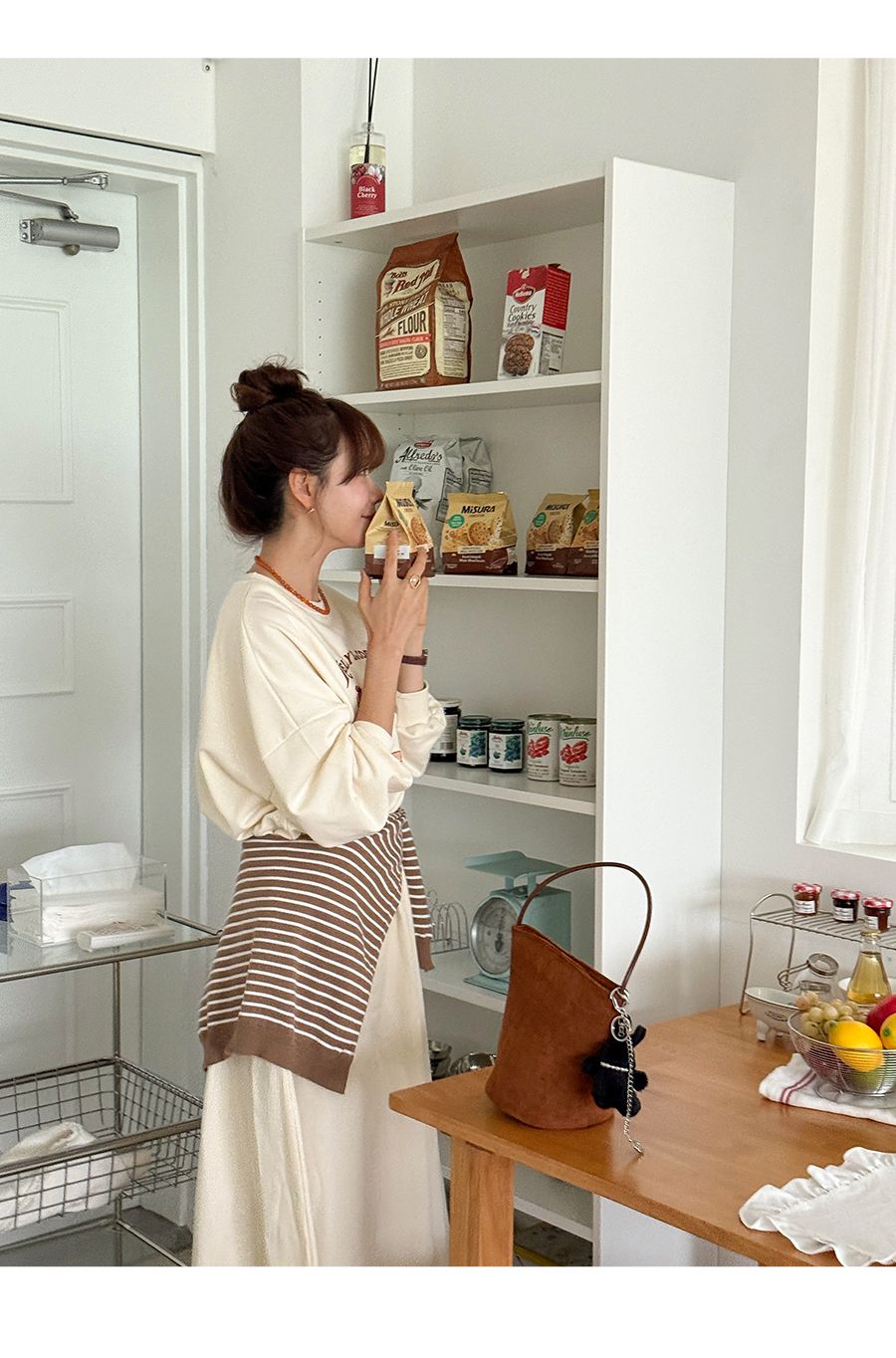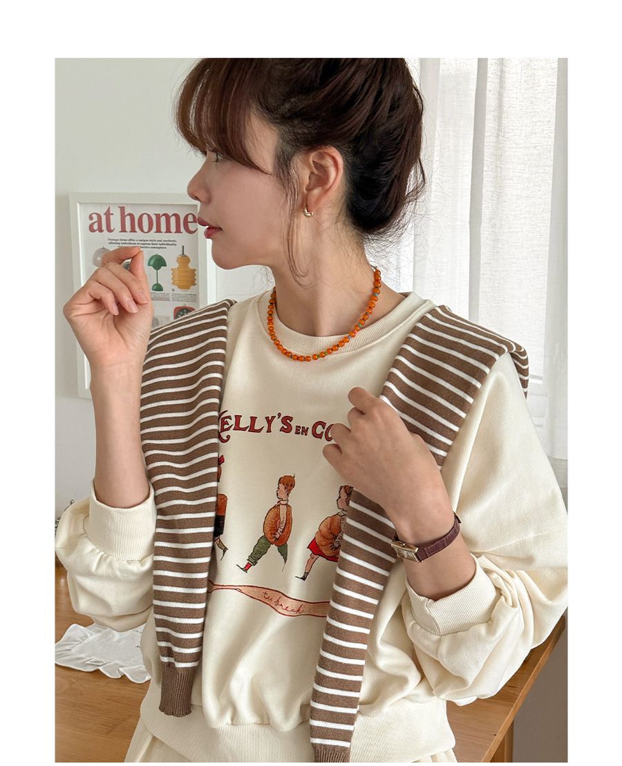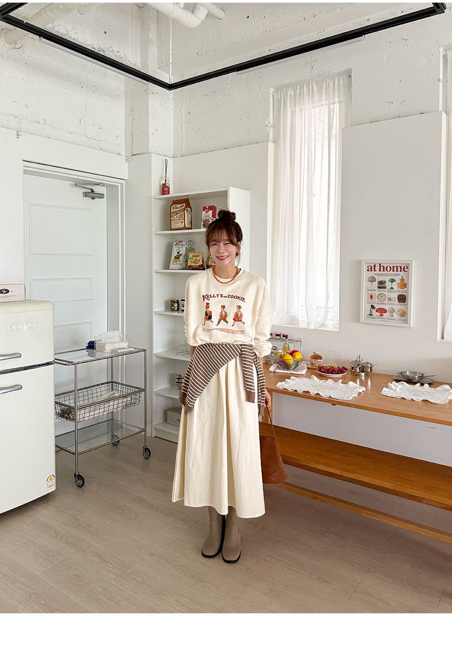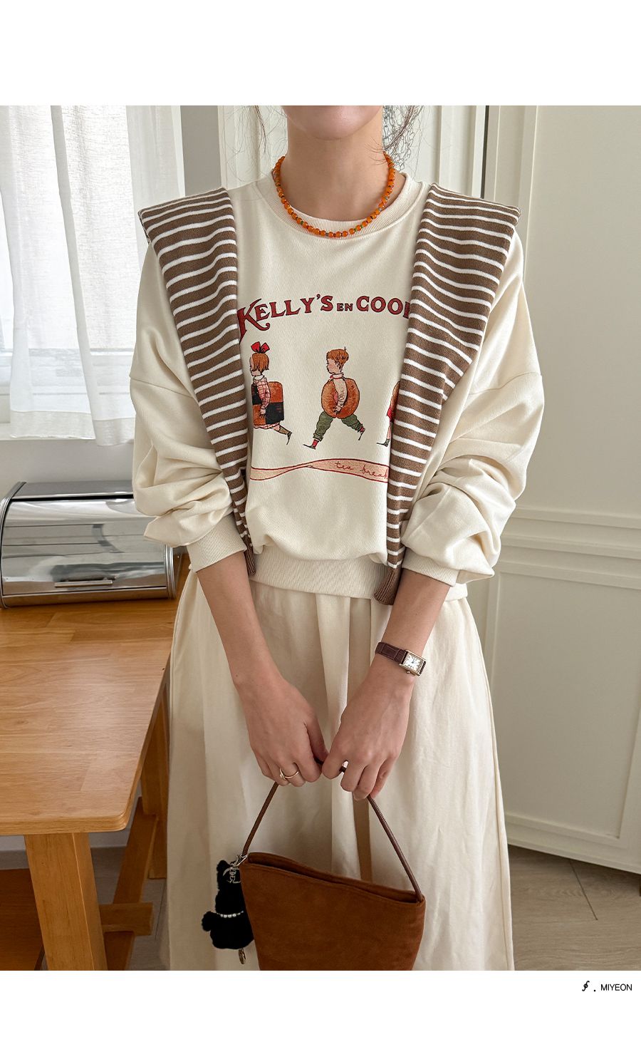 純棉面料好透氣/復古童趣印花超吸睛/百元單品高CP值-餅乾小夥伴圓領寬鬆短版童趣印花長袖大學T上衣奶油色灰色
