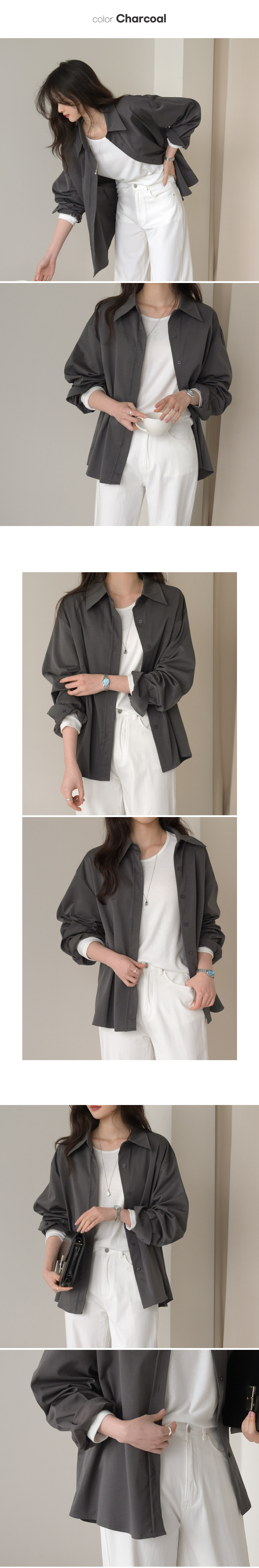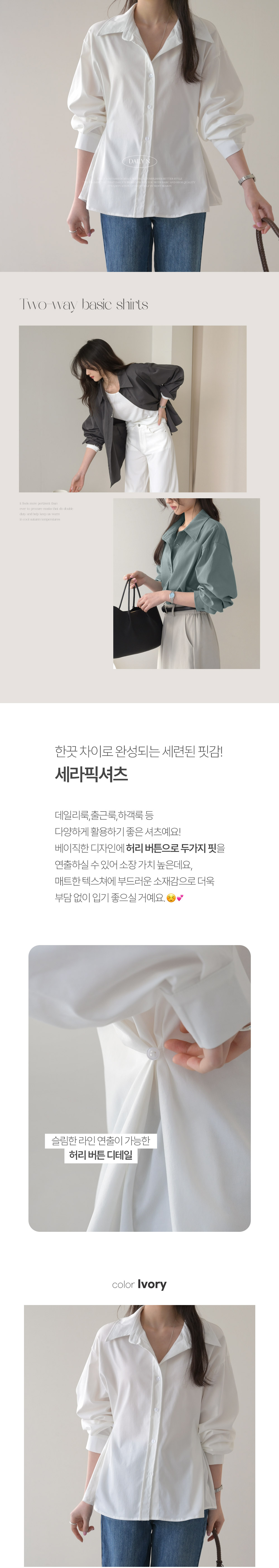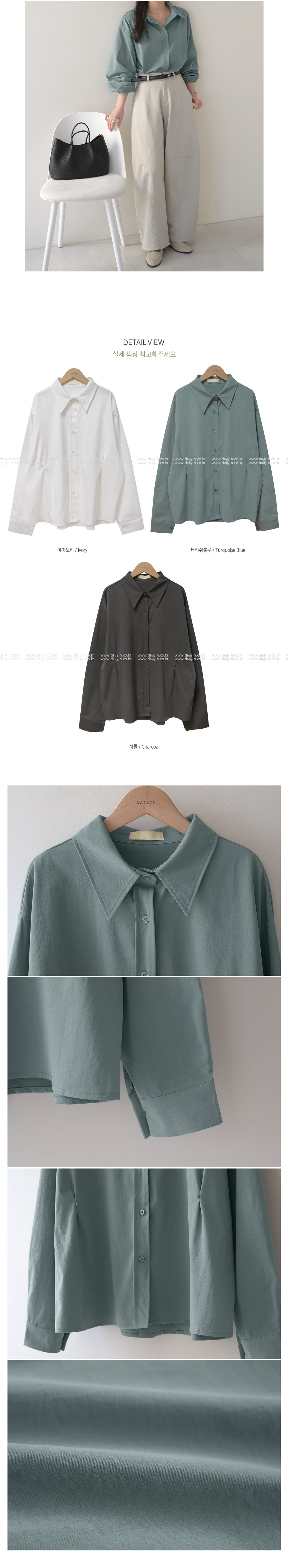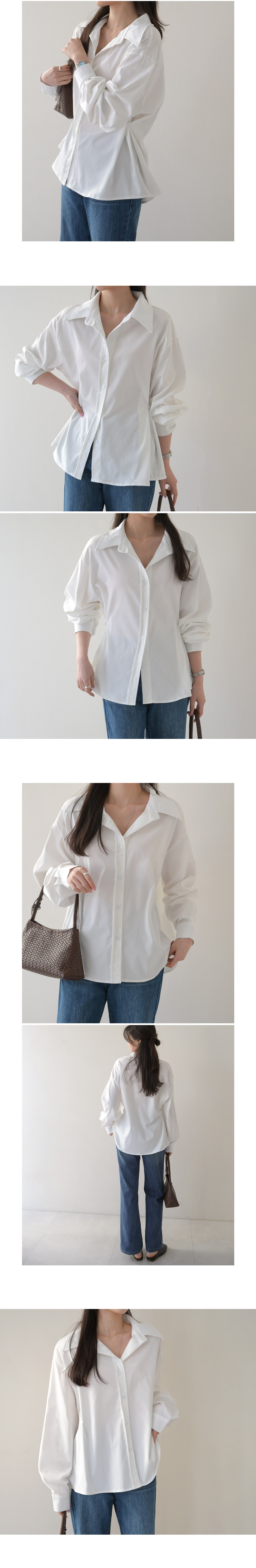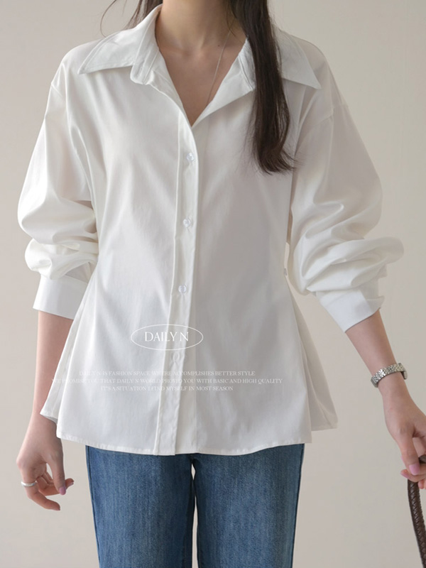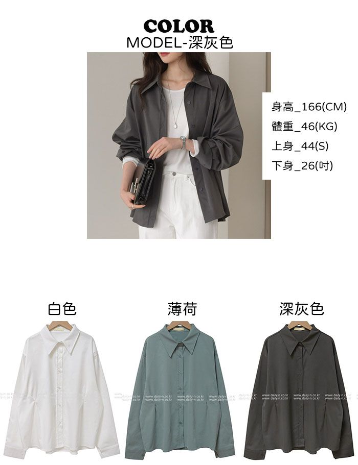 【C56003】韓國DLY 鈕釦收腰襯衫-素面寬鬆傘狀雙側抓褶長袖上衣外搭★★